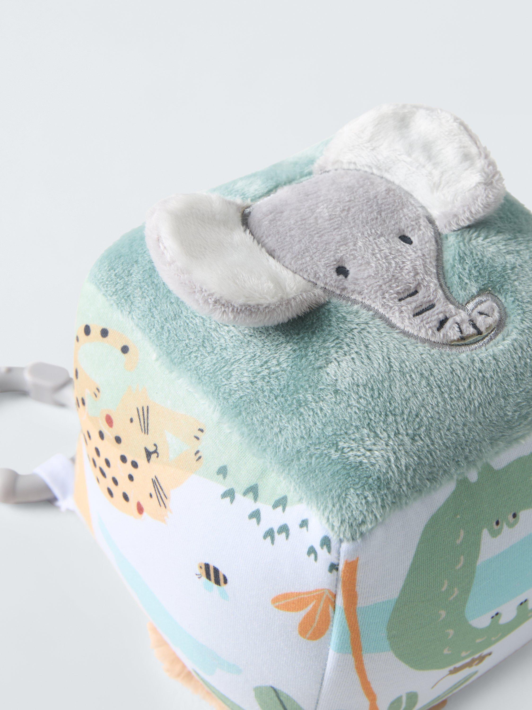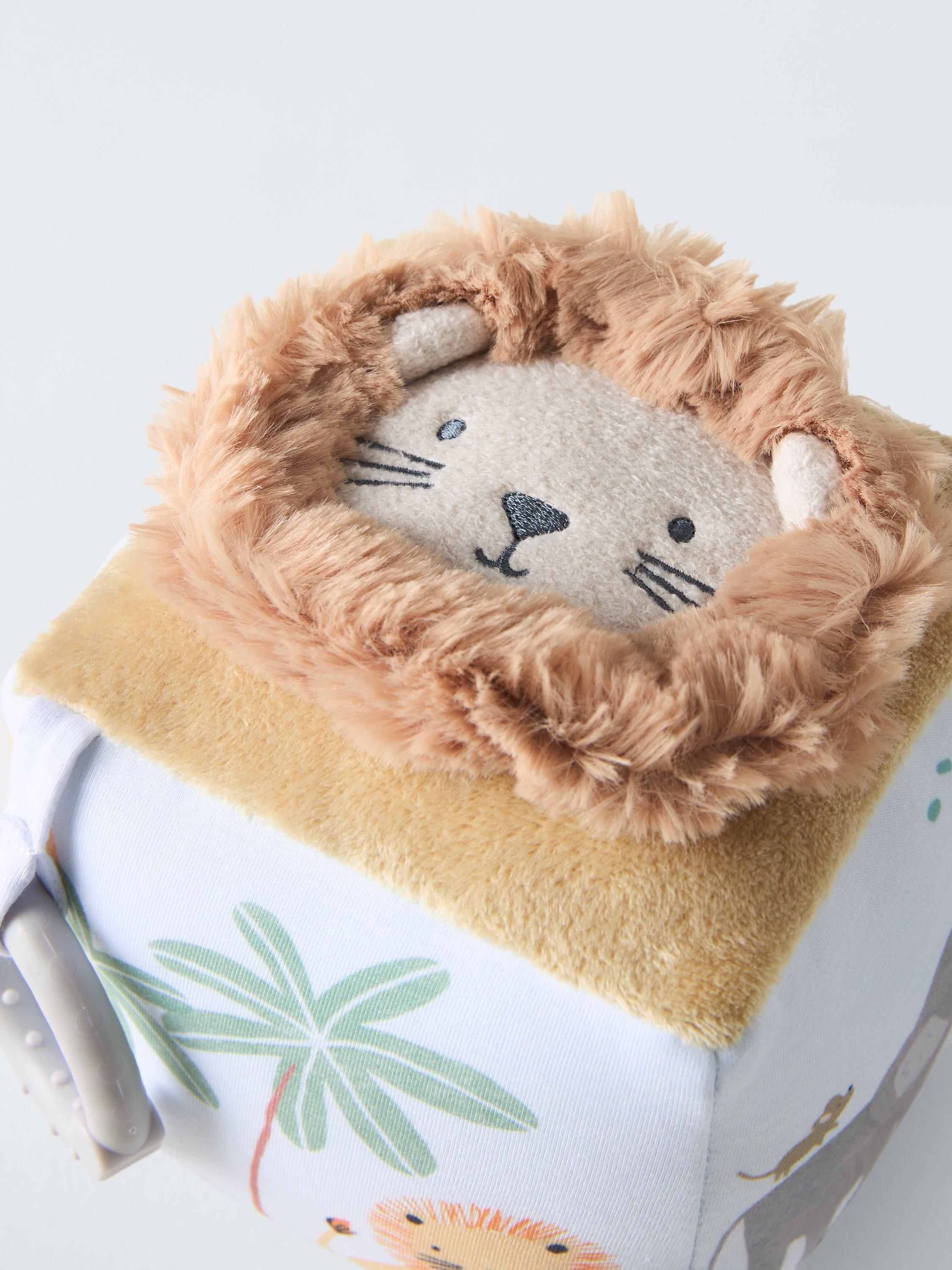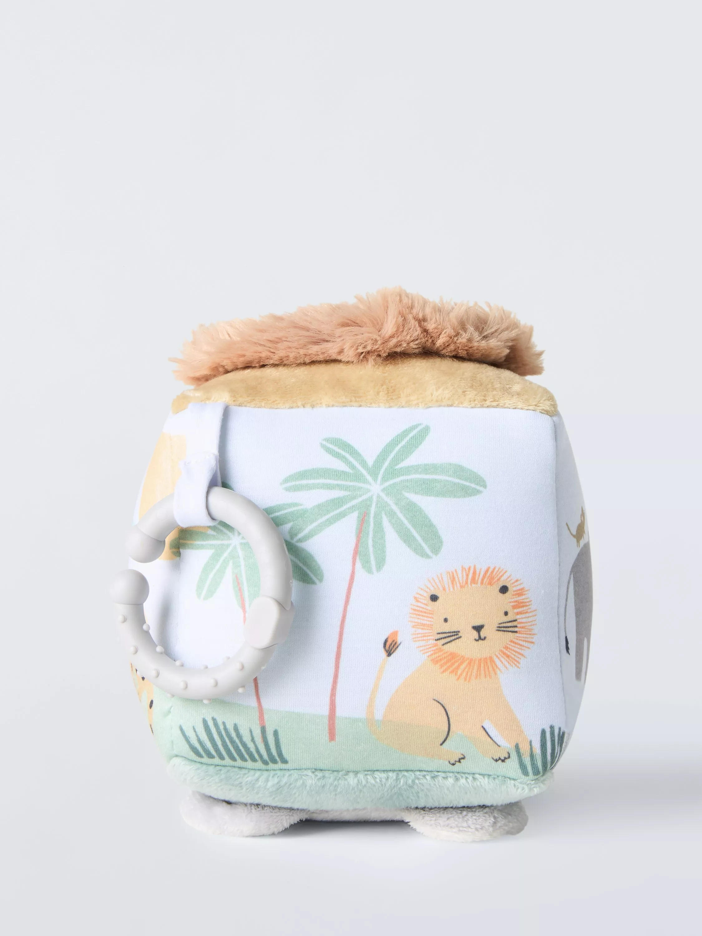 Packed full of fun, the cube comes with a lion head with the sweetest lion mane, an elephant head with crinkle ears, a teether ring for easy hanging, and a rattle inside the cube to give little ones a sensory play experience.