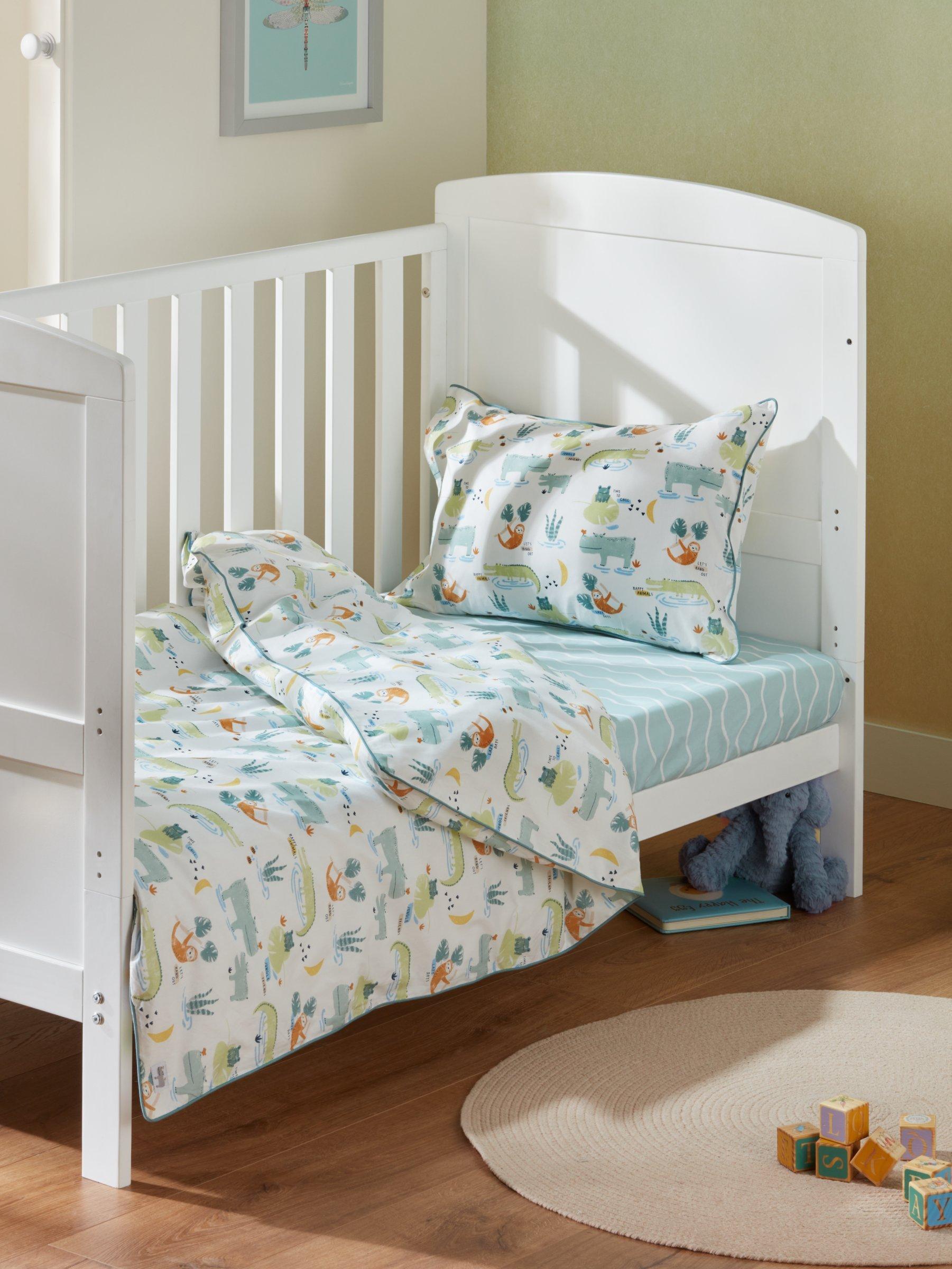 John LewisJungle Friends Print Toddler Pure Cotton Duvet Cover and Pillowcase Set, Cotbed (120 x 140cm)