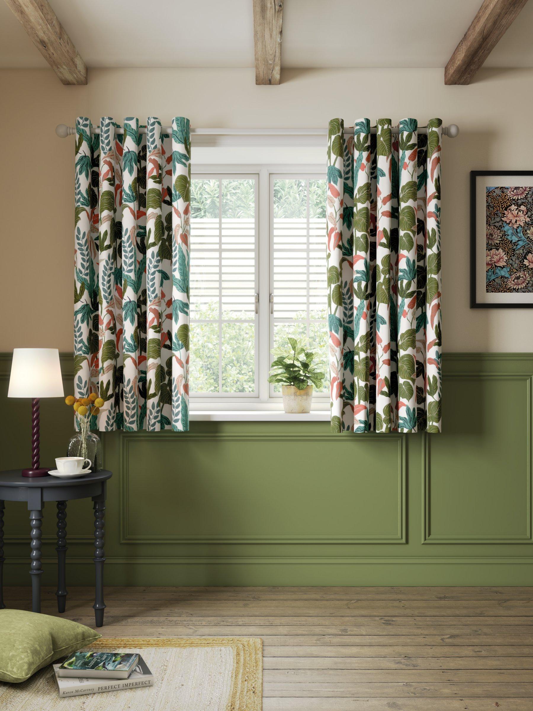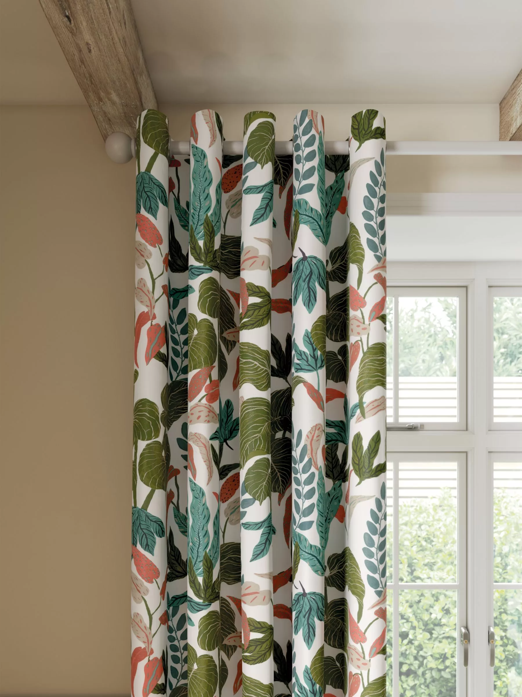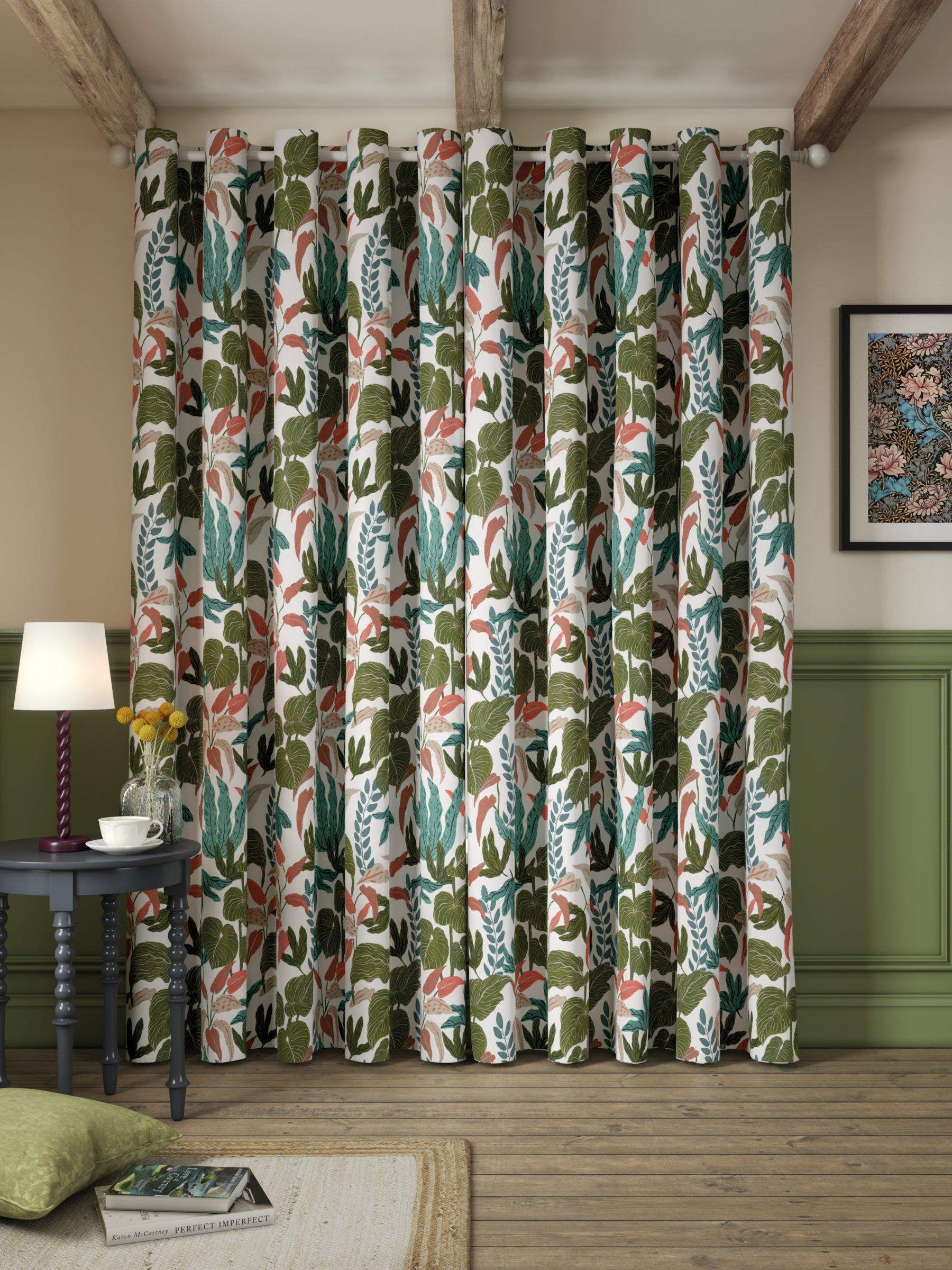 Our Ida curtains have a lush leaf print. The eyelet heading gives them a contemporary look with large, even folds whilst the lining adds the perfect finish, improving the drape and enhancing the vibrancy of the pattern.