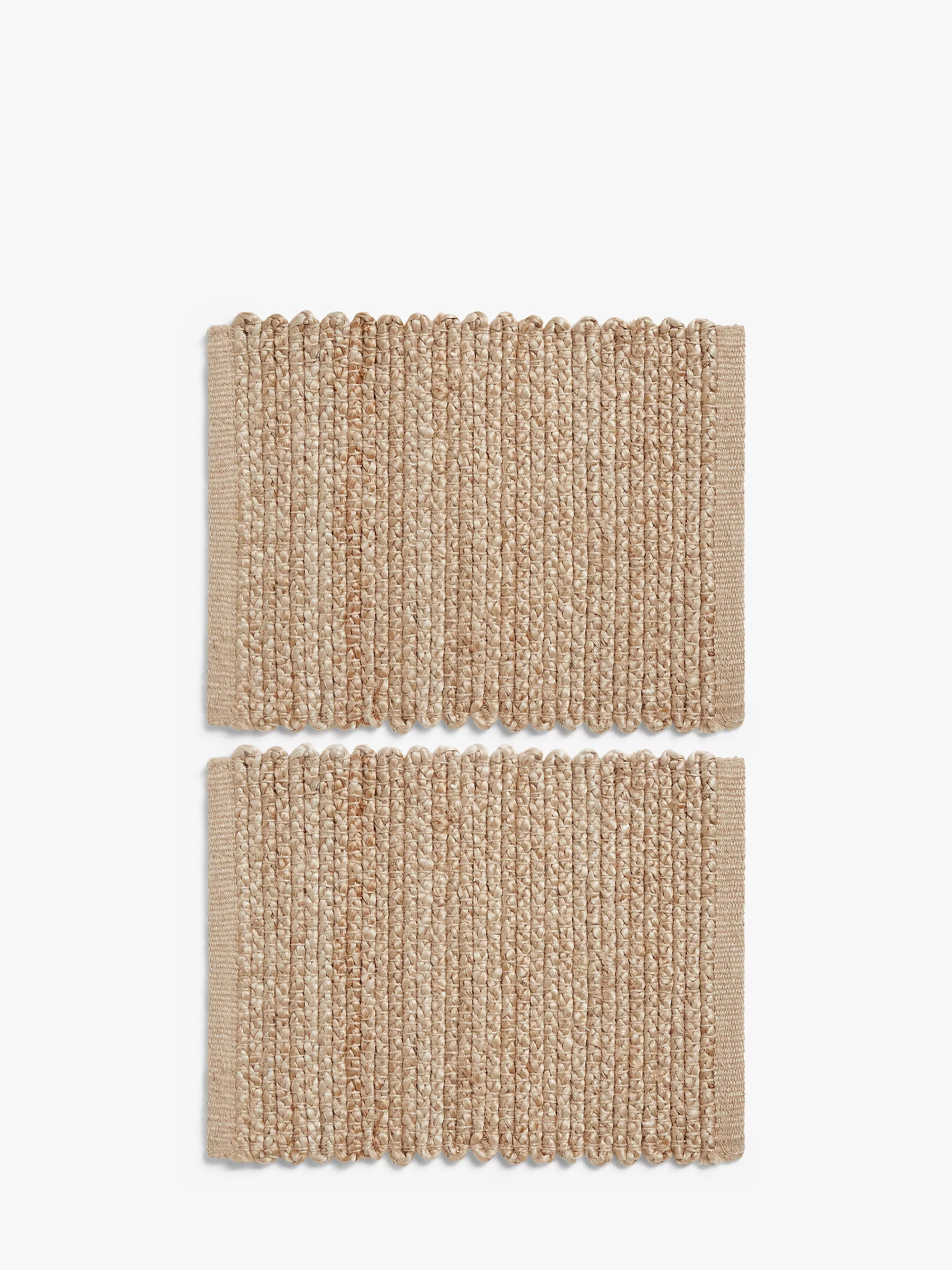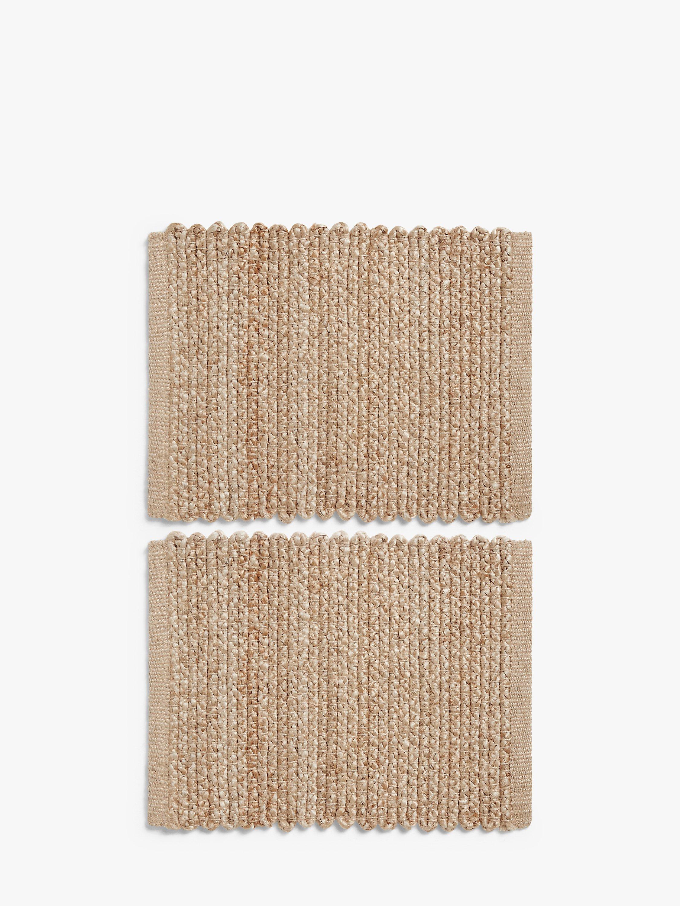 Made of woven jute, this pair of textured placemats protect your table surface and bring a rustic, natural feel to table settings. Team them with the matching Jute table runner to complete the look.