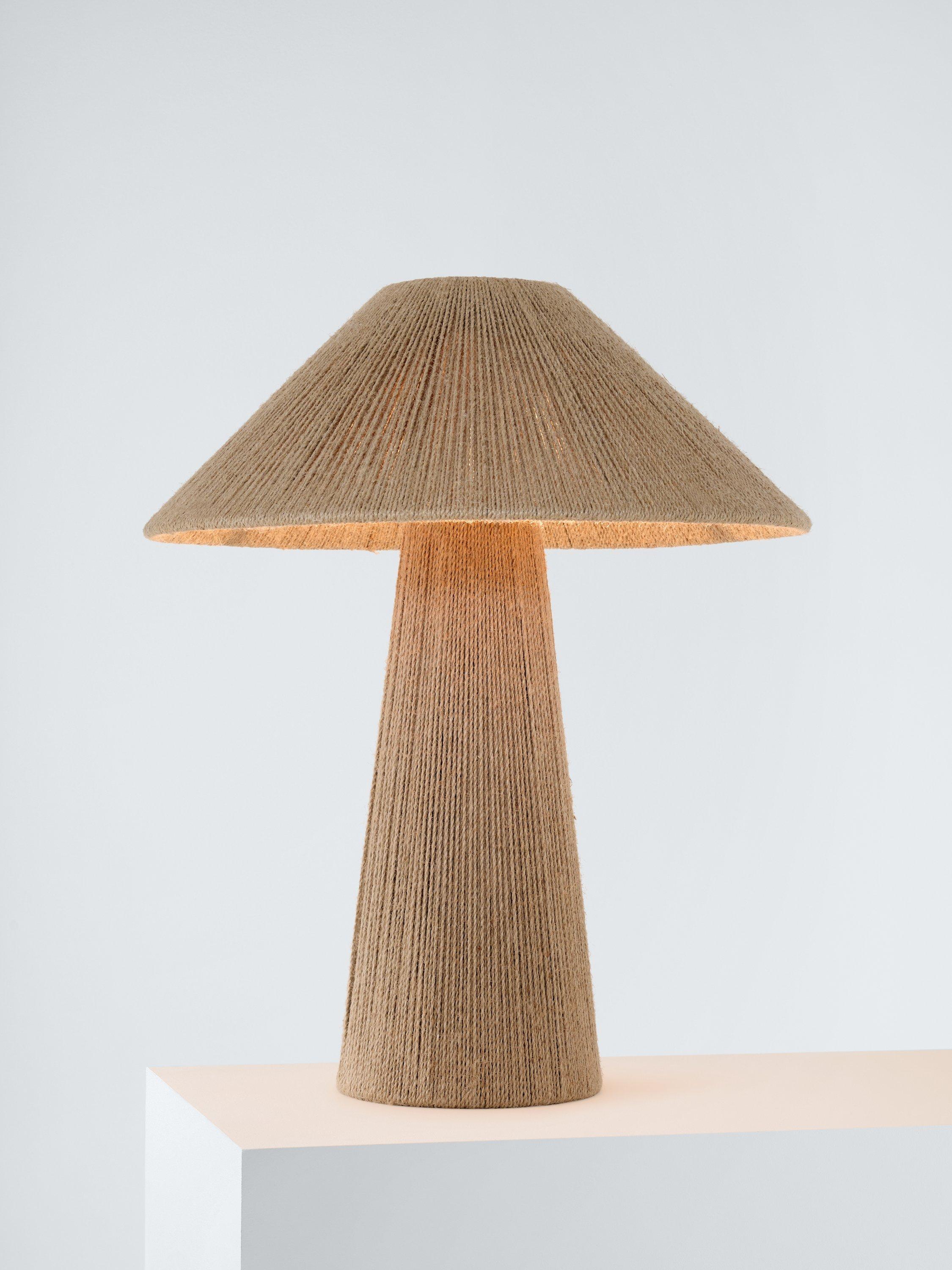 Add a touch of rustic charm to your home with this handcrafted jute rope table lamp. Made from durable, natural jute, this lamp features an intricately woven rope design that brings texture and warmth to any room.