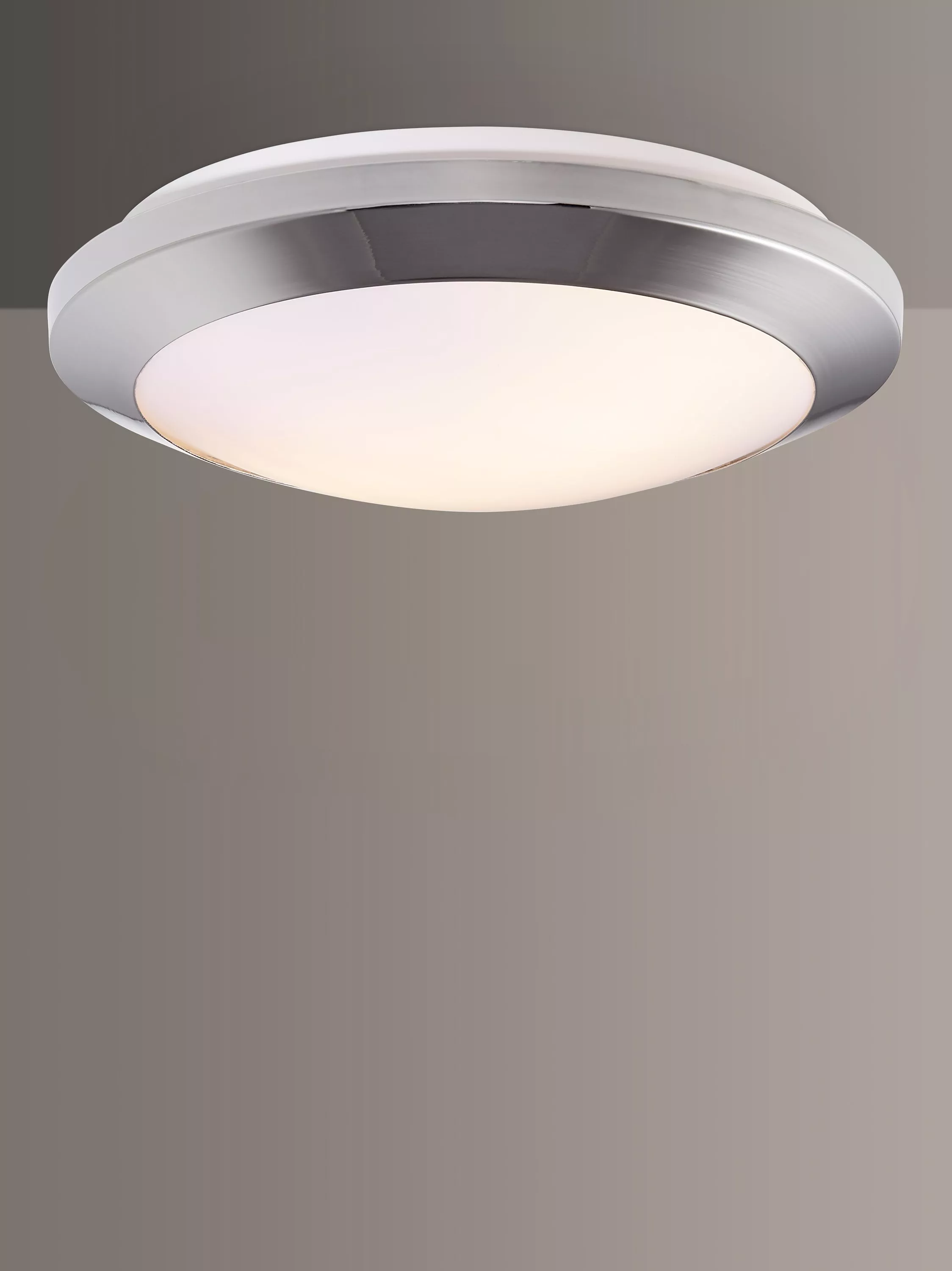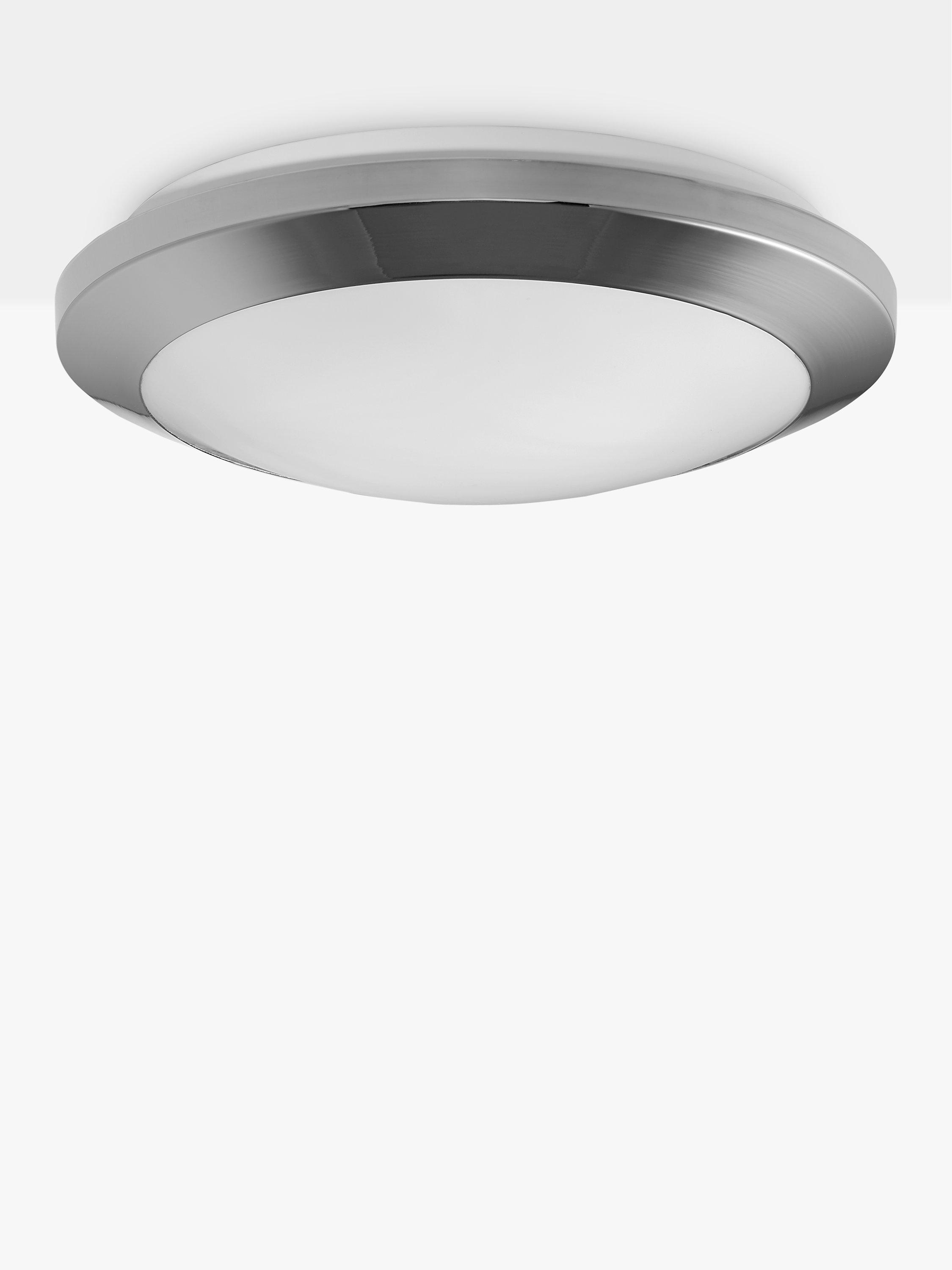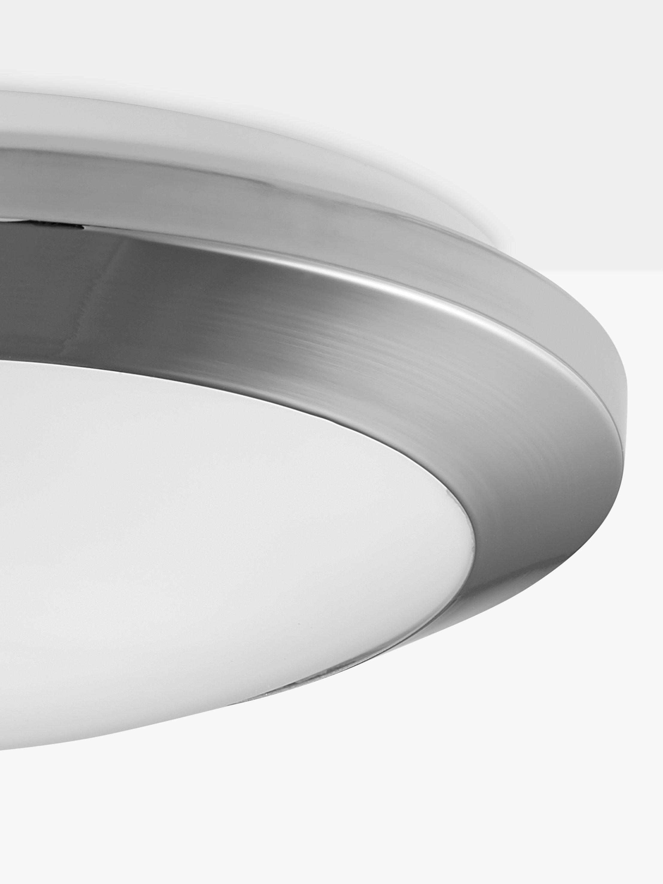 A functional ceiling light for your bathroom, made from sturdy steel with a polypropylene shade that diffuses the glow of the light. Well-suited in bathrooms with limited space or a lower ceiling, two LED bulbs are required and it's available in a matt or chrome-effect finish.