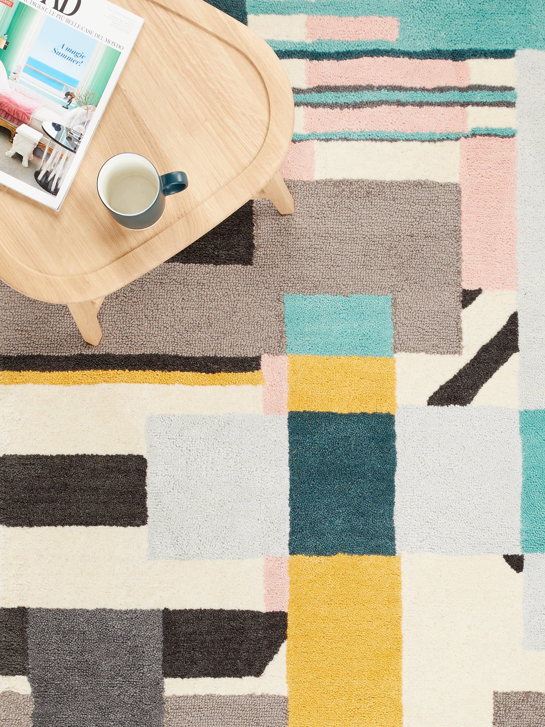 Hand-tufted, our 100% wool Kastrup Rug is offered in a unique, check design and features contrasting colours and shapes making it the perfect way to add interest to a neutrally toned room.