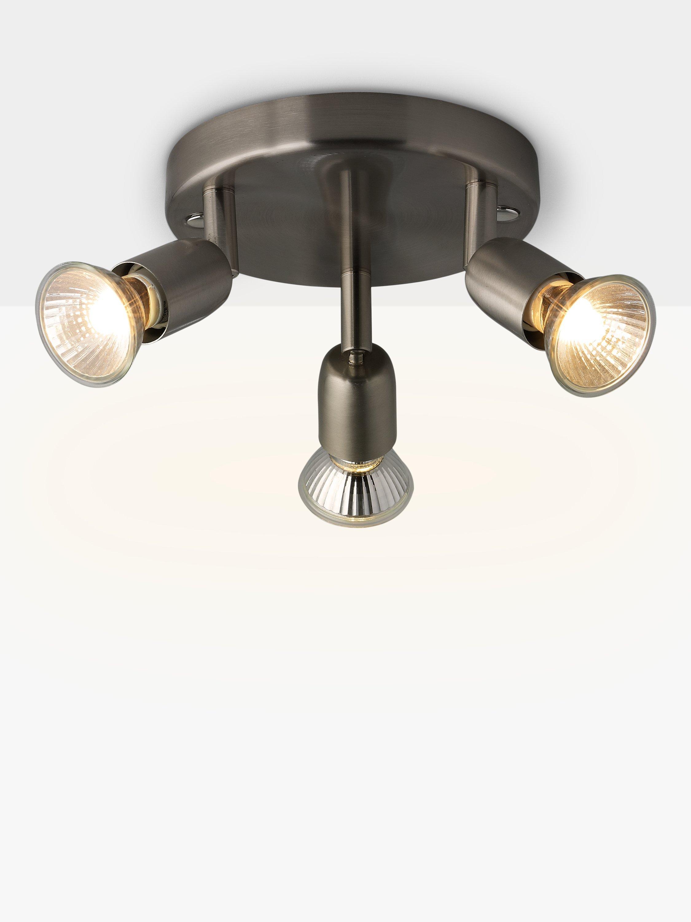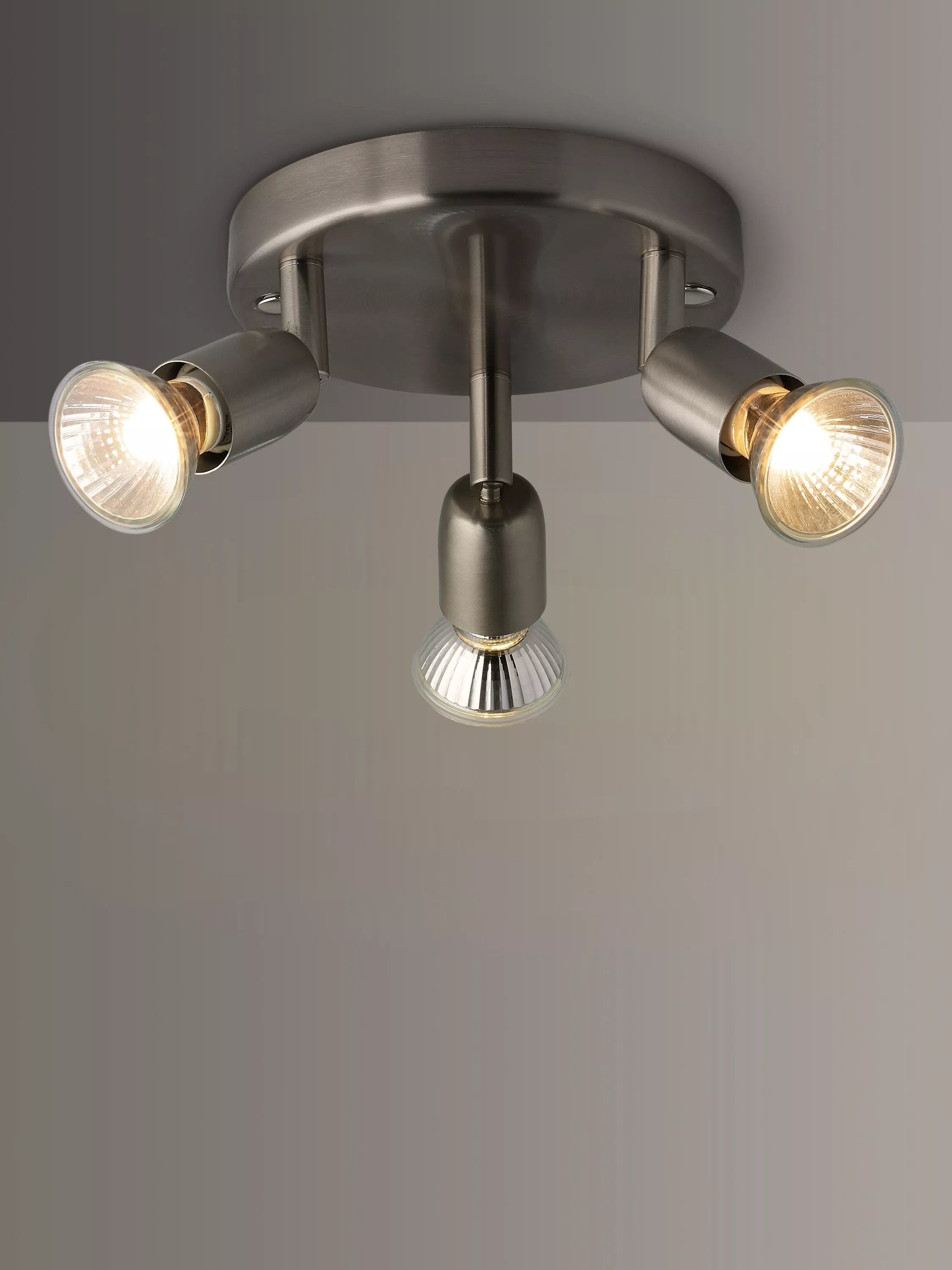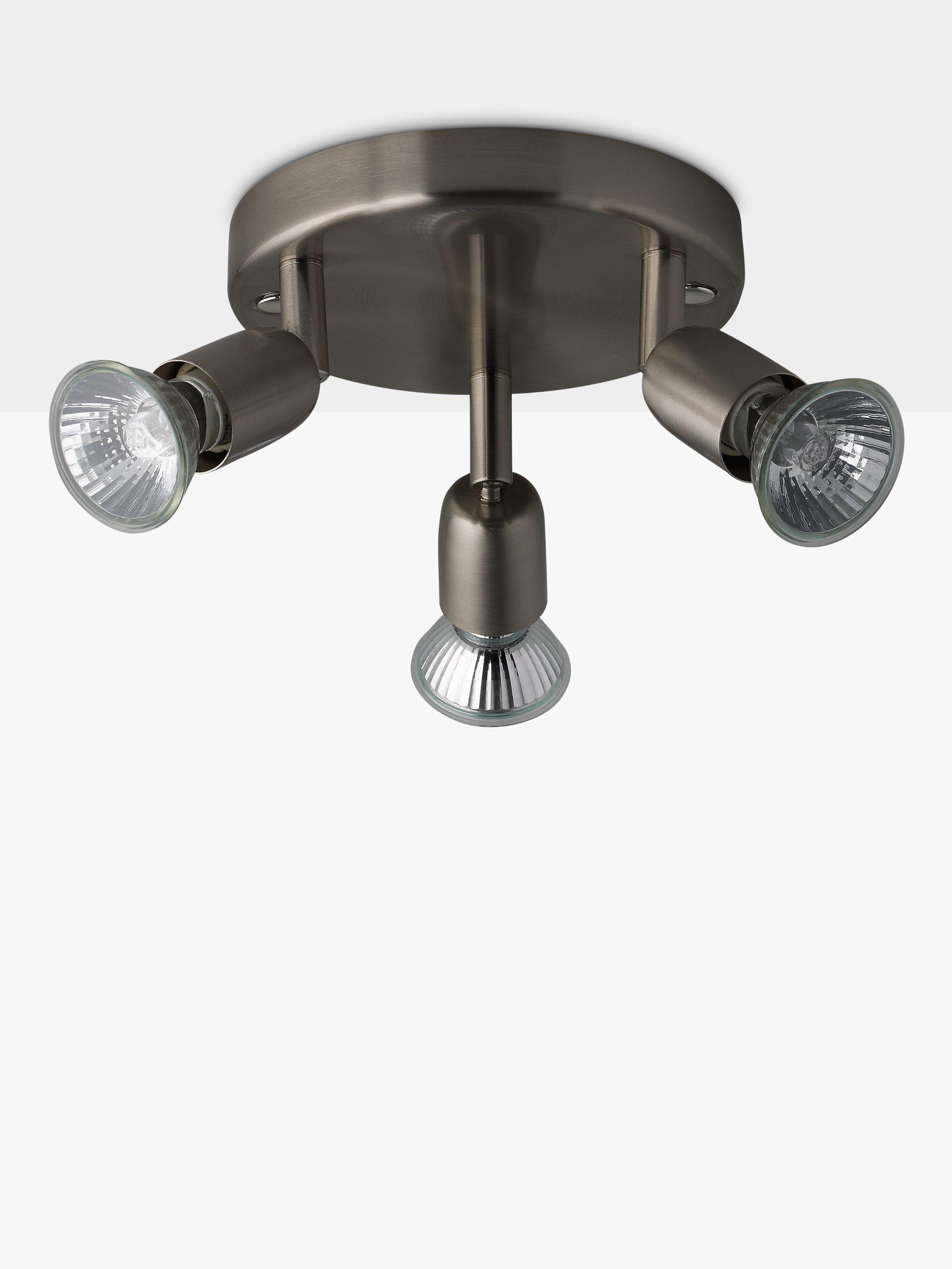 Thanks to three spotlights, this great-value ceiling light provides a bright spread of light around your room. It's ideal if space is limited or for a quick refresh at home. We've made it from sturdy steel in a smart, brushed finish.