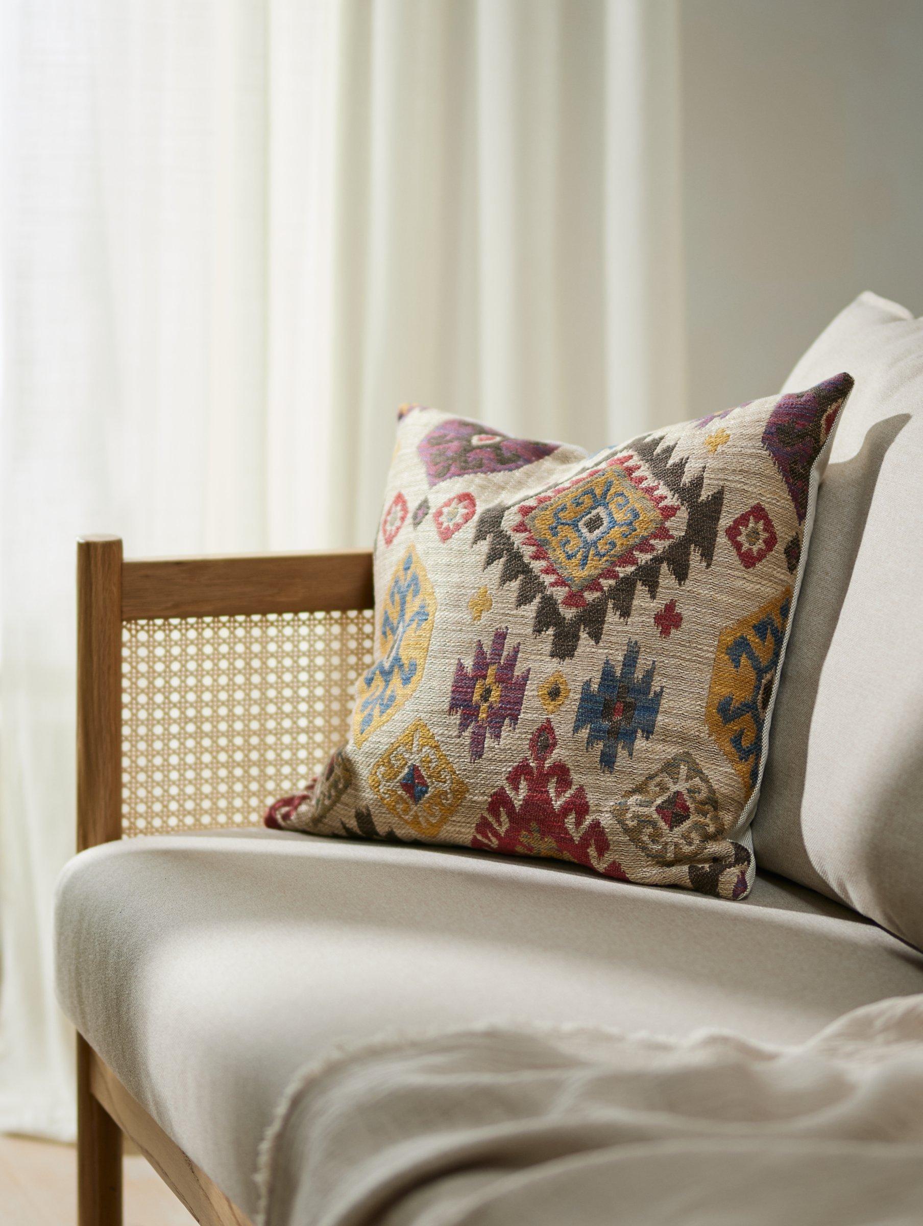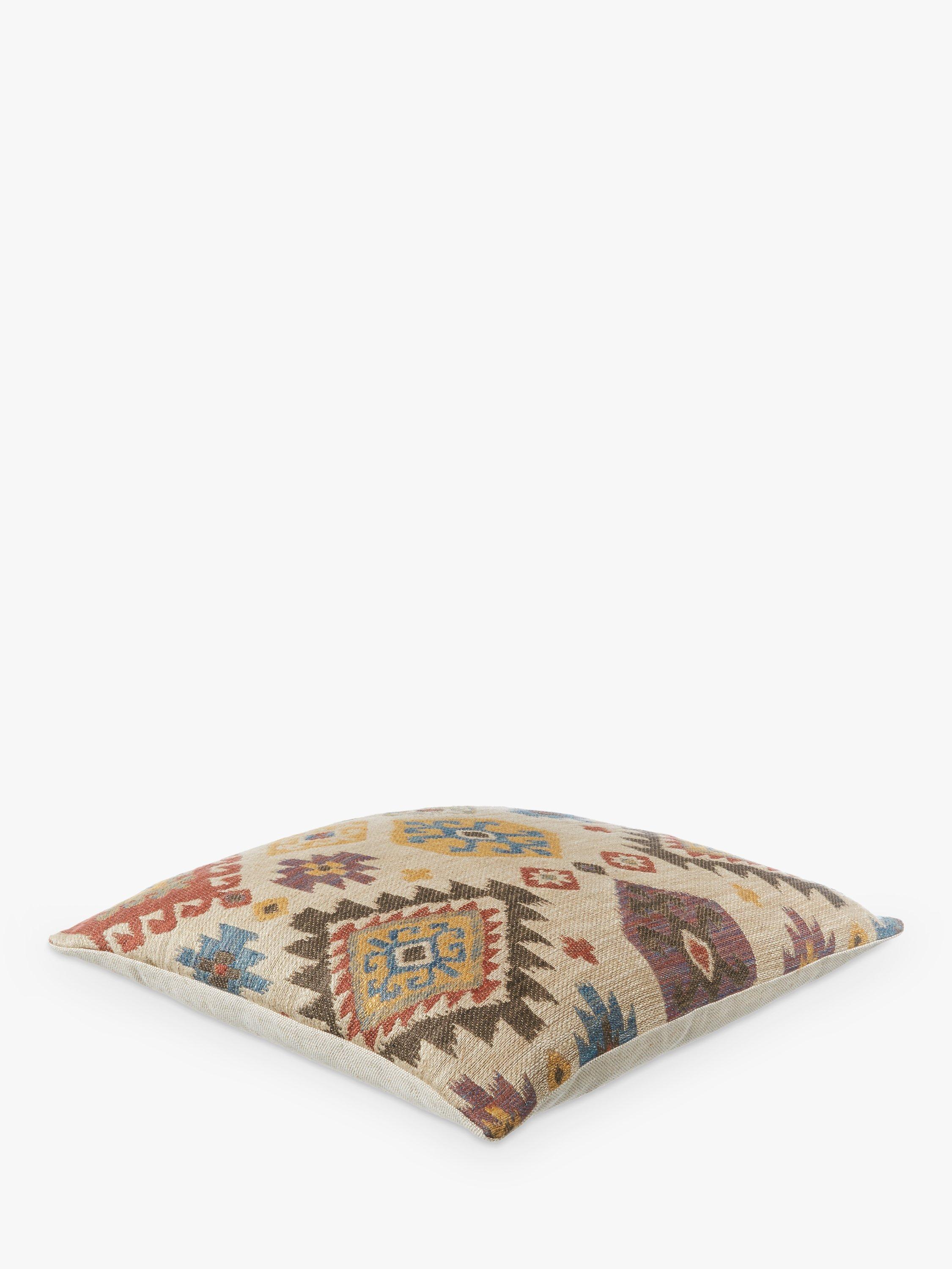 Kelims are flat woven rugs, traditionally made over a large geographical area from the Balkans to Pakistan. Inspired by the patterns on these beautiful rugs, this woven cotton cushion will add exotic charm and colour to your home.