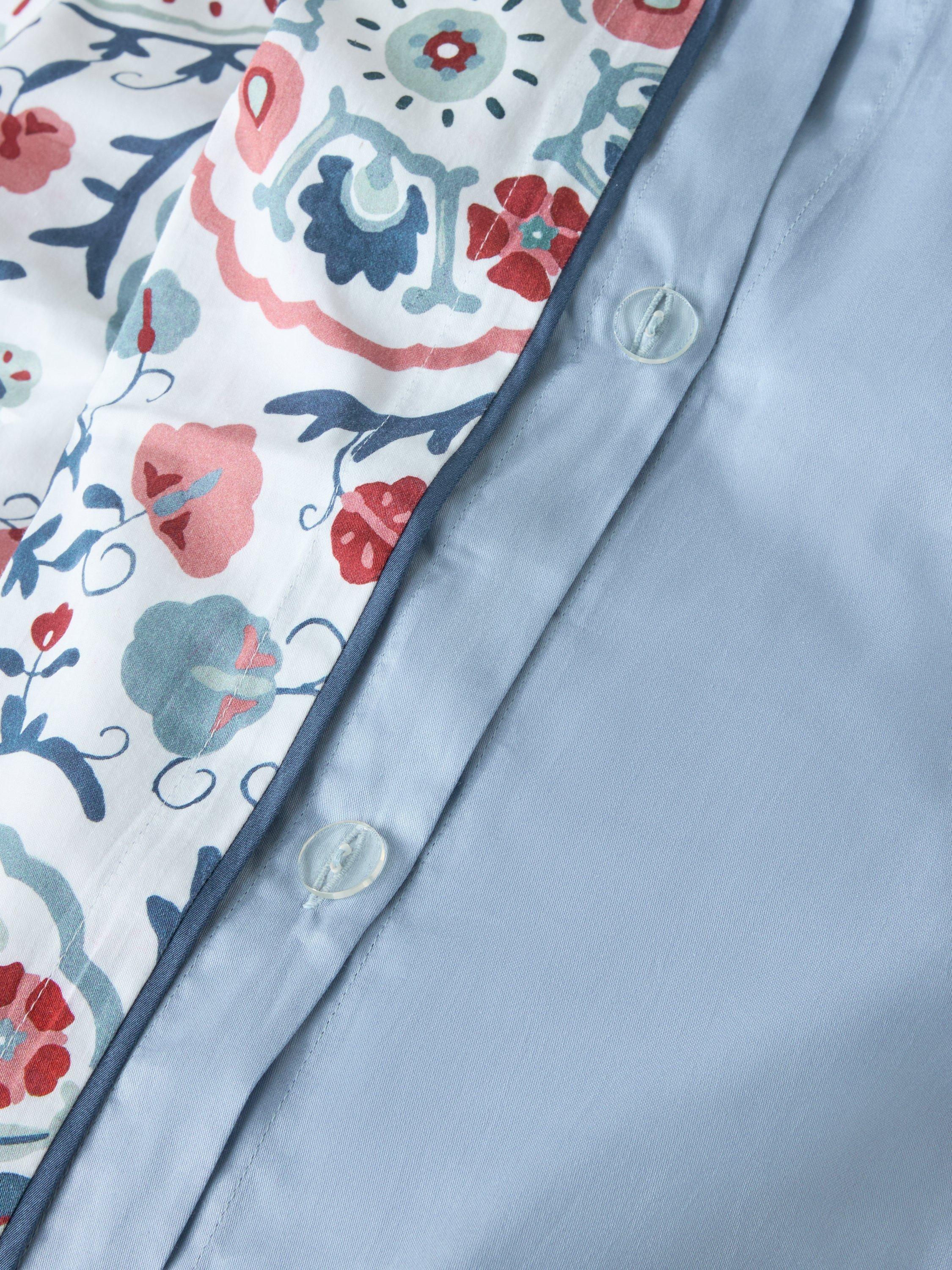 A fresh and pretty folk-style floral with Oxford edges and contrast piped detail. The reverse is plain blue.