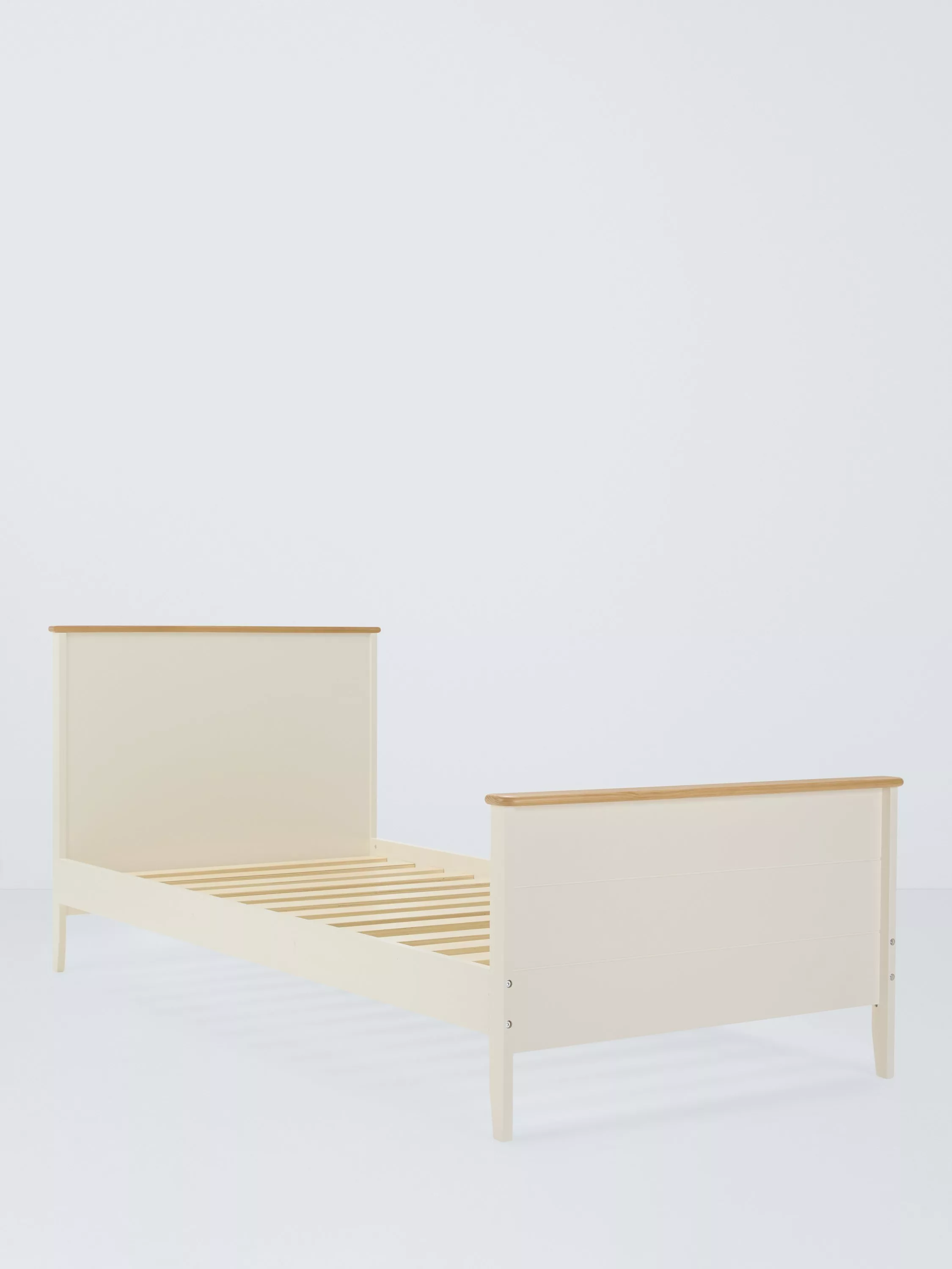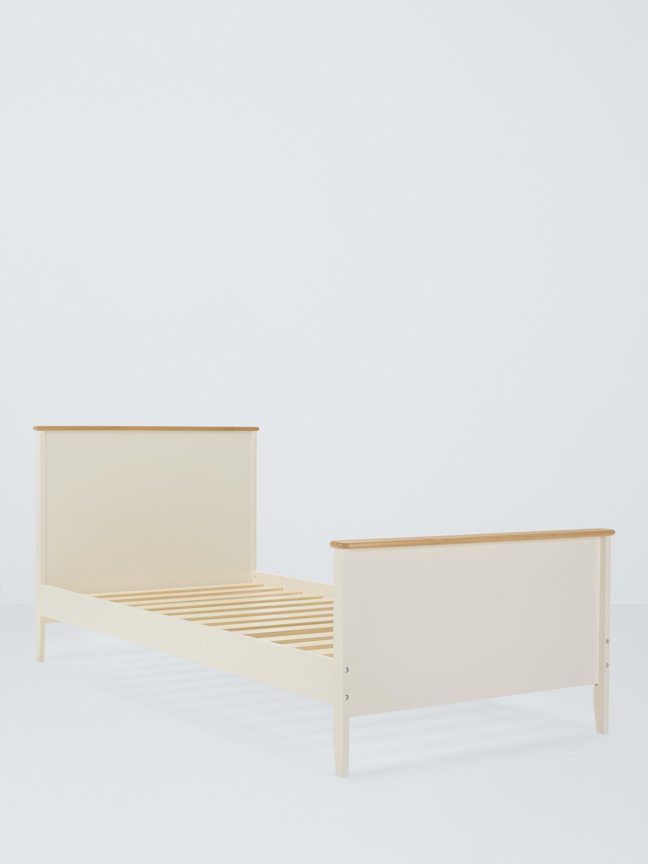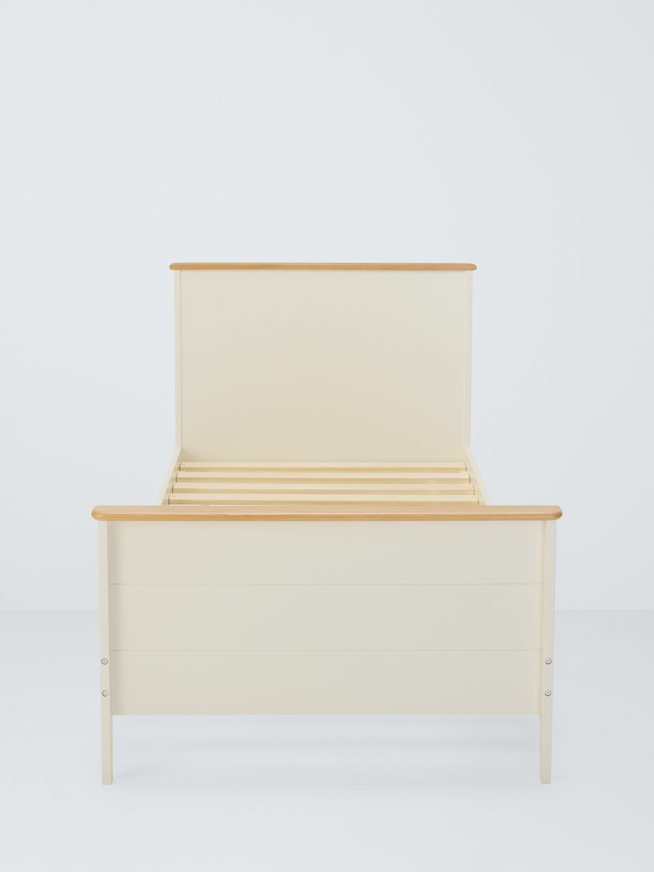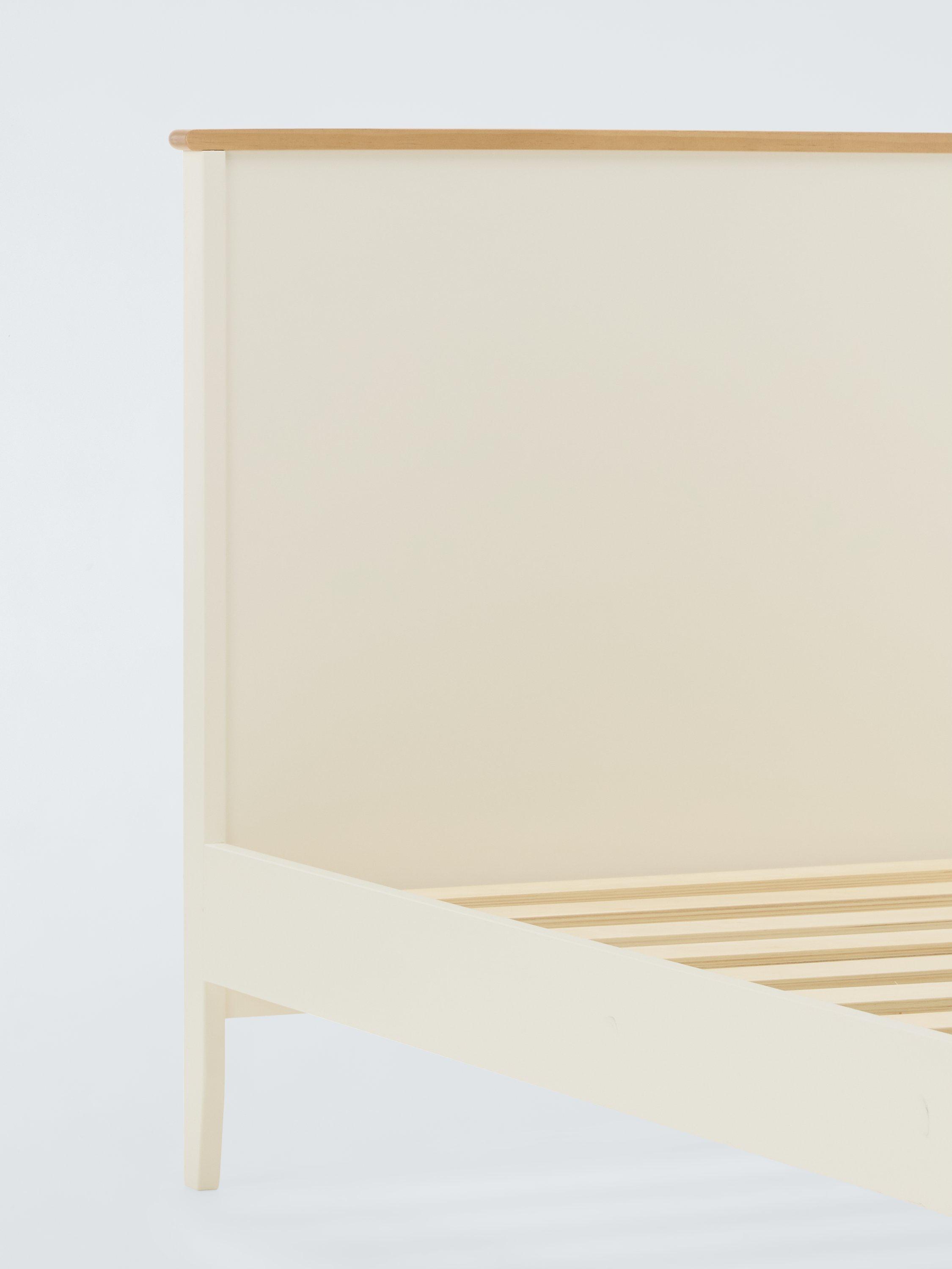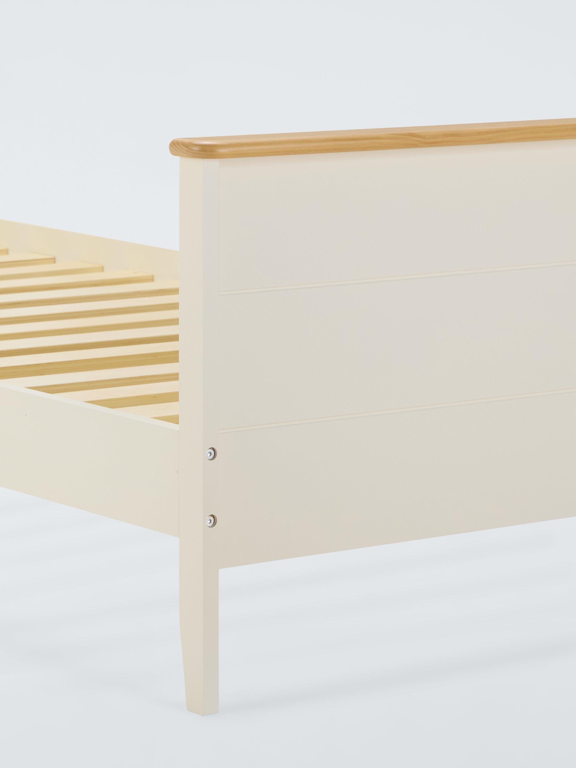 This Avery bed frame is built from a combination of hardwearing timbers and MDF. Solid slats in the base provide a supportive foundation for your mattress. With a sleek contemporary style, it combines painted and natural wood for a look that works with any theme.