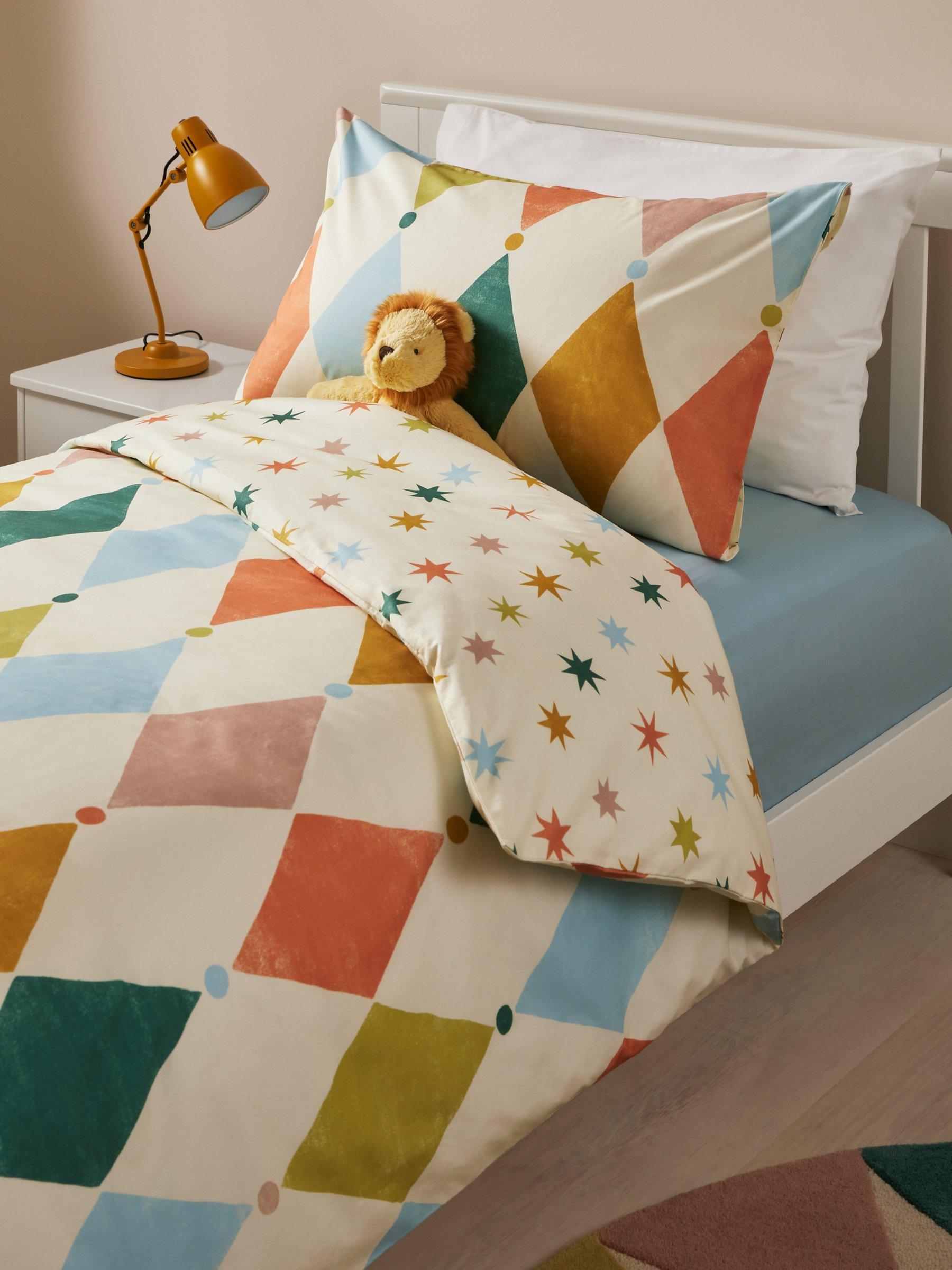 John LewisKids' Carnival Diamond Reversible Pure Cotton Duvet Cover and Pillowcase Set, Multi