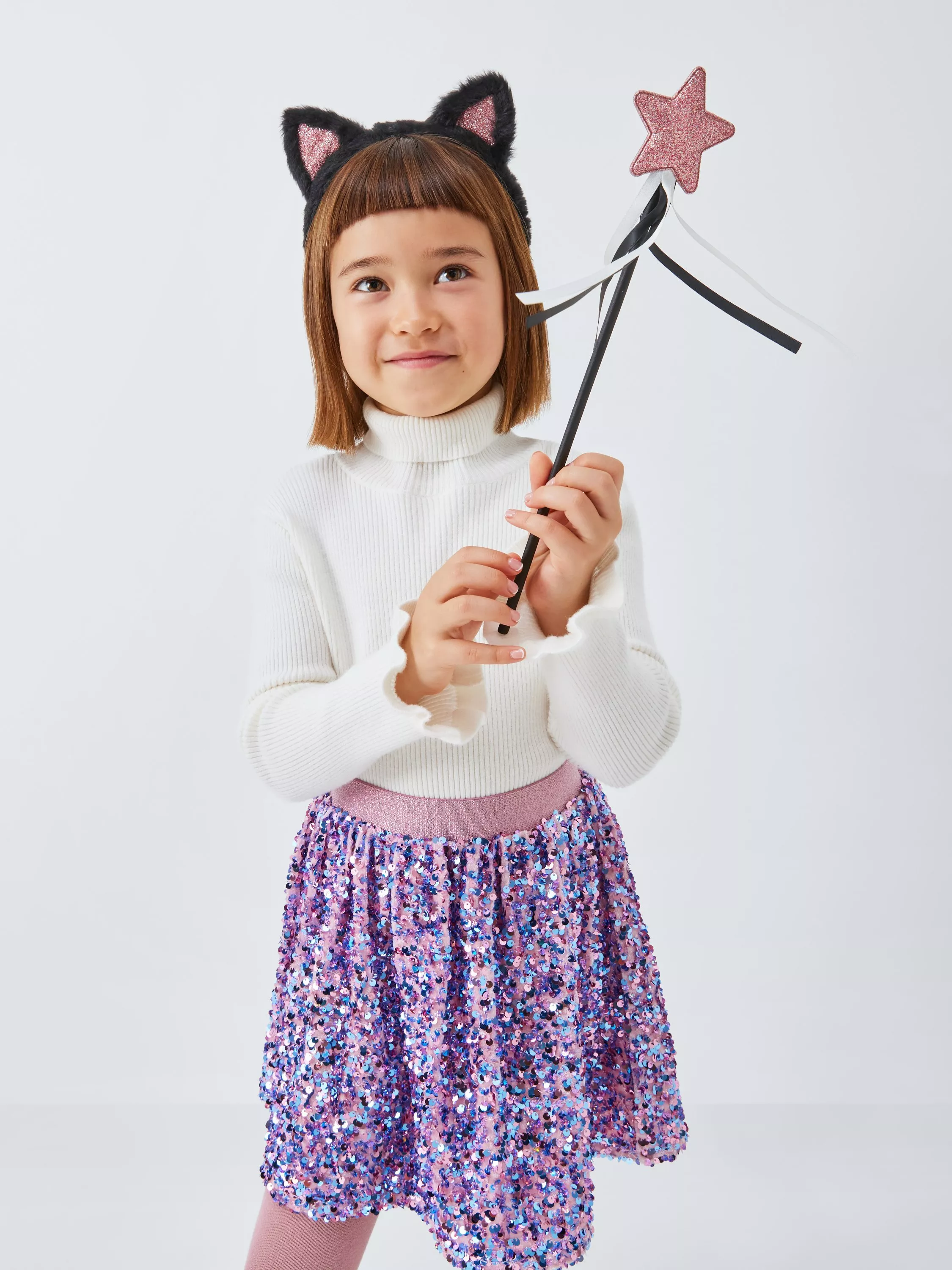 Fluffy cat ears headband and matching star wand. Both have glittery finishes, plus the wand has streamers for even better swooshing.