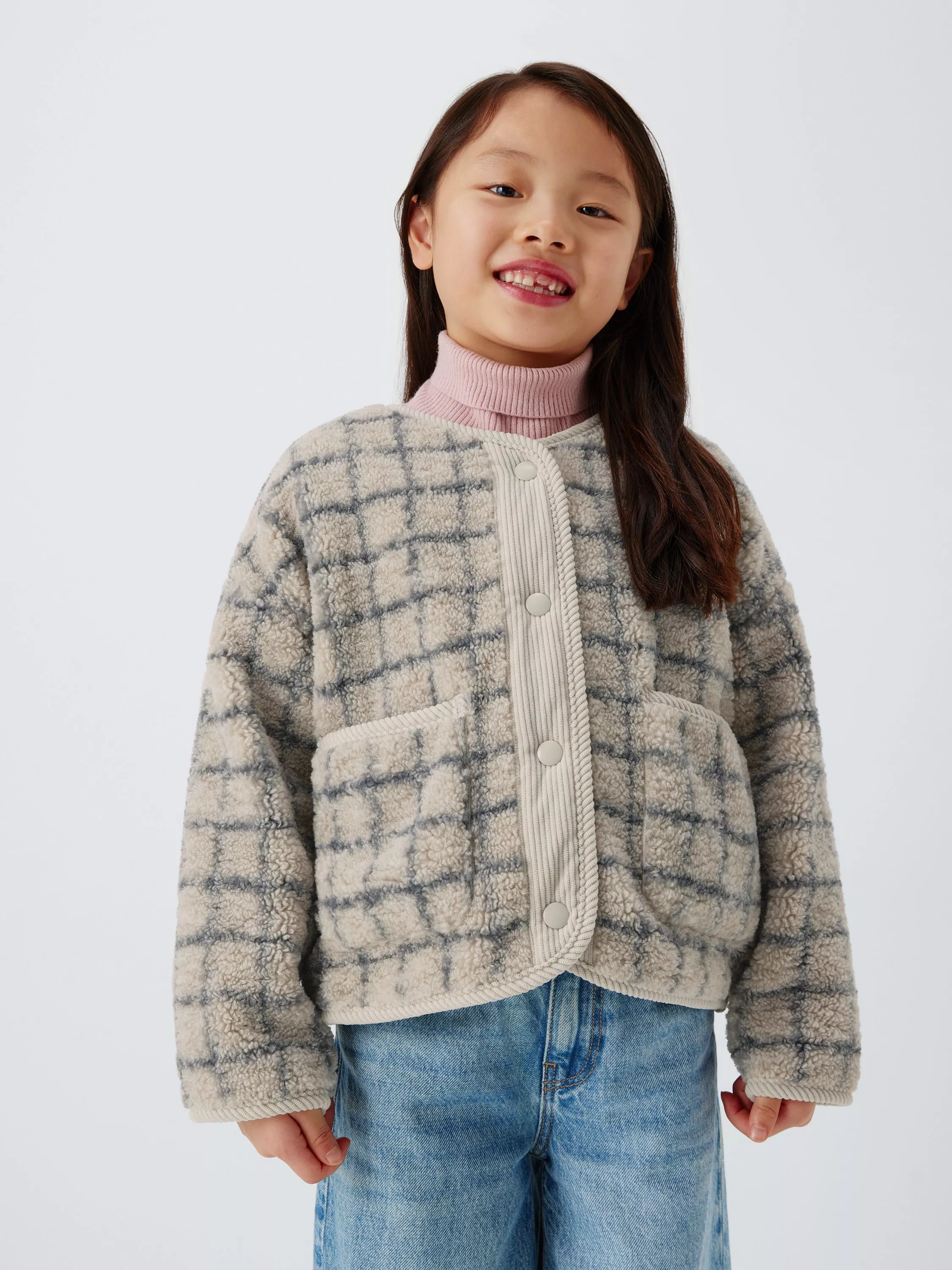 In a soft and cosy fleece fabric, this jacket comes in a classic check with fuss-free popper snap opening at the front. Lined in cotton jersey, the corduroy piping adds an elevated feel.