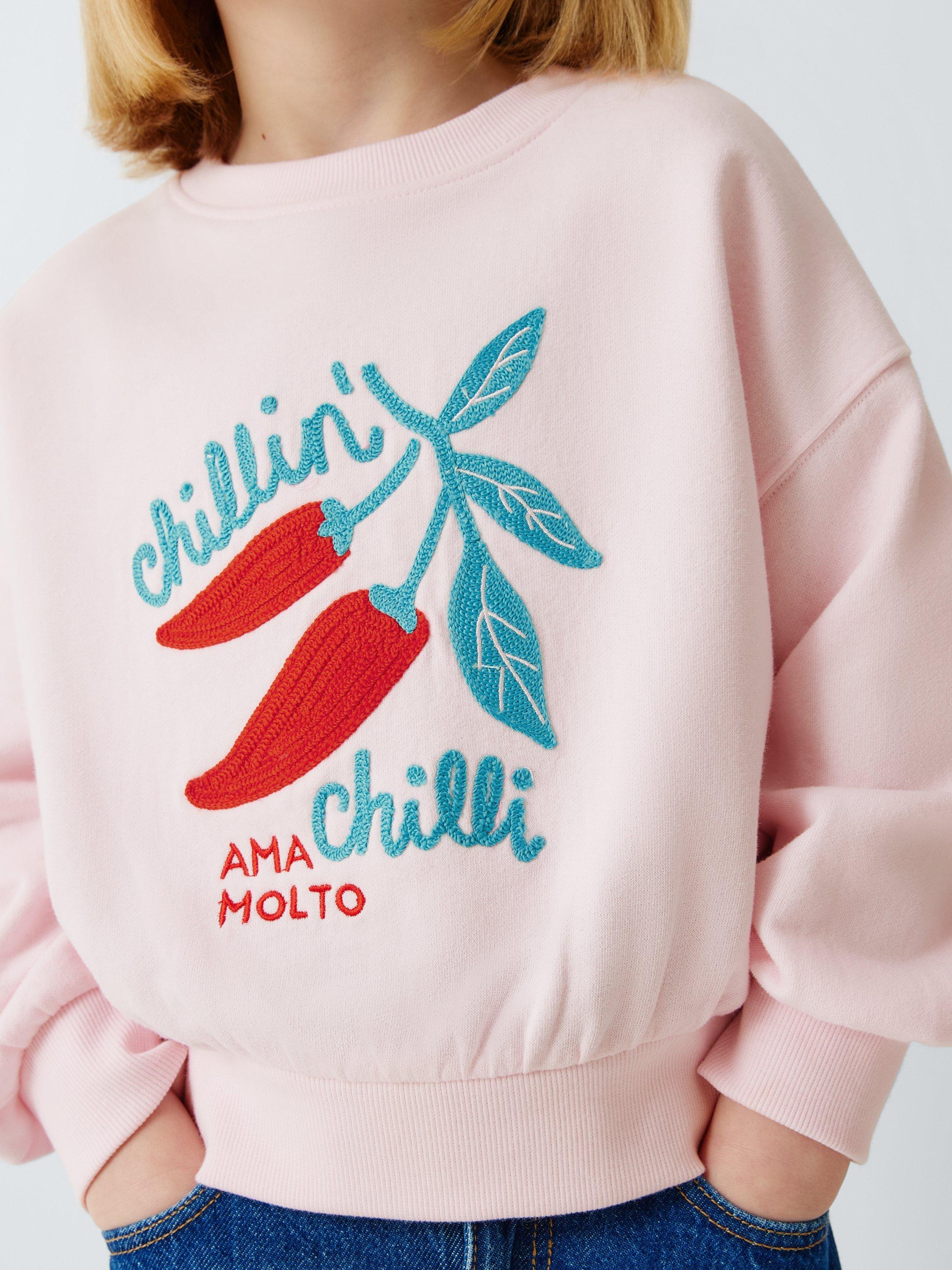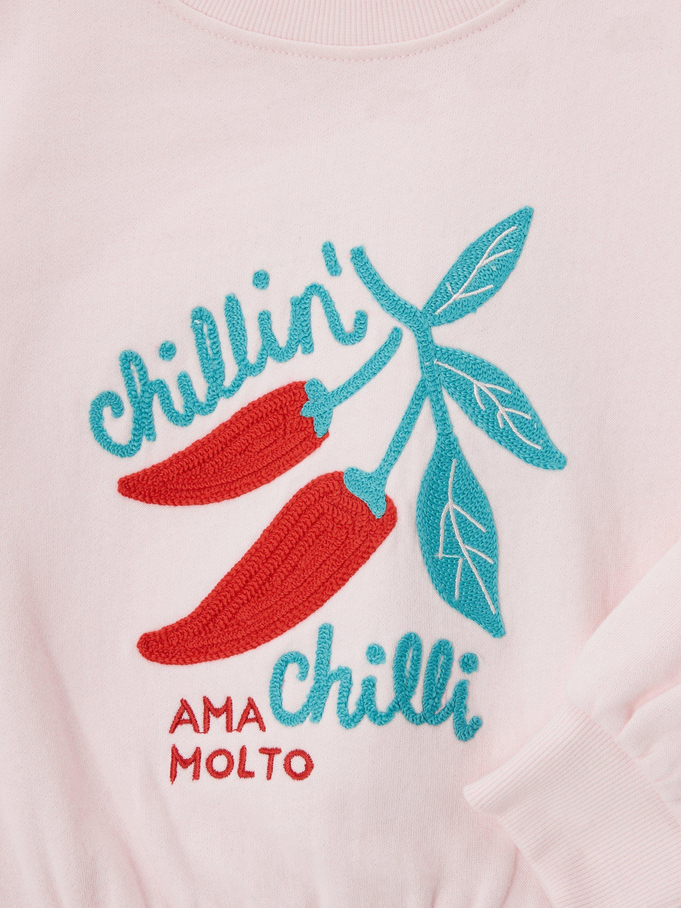 A pure cotton jersey sweatshirt with a spicy, chilli-themed embroidered design.