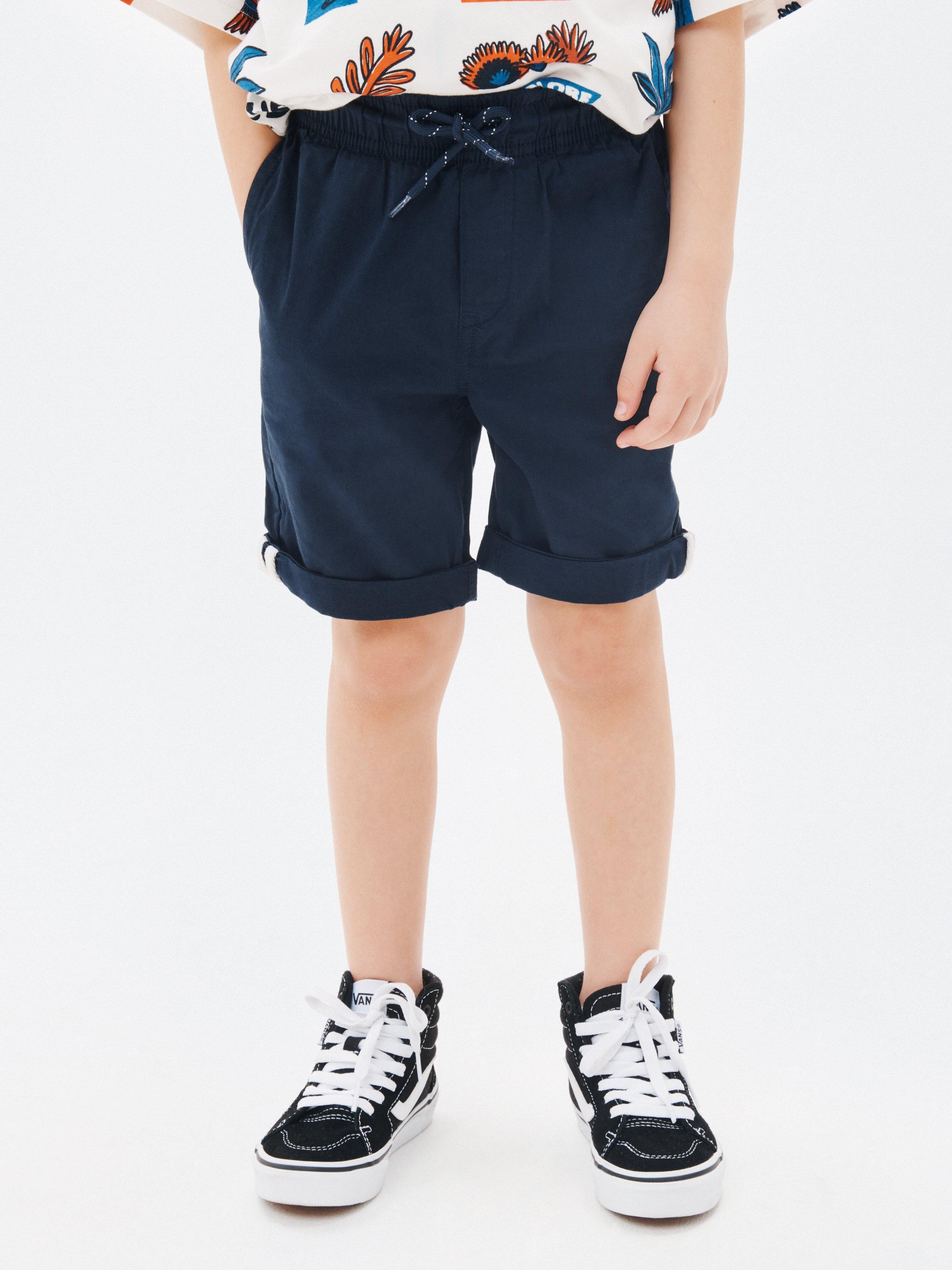 An ideal set for seeing them through the summer, we designed these shorts in a preppy chino style from a soft and breathable cotton blend. Accented with smart turn up hems, they're finished with an elasticated waistband for a comfy fit.