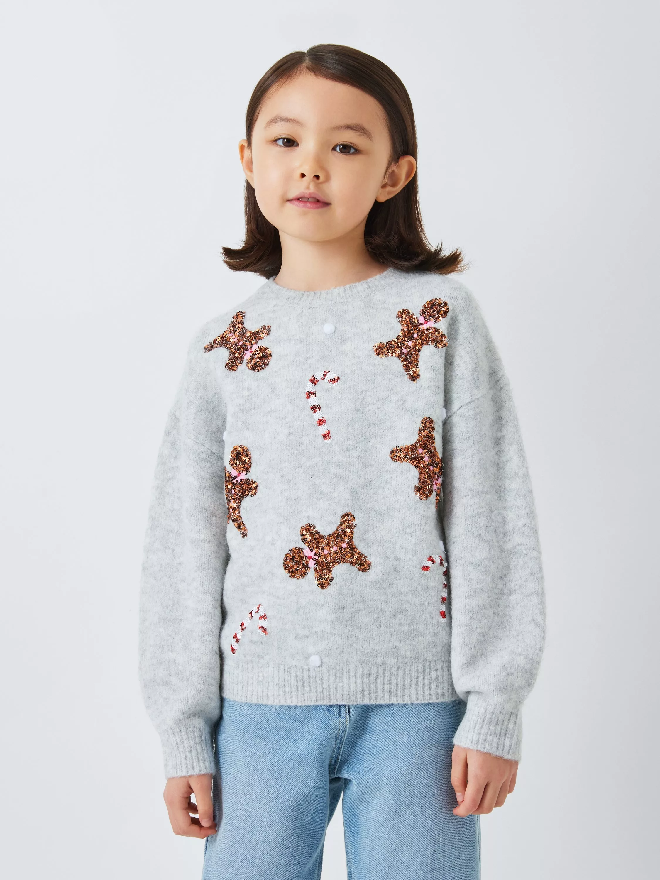 John LewisKids' Christmas Sequin Gingerbread Jumper, Grey