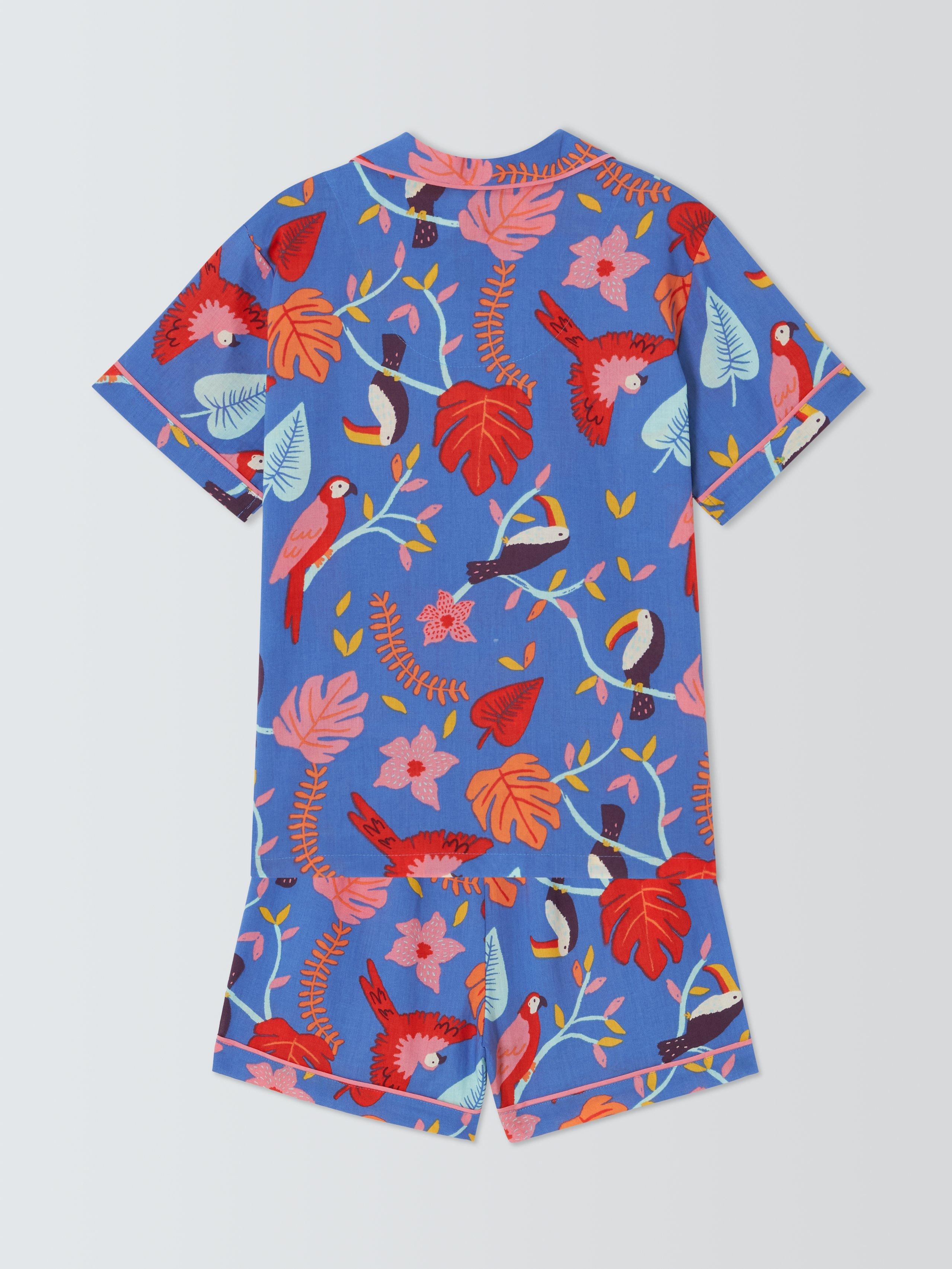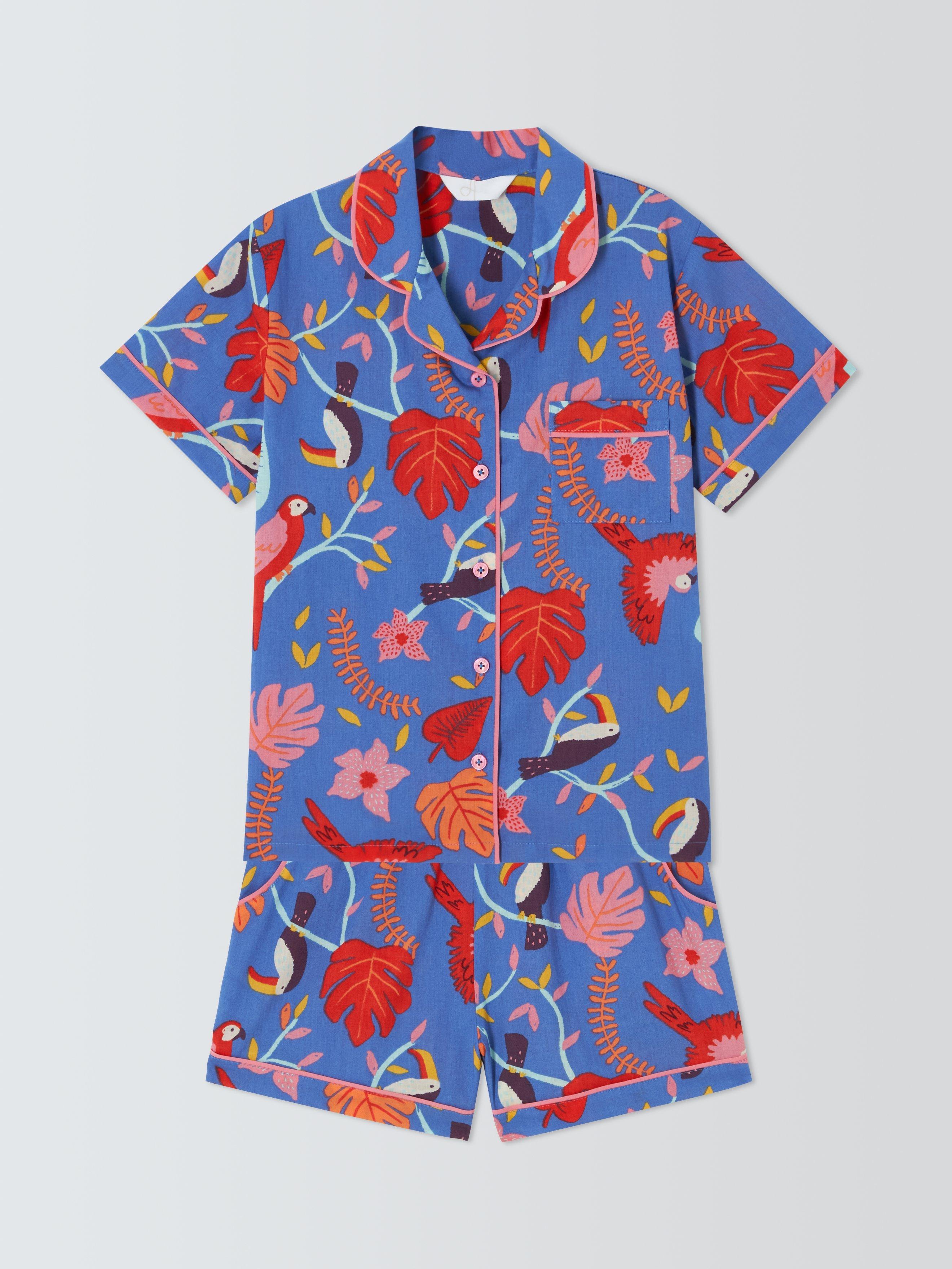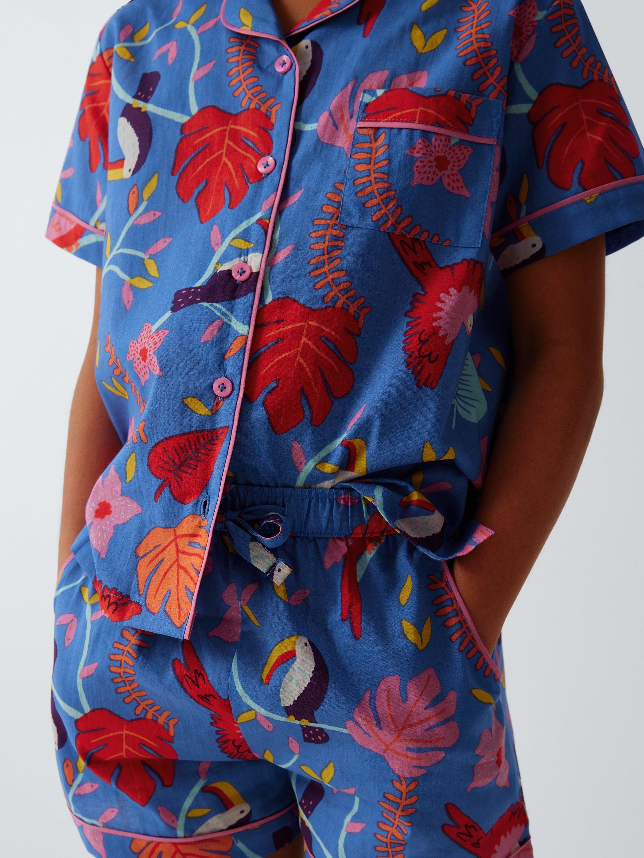 Inject a little fun and a lot of colour into bedtime with these cotton shortie pyjamas. They feature elasticated waist shorts and button-through top.
