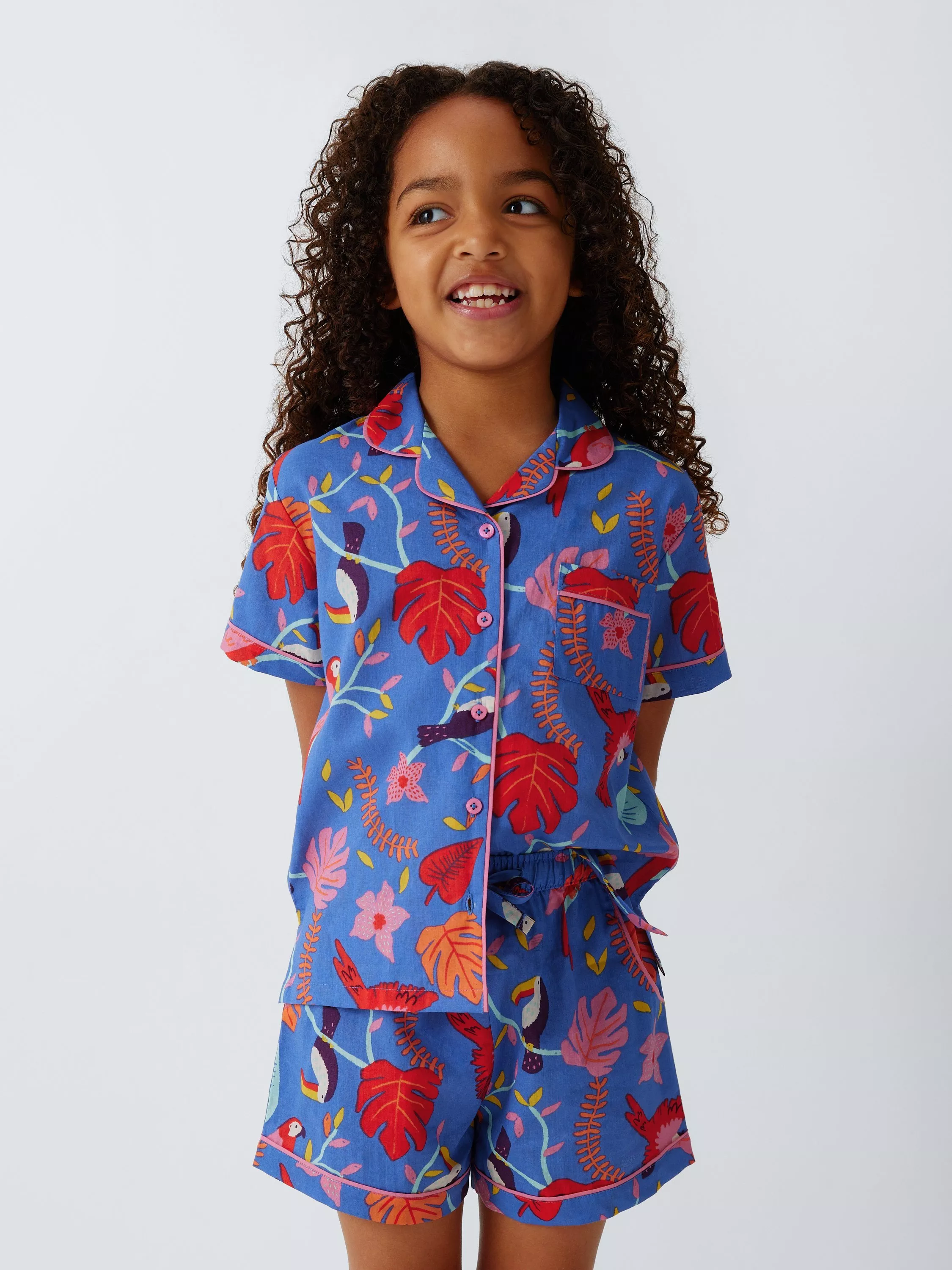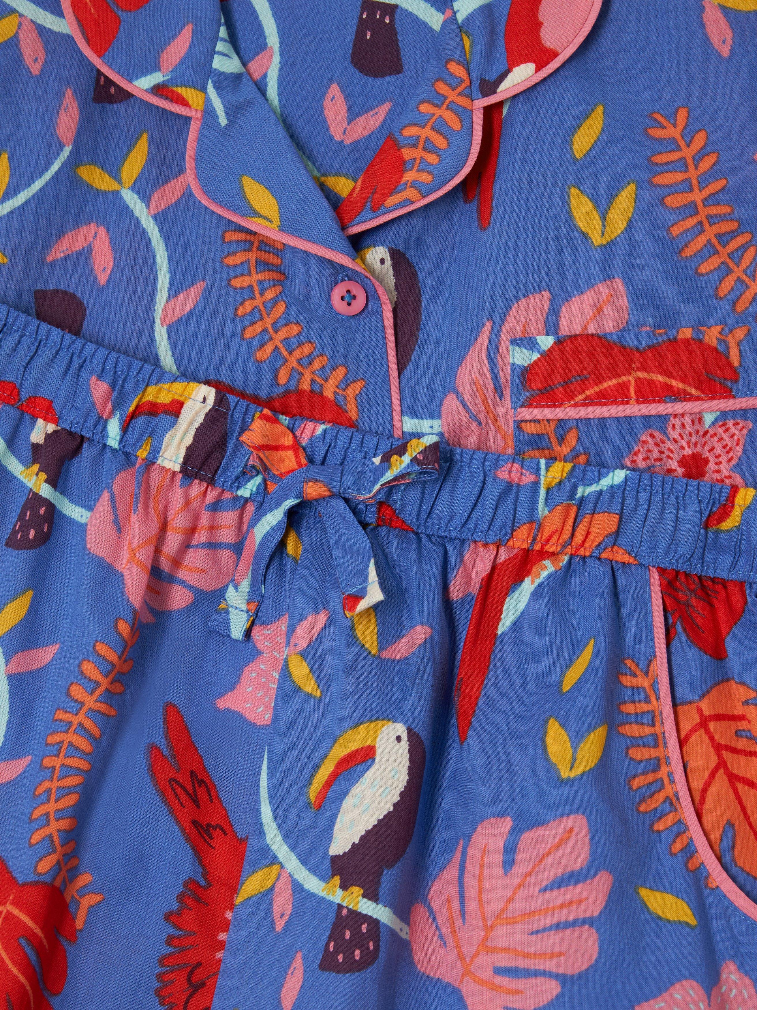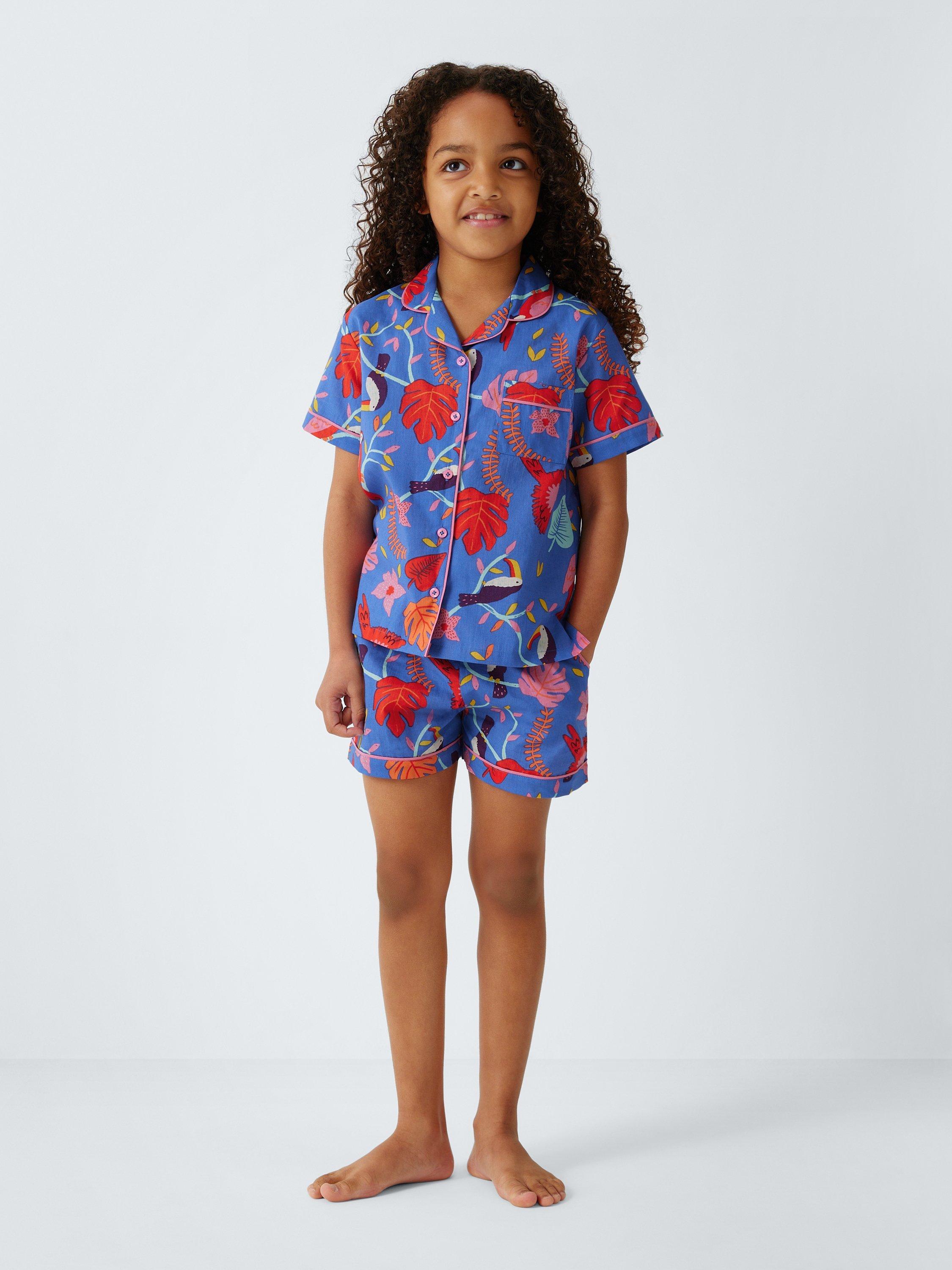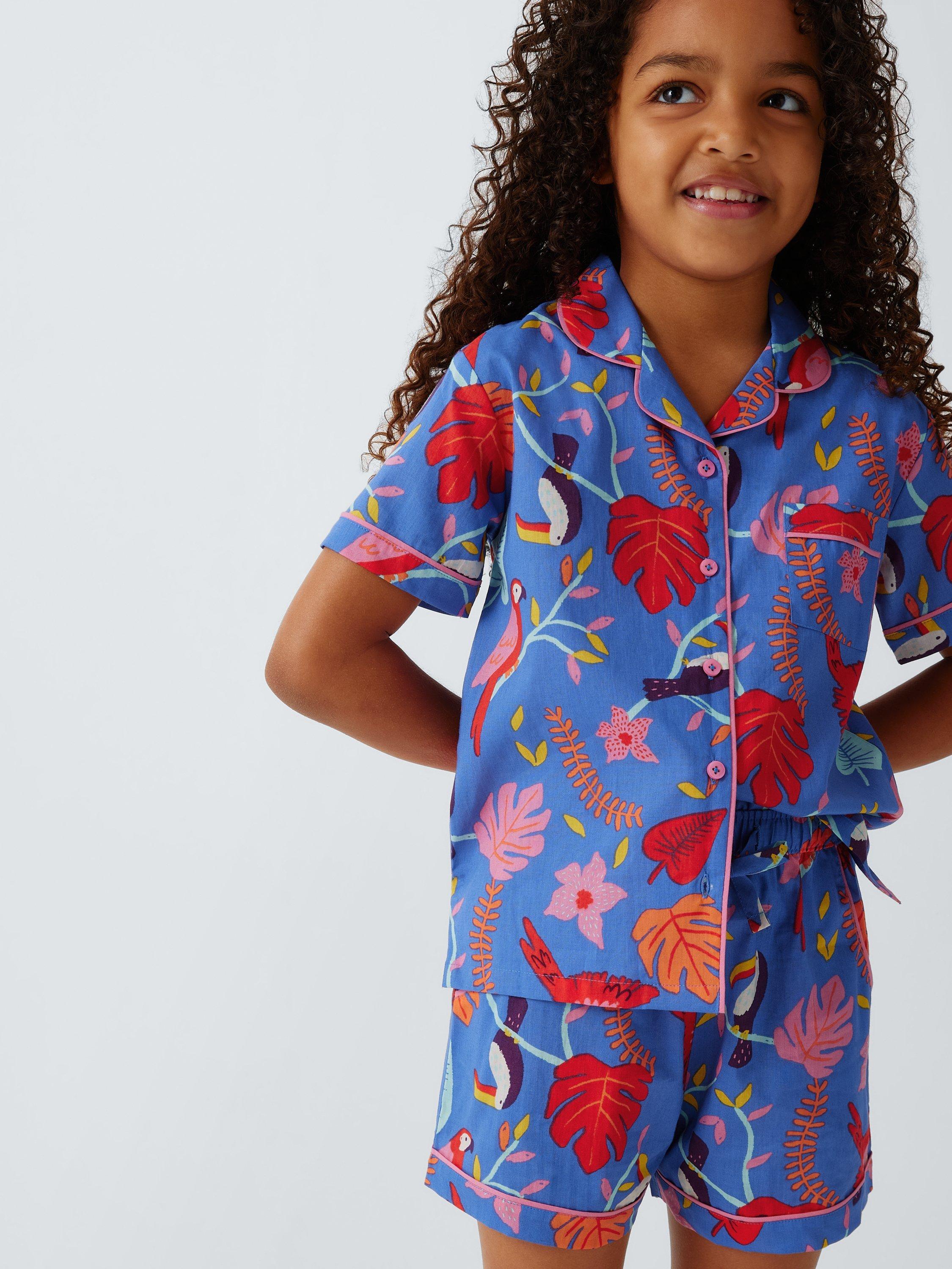Inject a little fun and a lot of colour into bedtime with these cotton shortie pyjamas. They feature elasticated waist shorts and button-through top.
