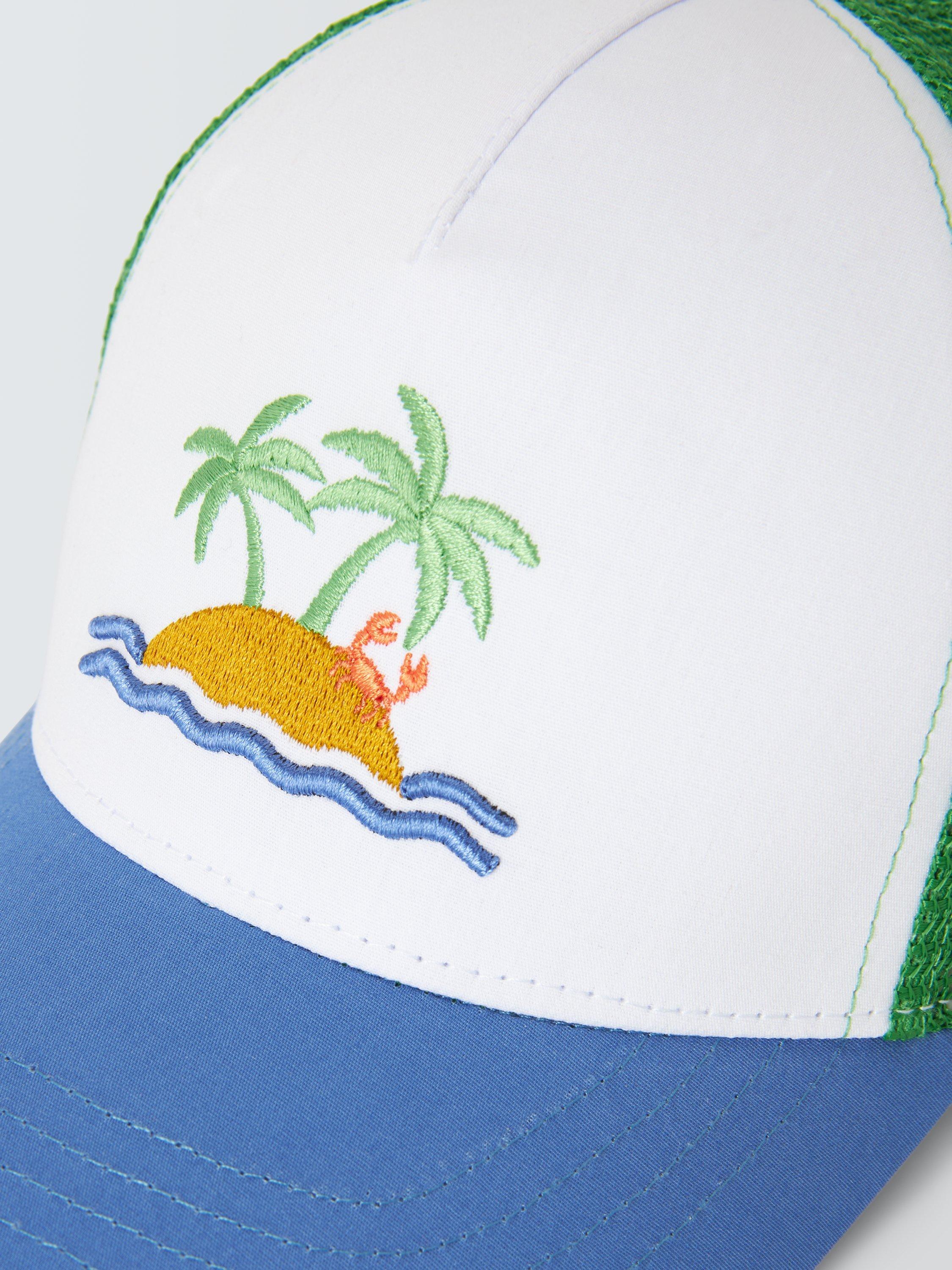 This colour block baseball cap has wave, palm and crab embroidery that's perfect for summer vibes and is fresh and breathable thanks to its mesh sides.
