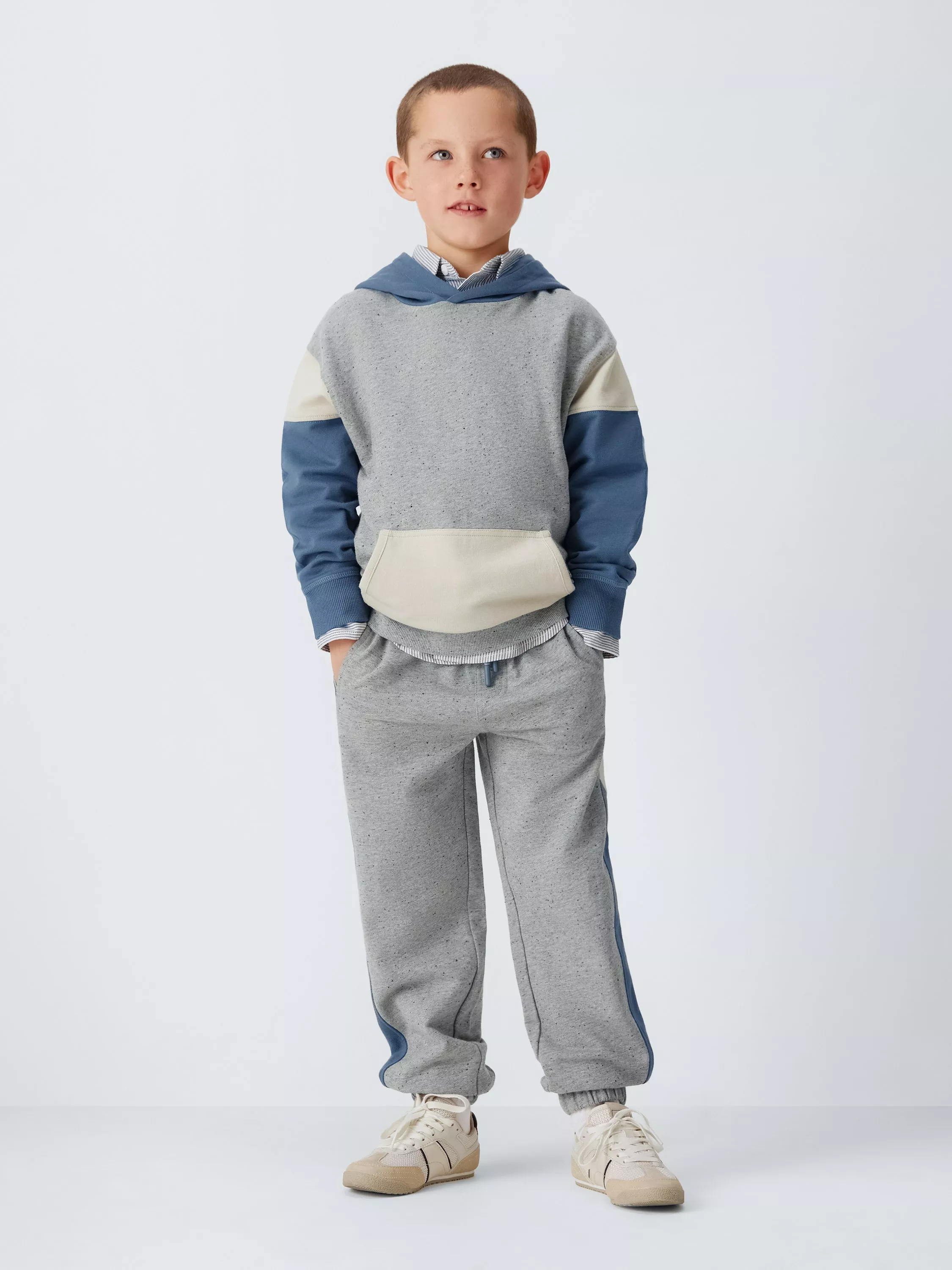 Made from pure cotton jersey, this tracksuit comes in a sporty colour block style. The jumper features a cosy hood and handy kangaroo pocket, whilst the joggers have a self-tie waistband and elasticated hems.