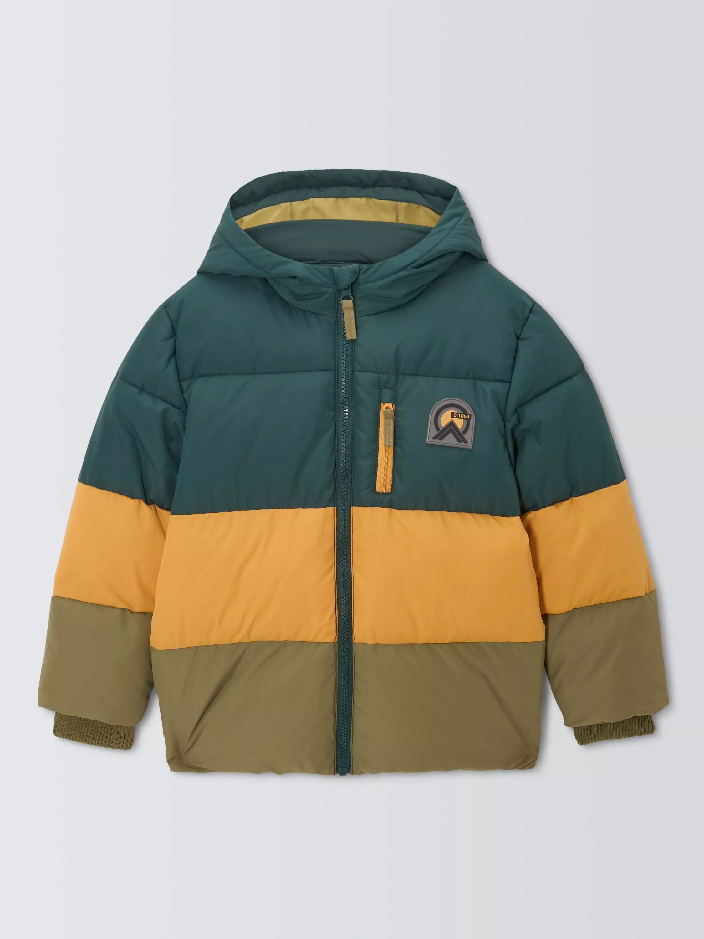 In a sporty, colour block design, this padded coat is perfect for seeing them through the colder months. With a fuss-free centre front zip opening, this shower-resistant coat is detailed with a badge and chest pocket as well as an inner pocket.