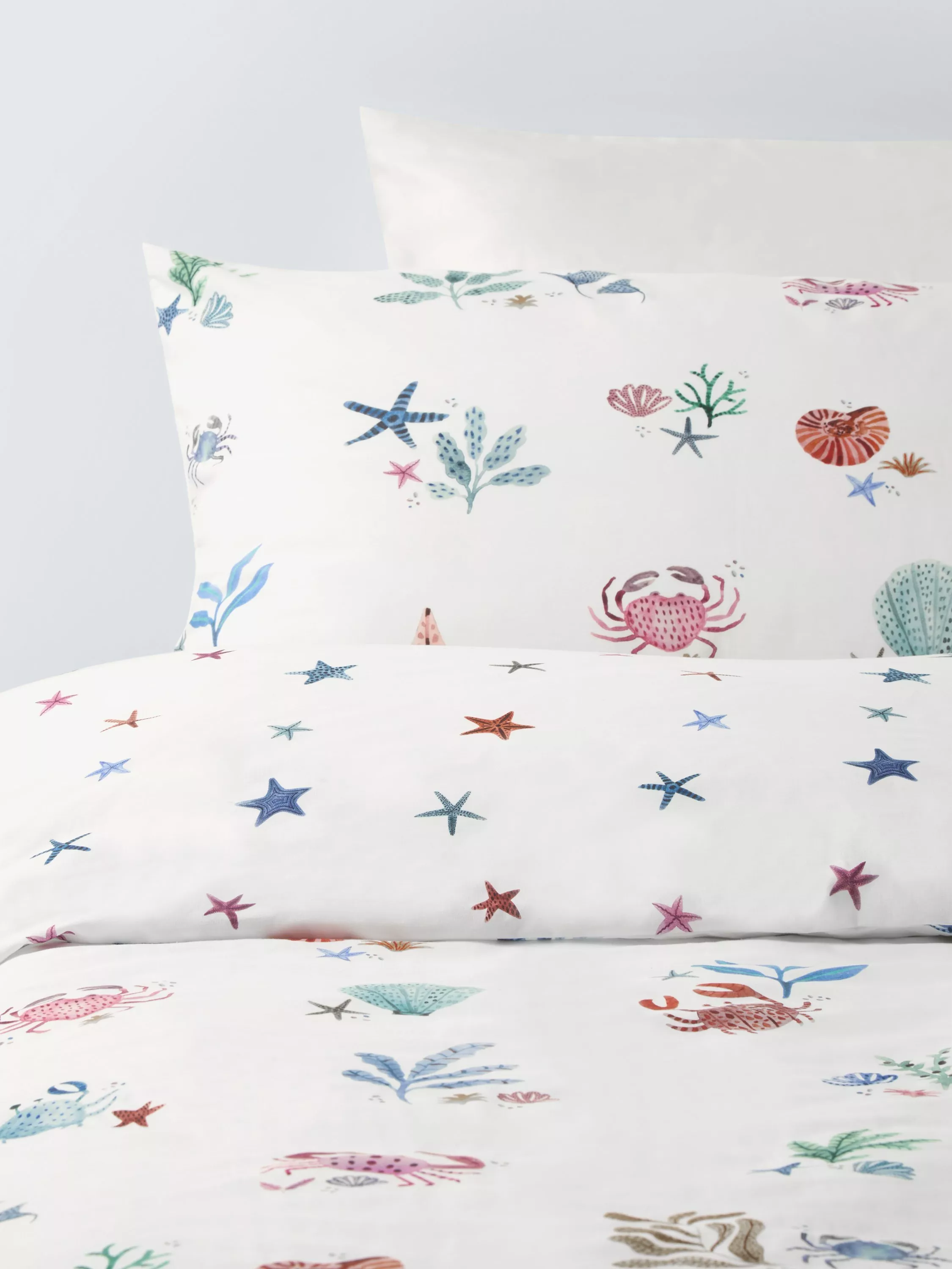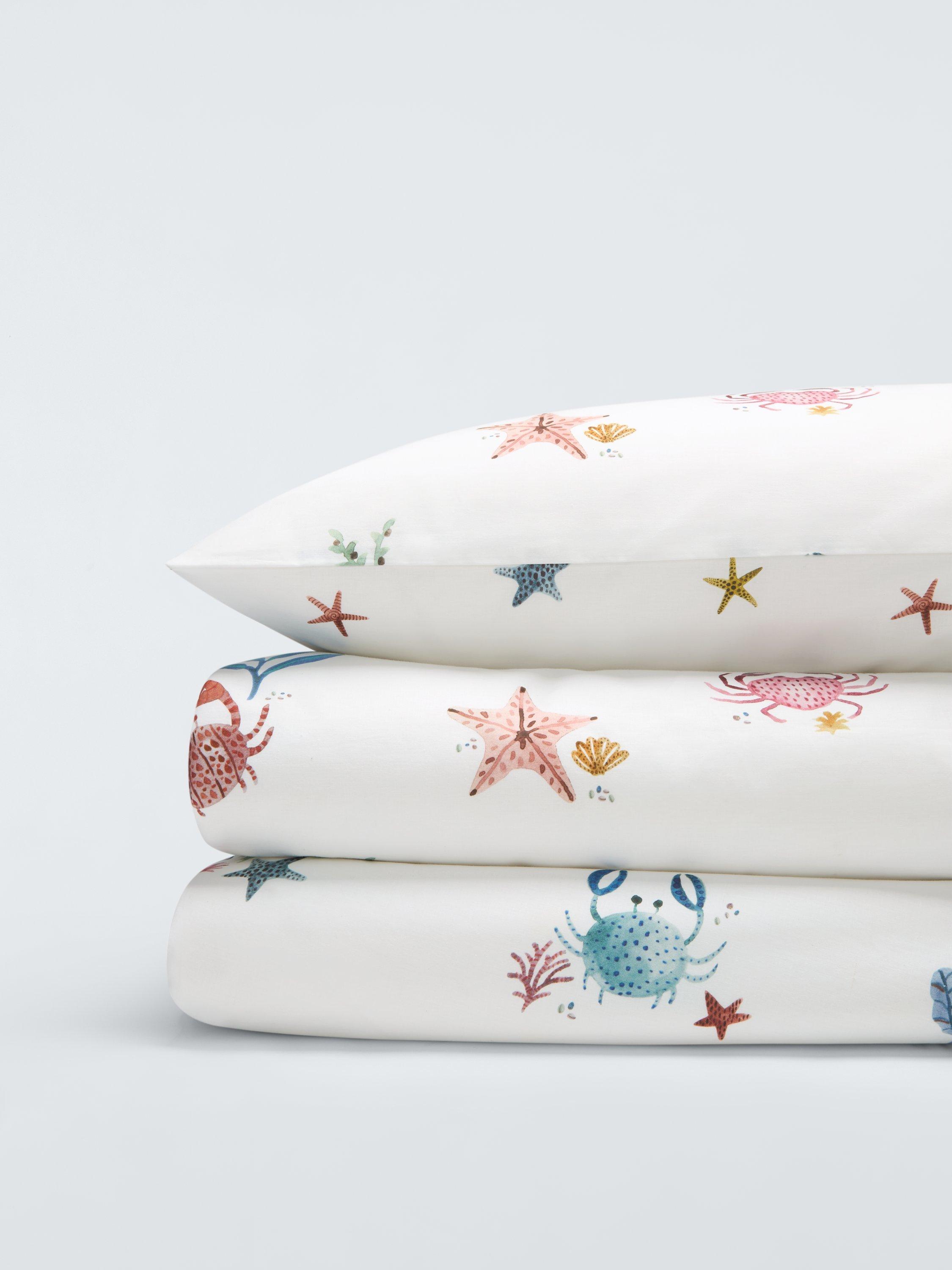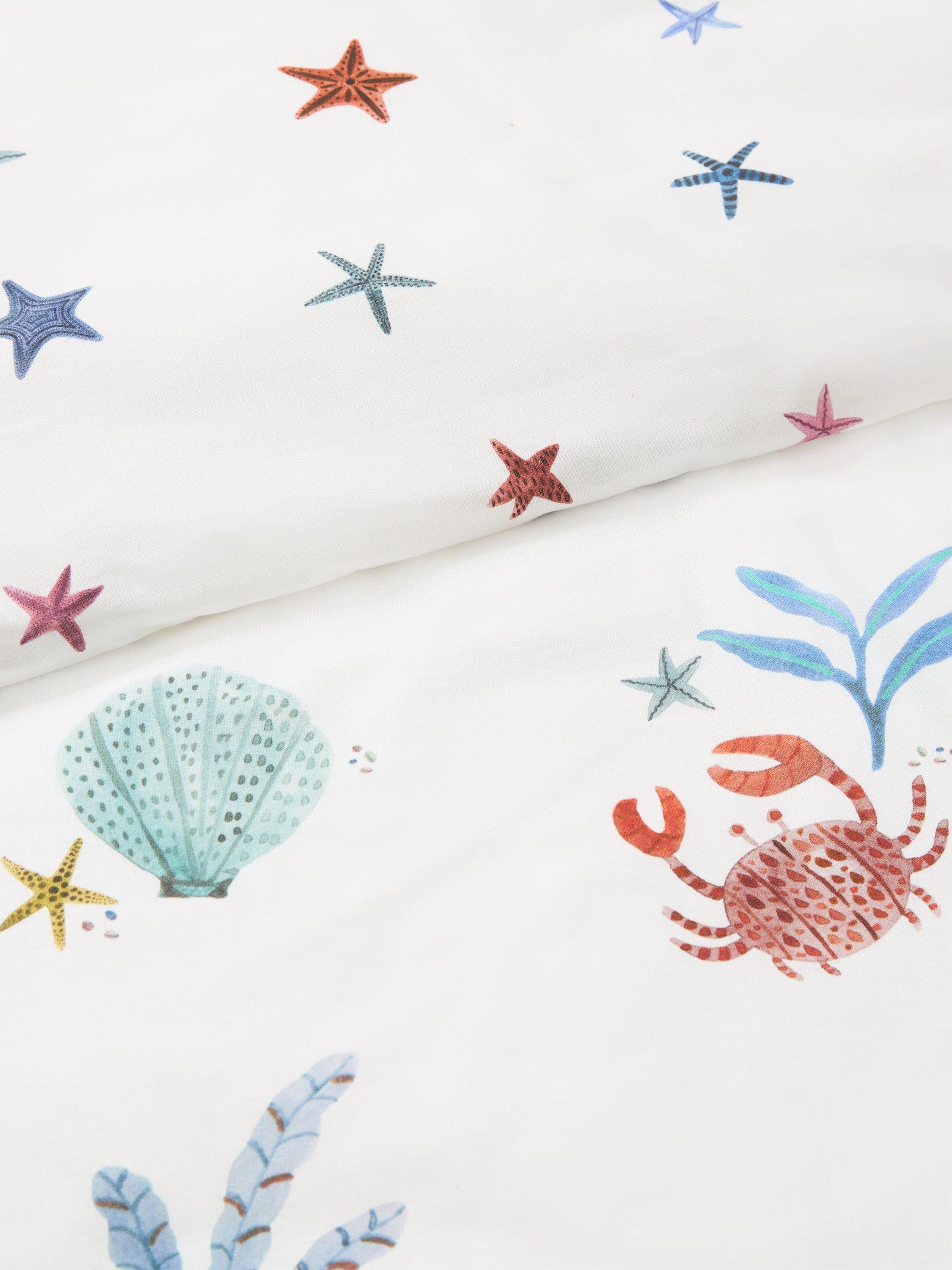 A playful coral reef print decorates this duvet cover and pillowcase set - perfect for nautical-themed rooms.