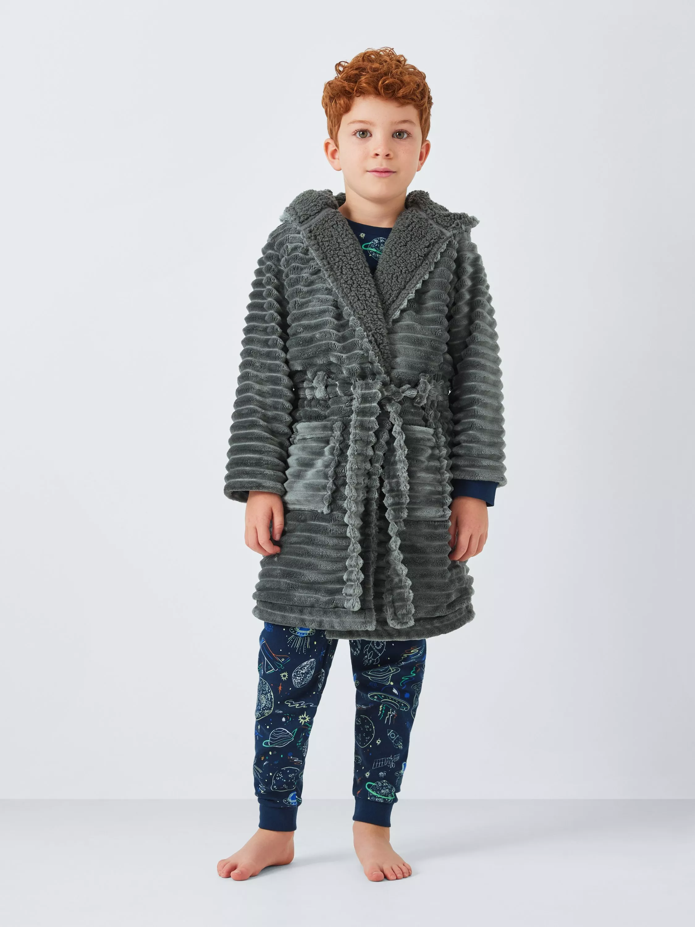 This soft and warm dressing gown from our collection is perfect for cuddling up in before bed and after a bath. Made from a super-soft cord fleece, this cosy dressing gown features a hood, a fluffy lining and two front pockets.