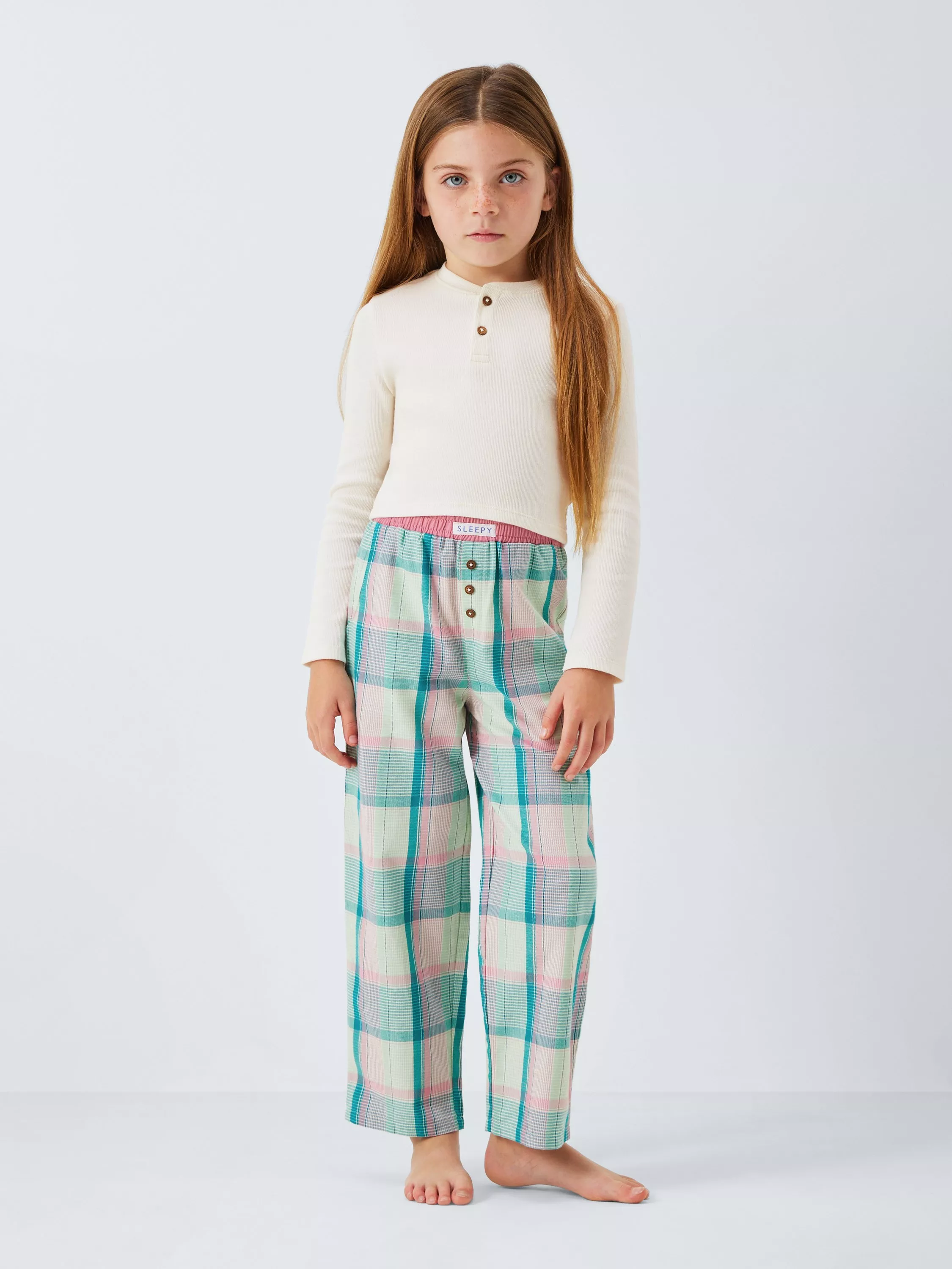 Made from soft cotton, this comfy pyjama set features a long-sleeved ribbed top, and all-over checked bottom with an elasticated waist. Finished with button detailing.