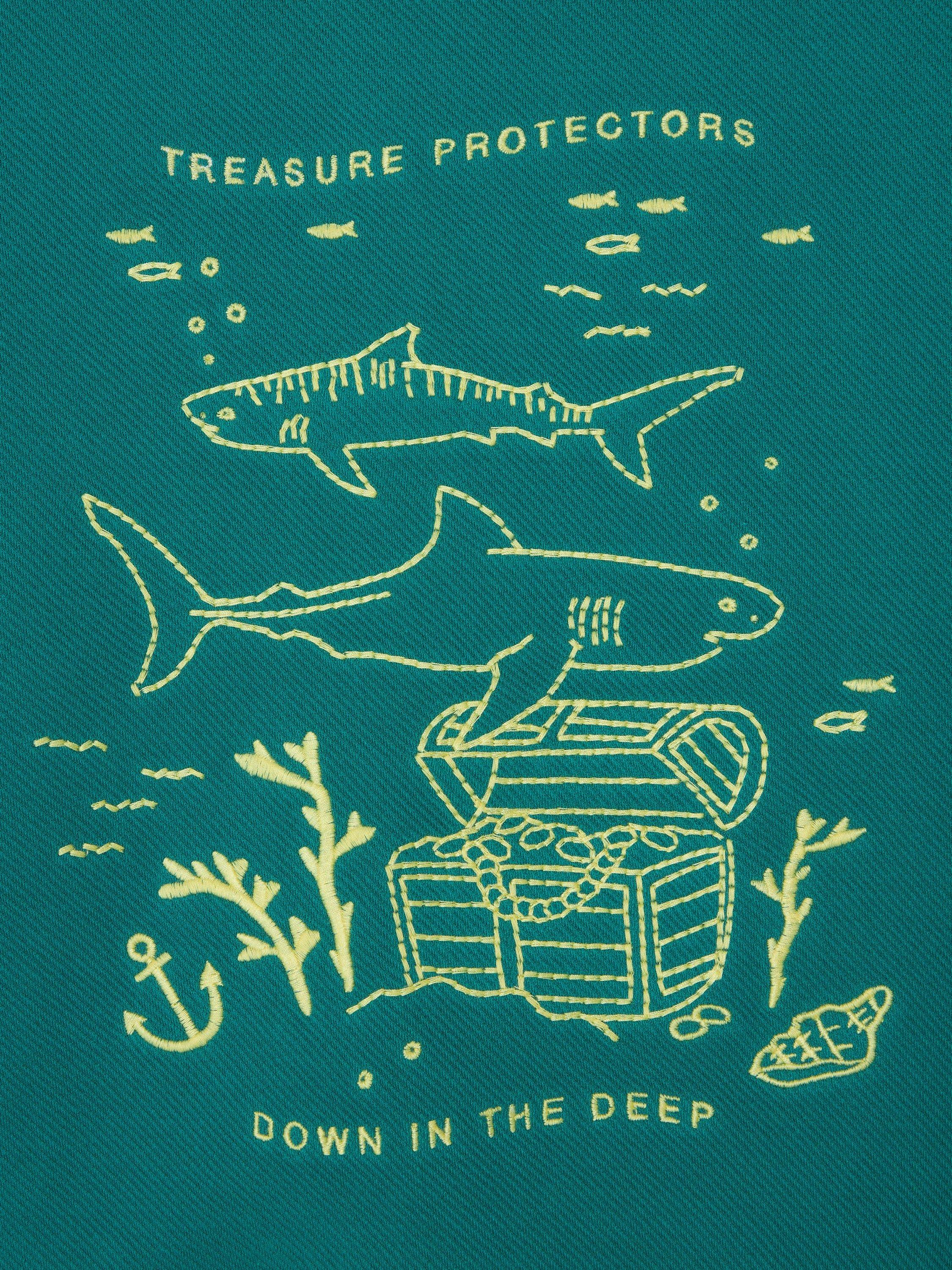 A crew neck cotton sweatshirt with a treasure-themed design.