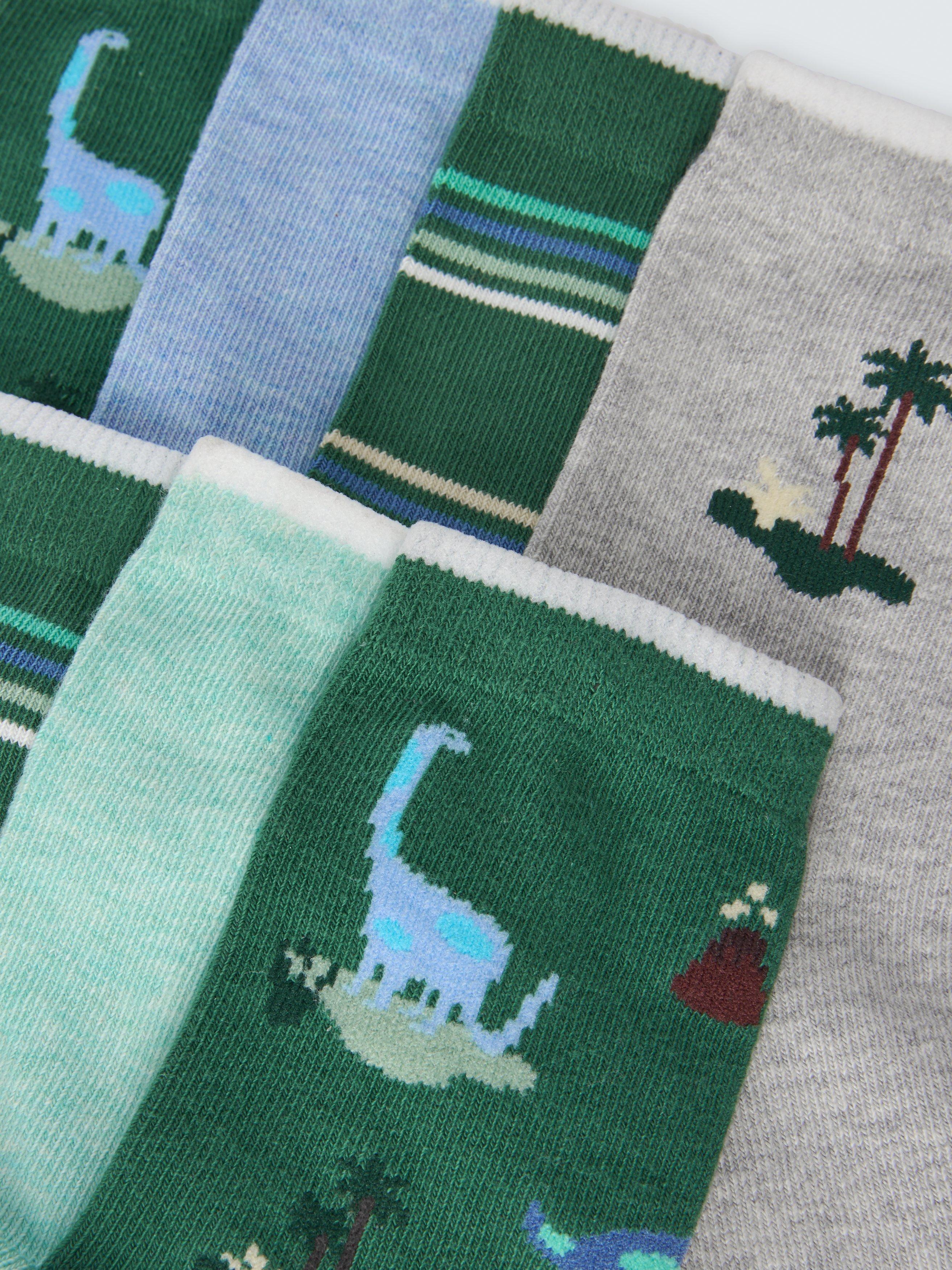 7x pairs of dinosaur-themed, cotton rich socks that are perfect for your little paleontologist.