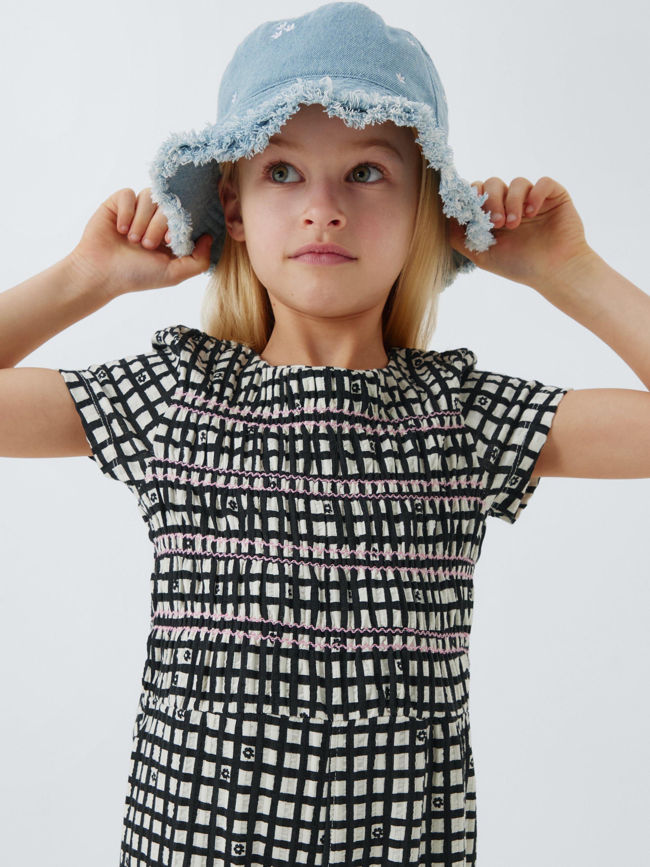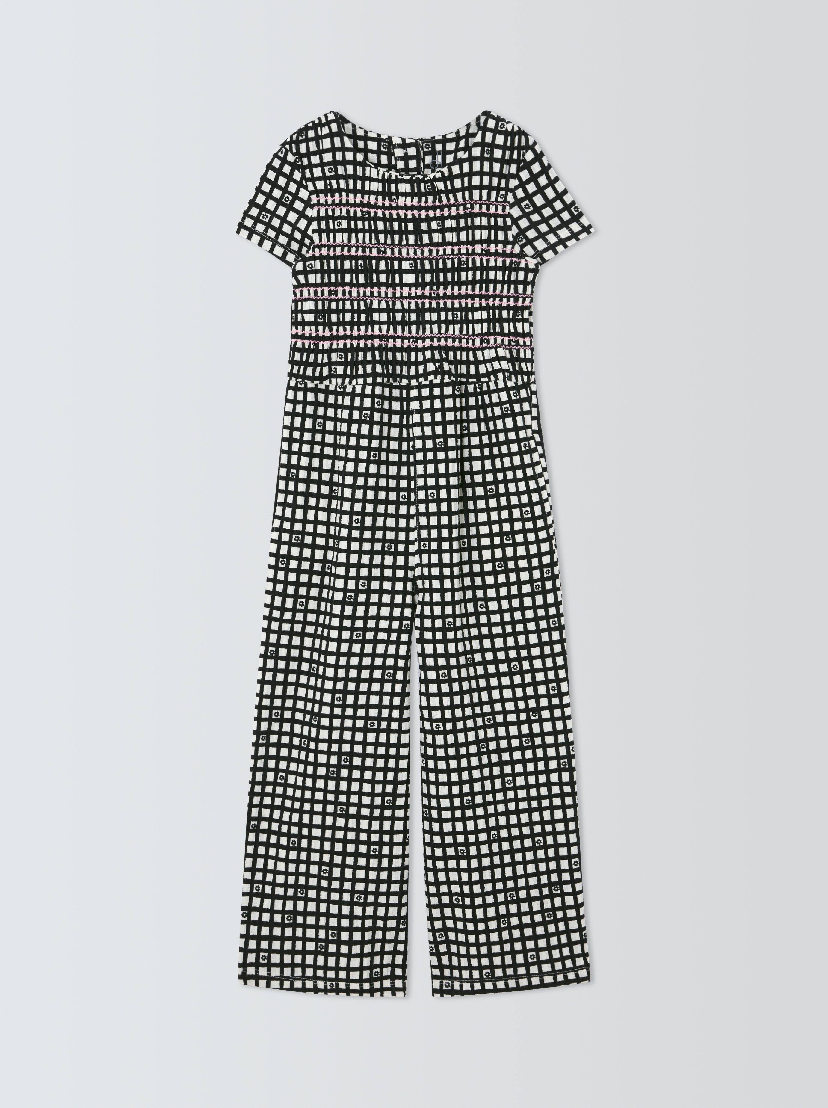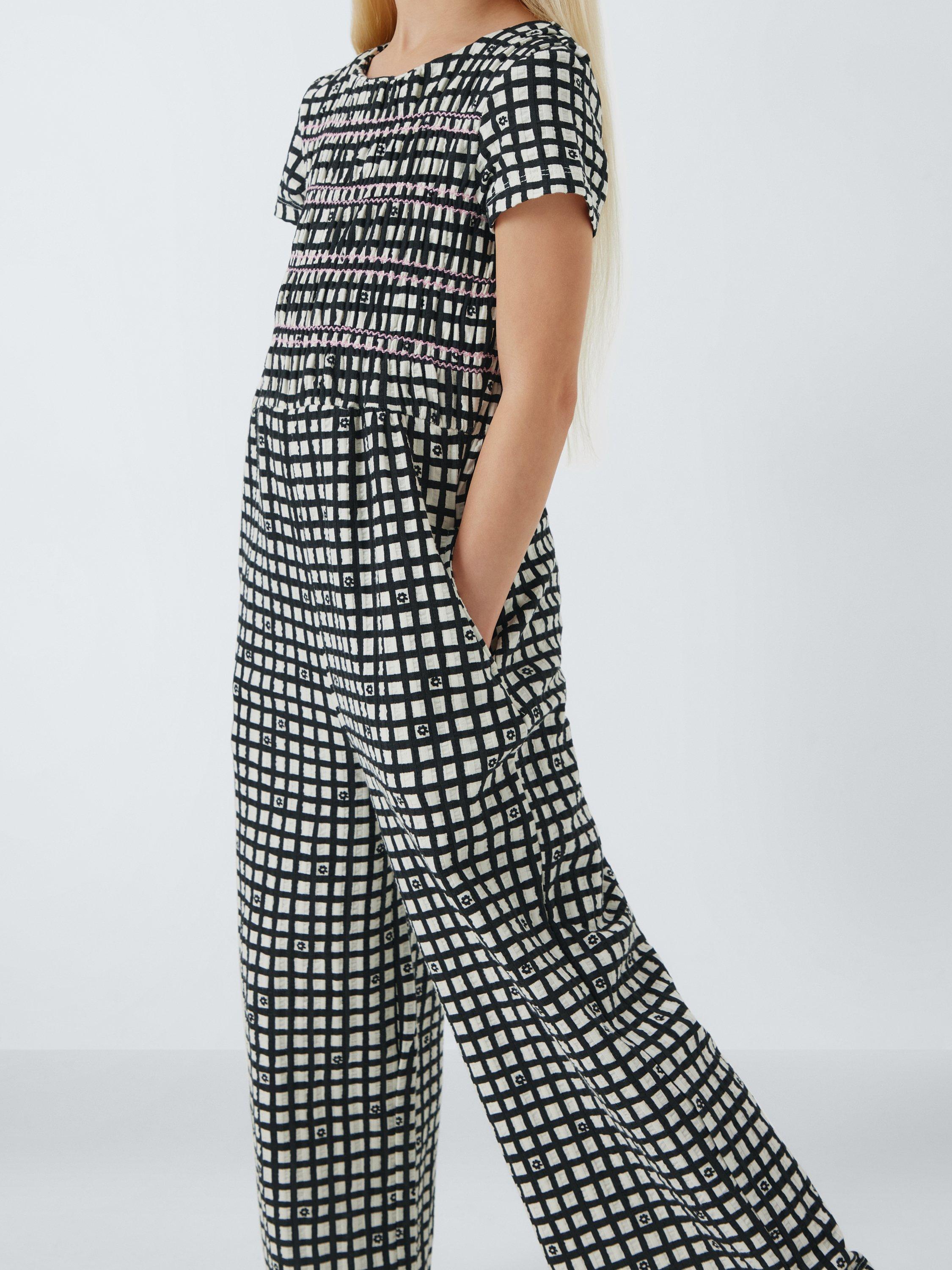John LewisKids' Floral Gingham Jumpsuit, Black, White