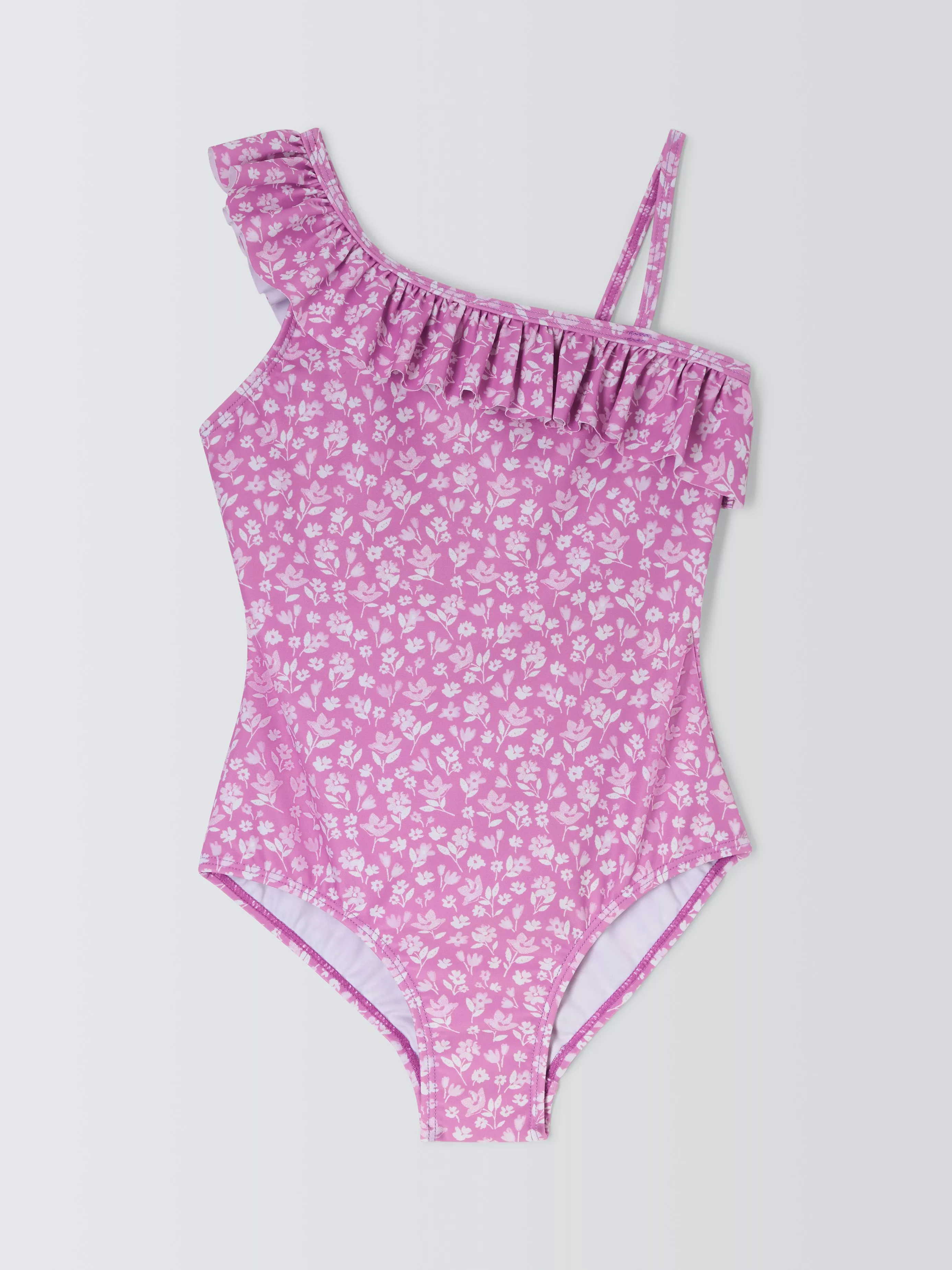 John LewisKids' Floral Print One Shoulder Ruffle Swimsuit, Purple/Multi