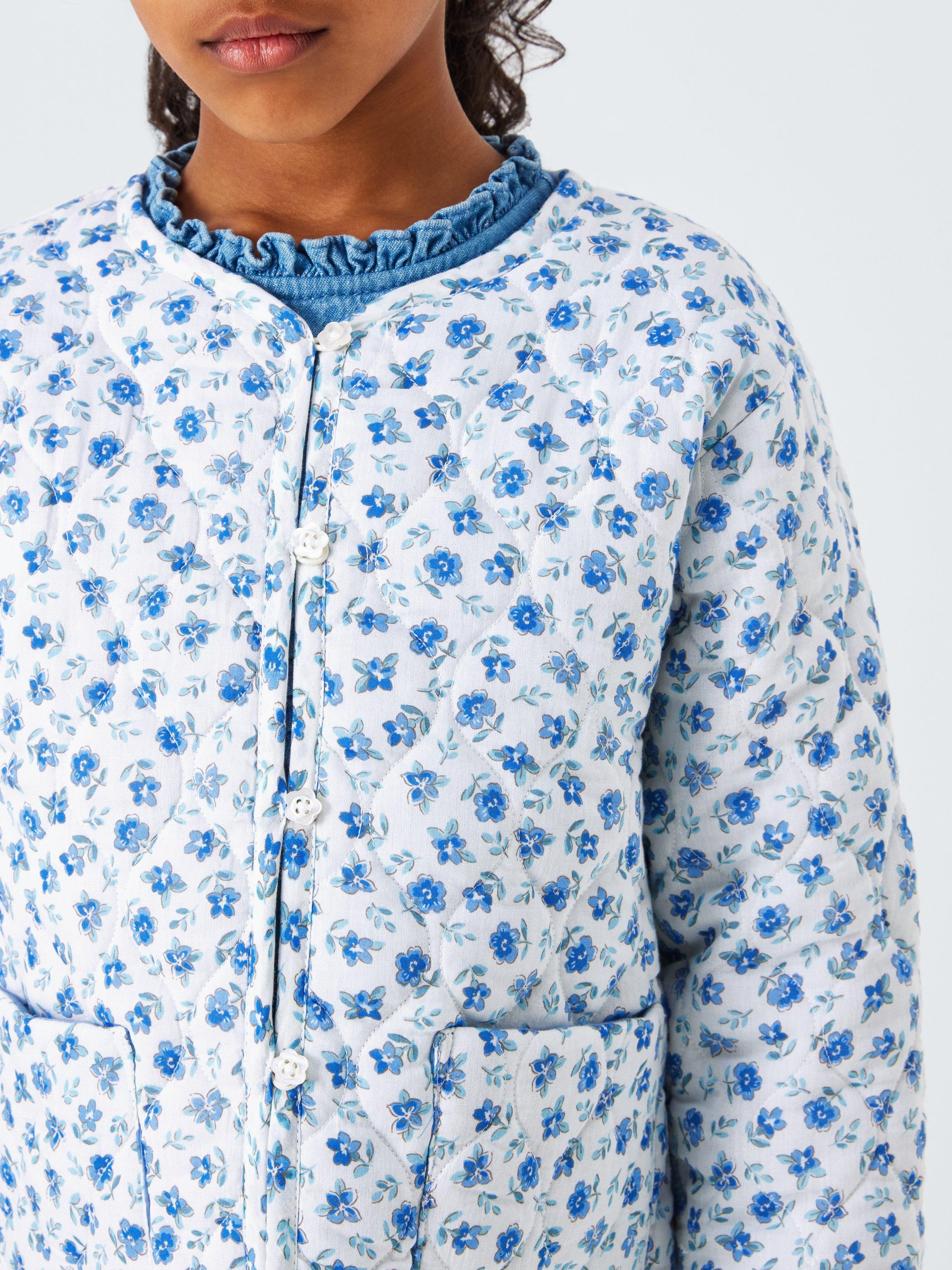 Who says jackets need to be plain and dark? Add some floral flourish to the coat peg with this pure cotton quilted option complete with patch pocket detailing.