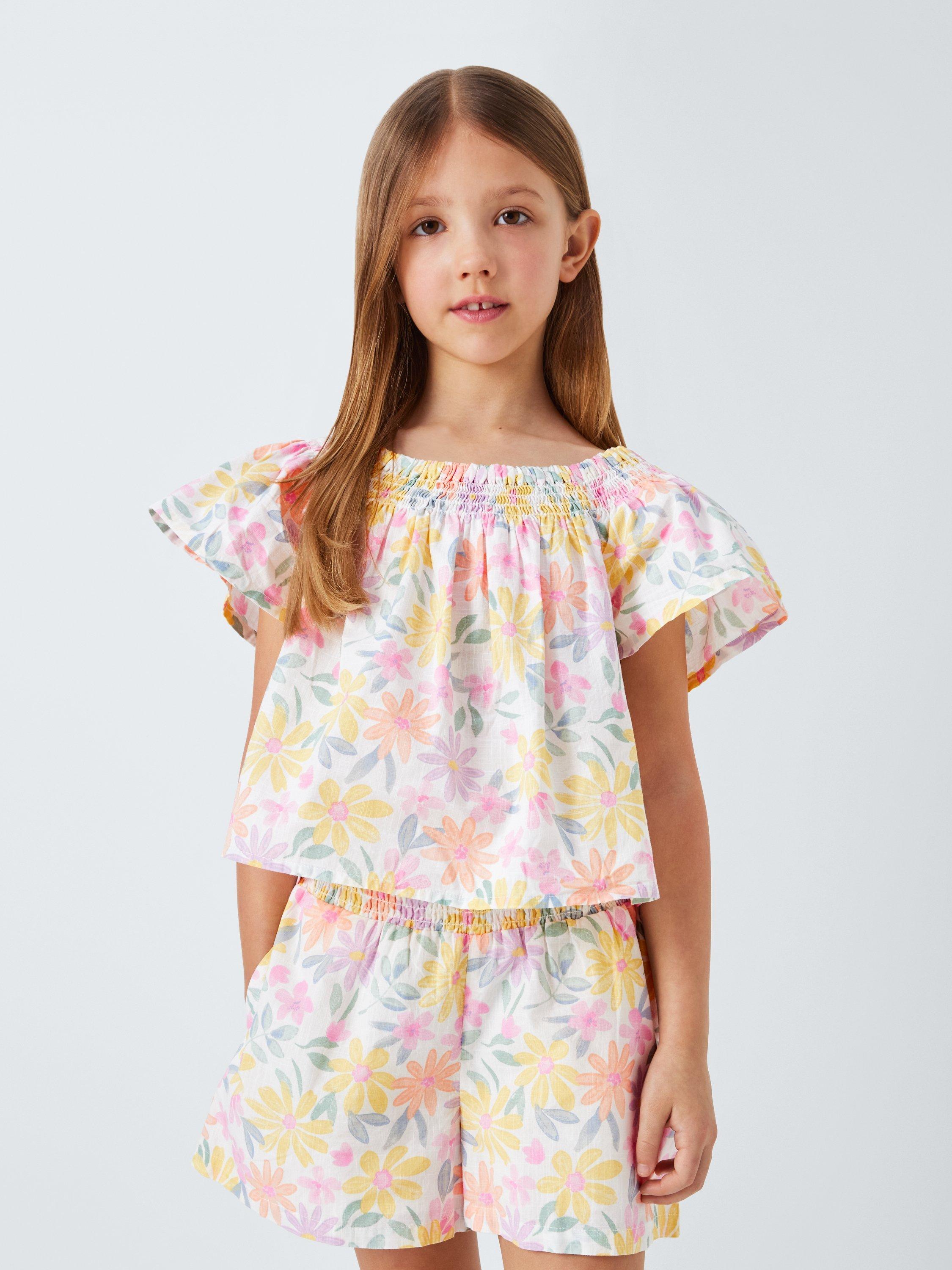 A fun, floral addition to their summer wardrobe, this pure cotton top comes in a loose-fit with fuss-free, elasticated waistband.