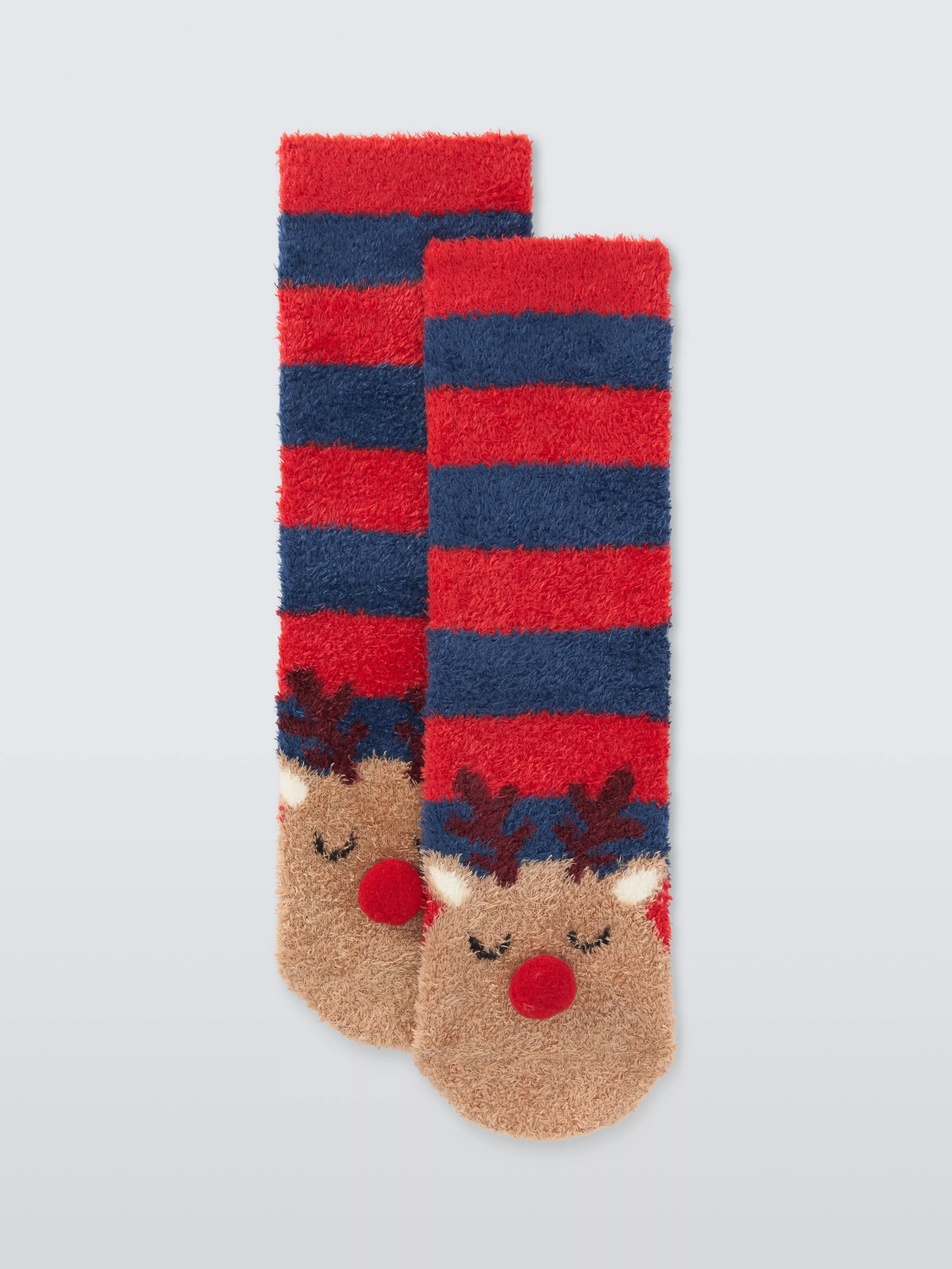 John LewisKids' Fluffy Reindeer Slipper Socks, Multi