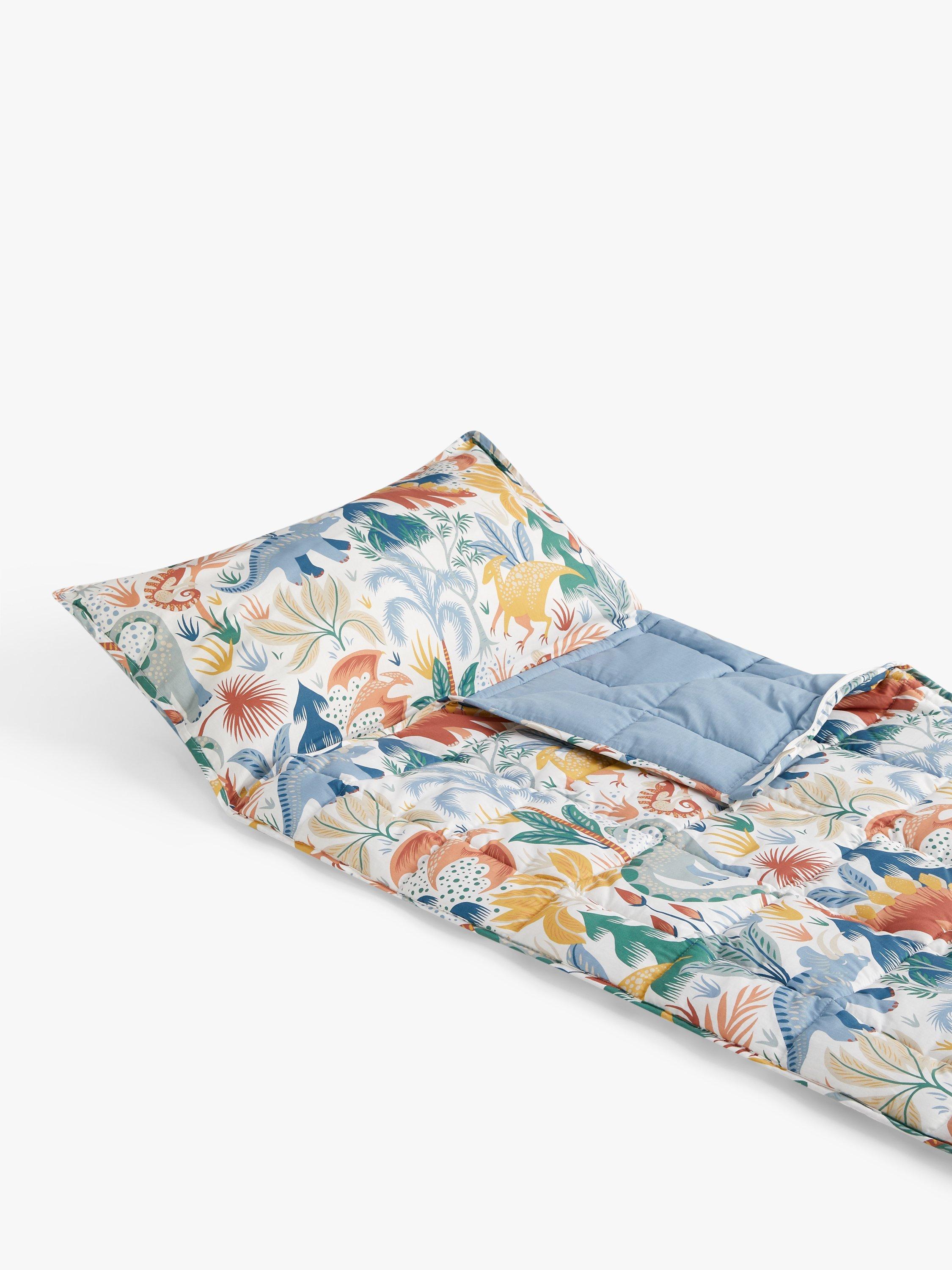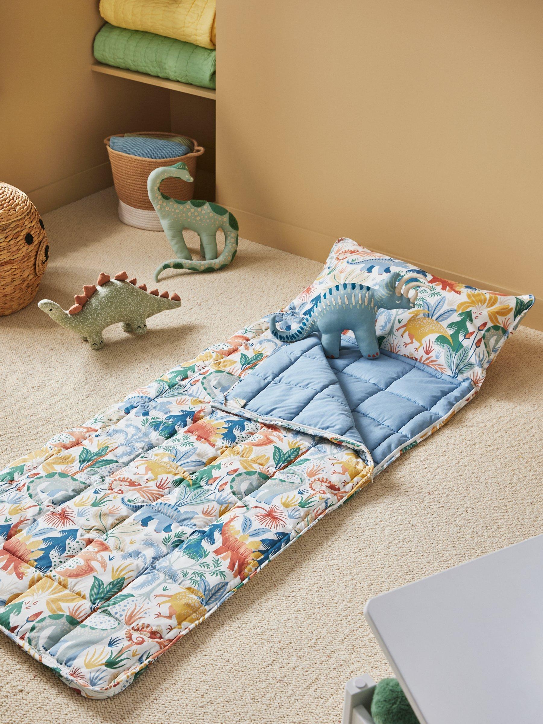 Create a fun sleepover environment for little ones with this cosy and comfy sleeping bag. Made from soft cotton so it's breathable and gentle on delicate skin, this bag features our Forest Dinosaur print and easily packs away for storage.