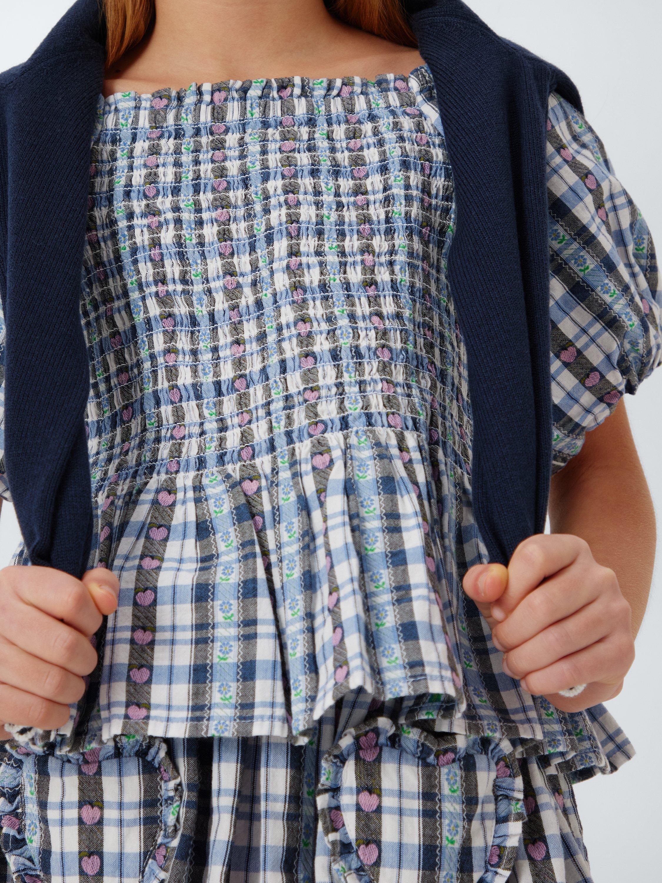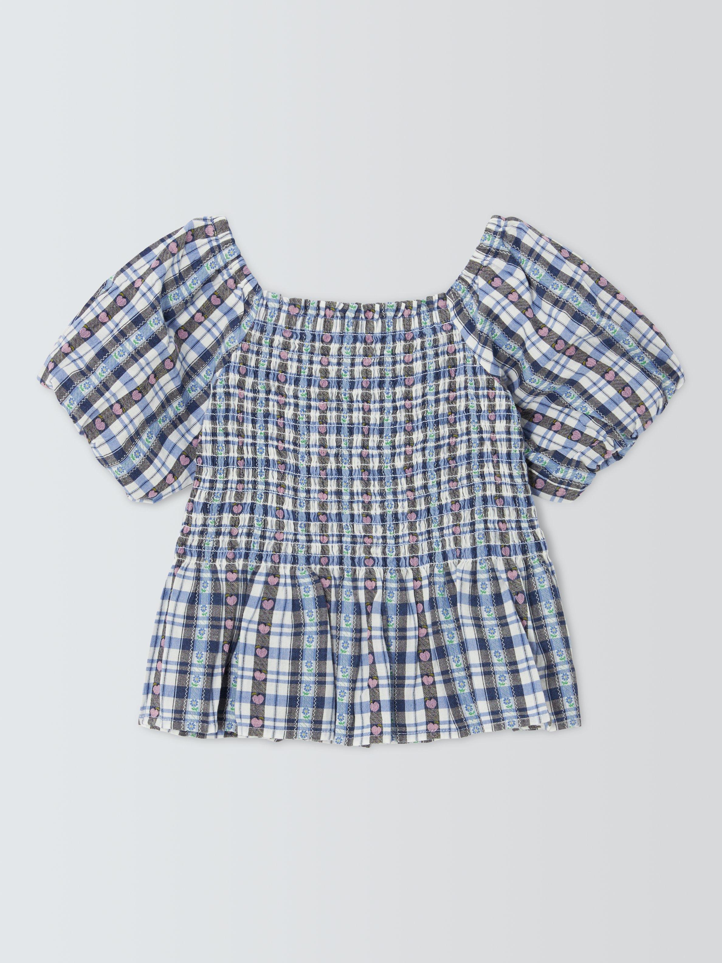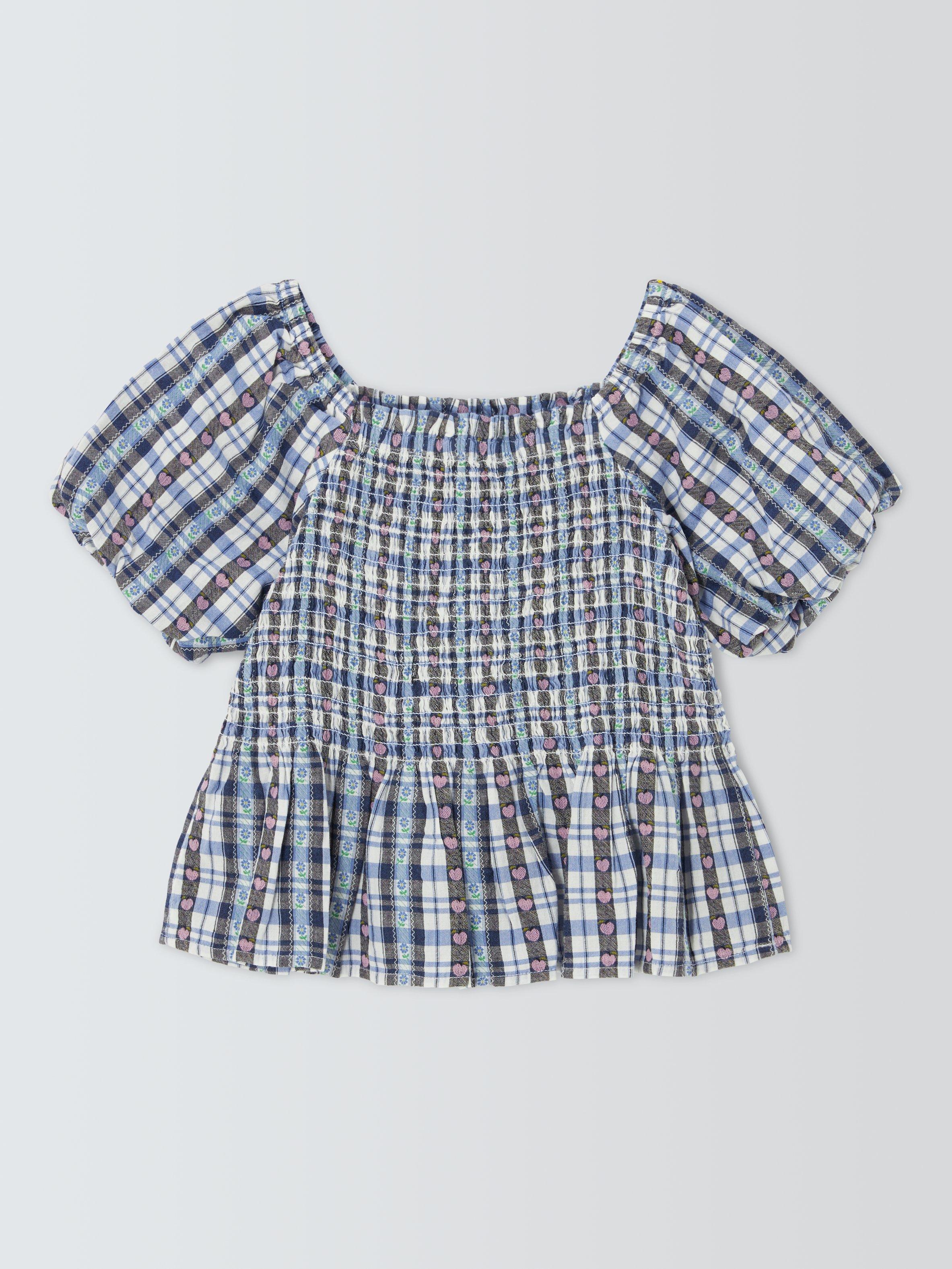 In summer-ready gingham with heart and floral detailing, this pure cotton top features fun puff sleeves and a peplum hem.