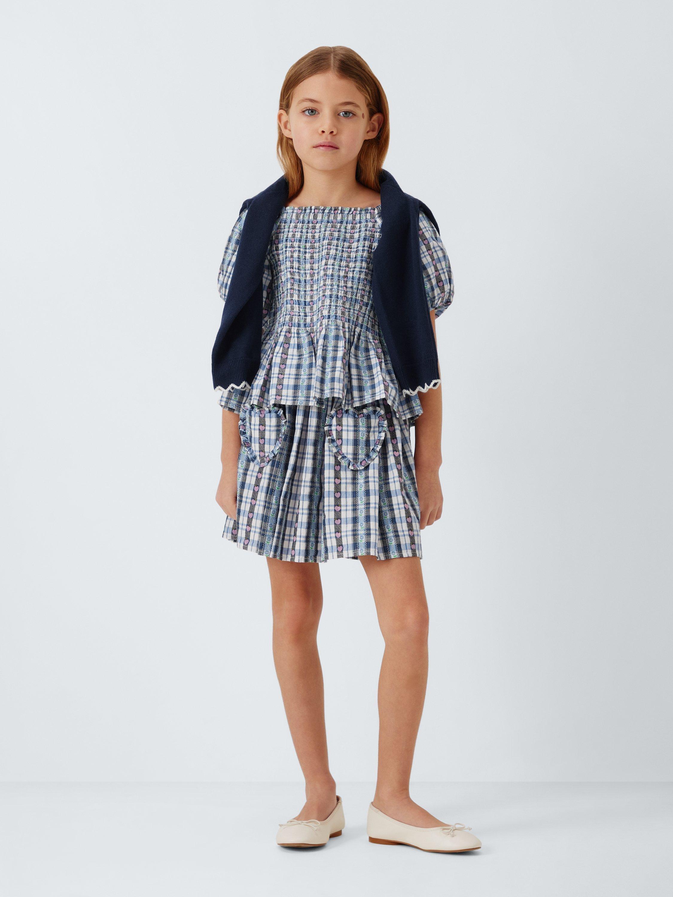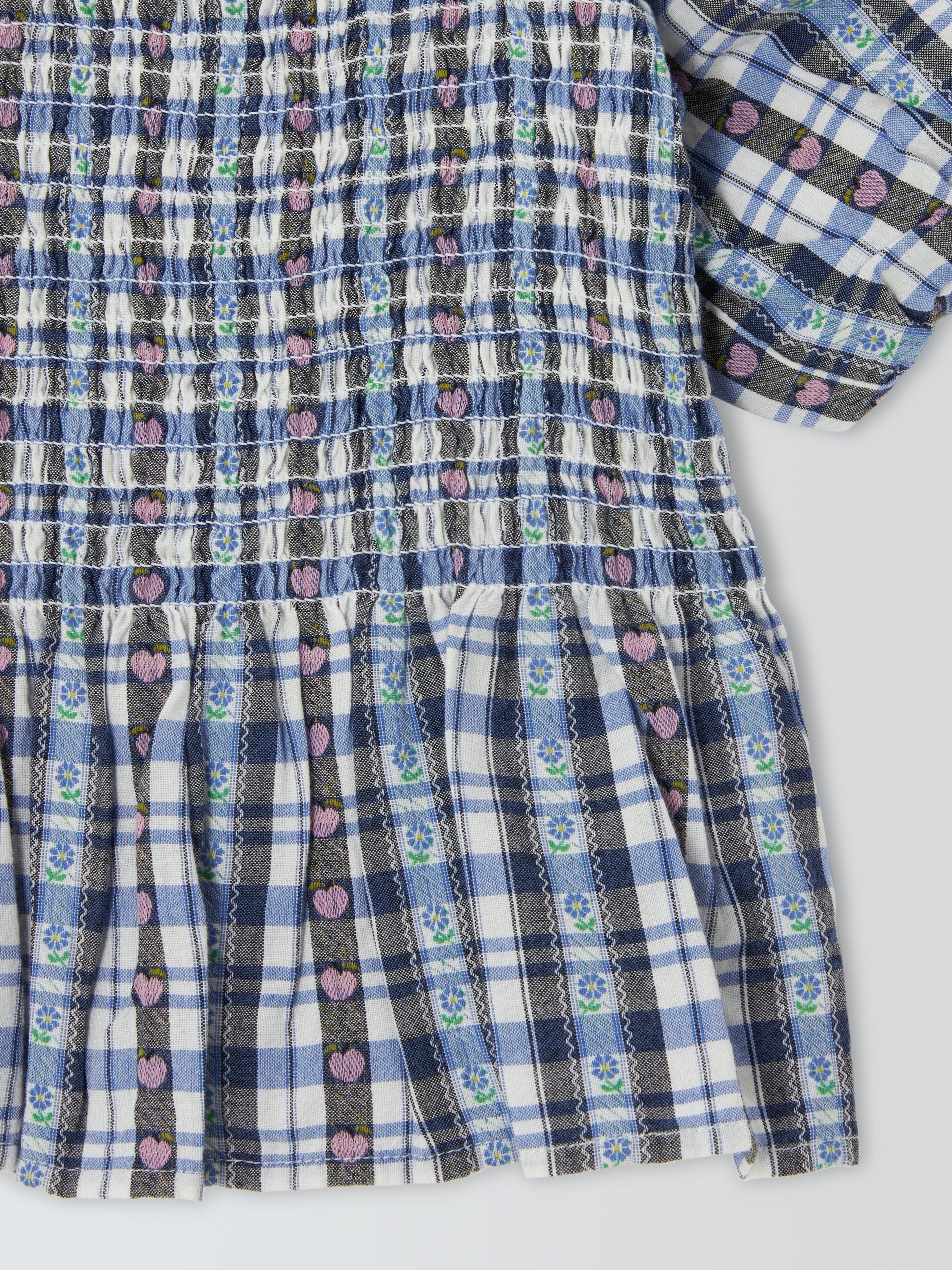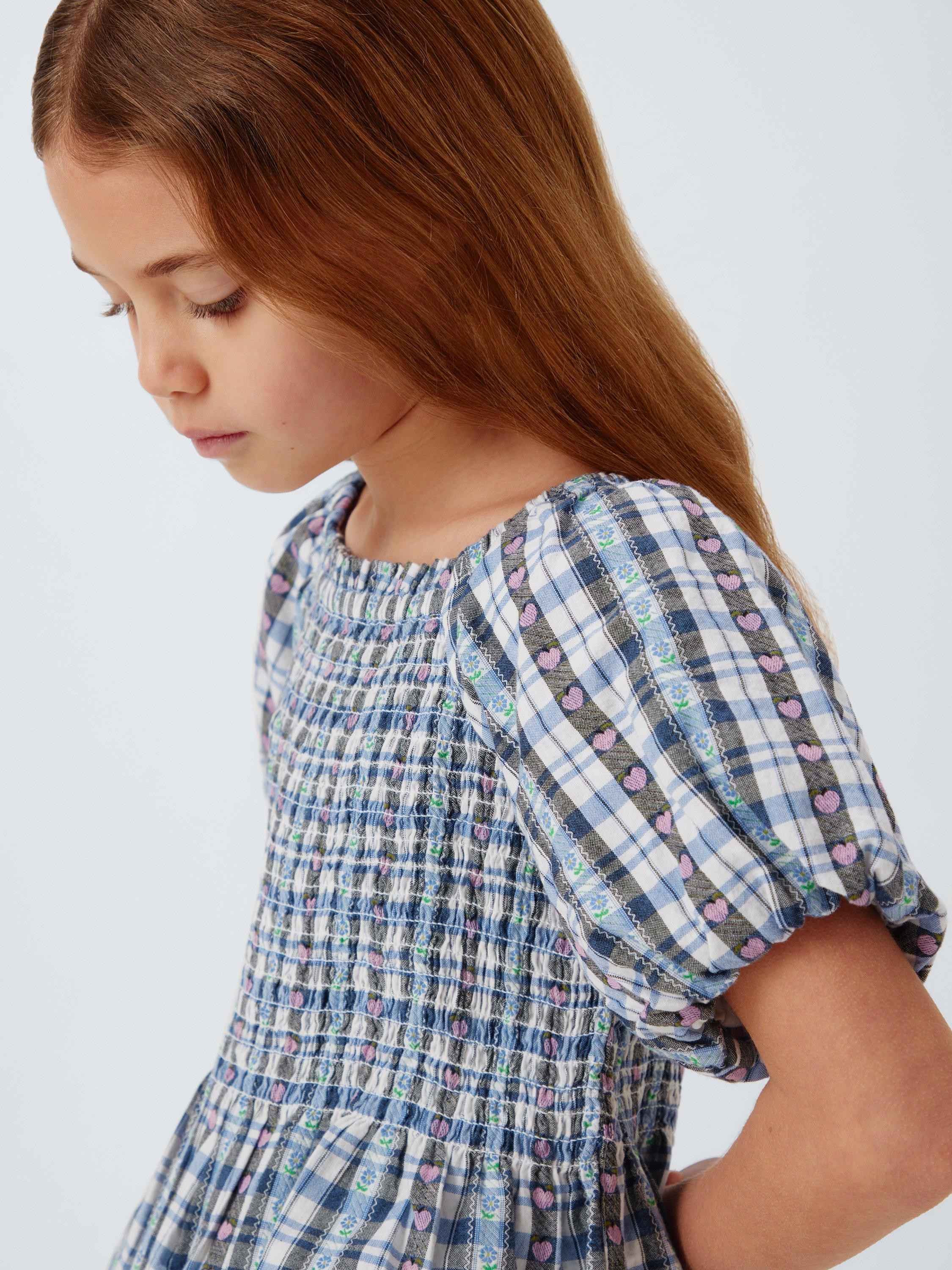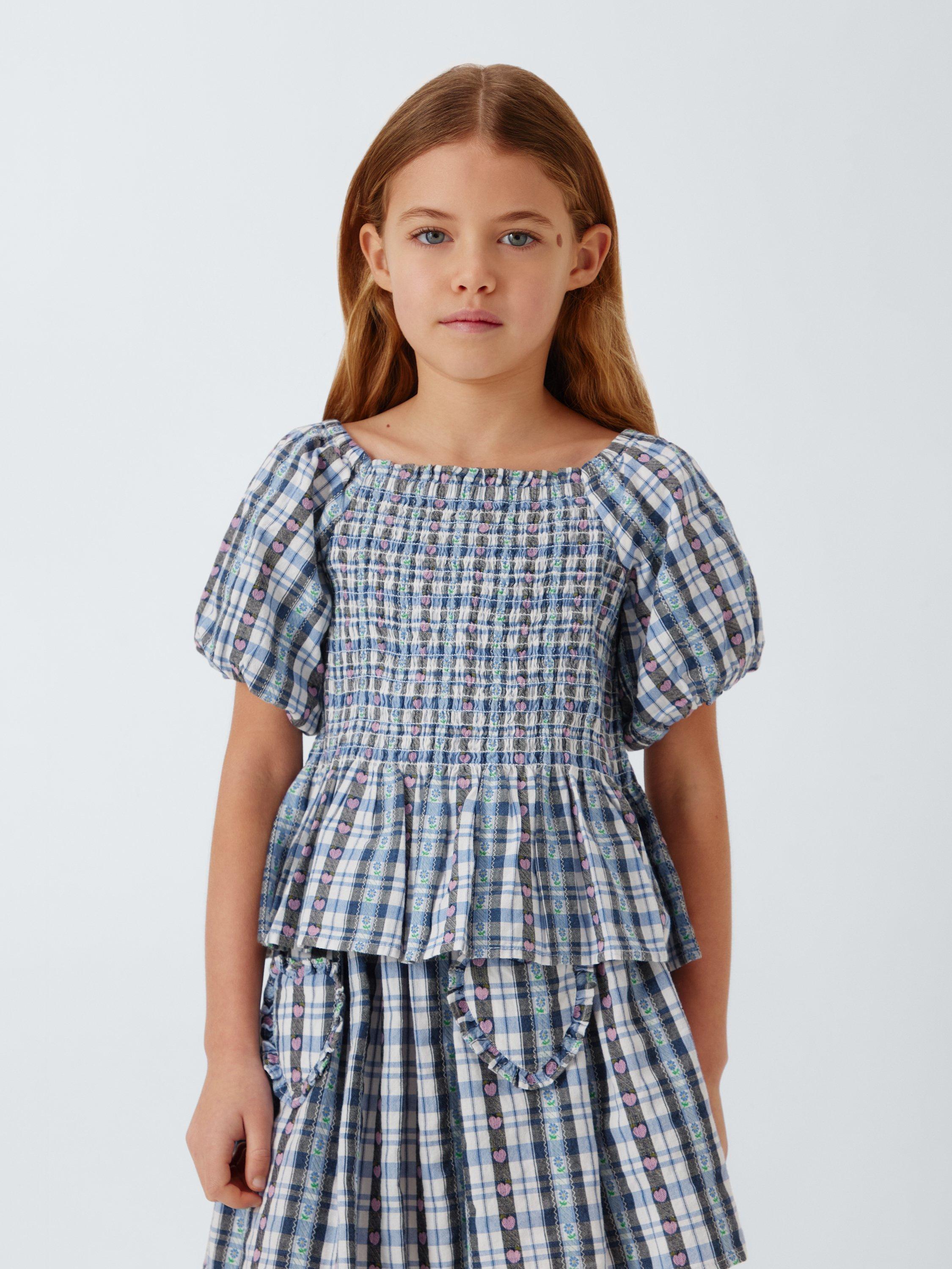 In summer-ready gingham with heart and floral detailing, this pure cotton top features fun puff sleeves and a peplum hem.