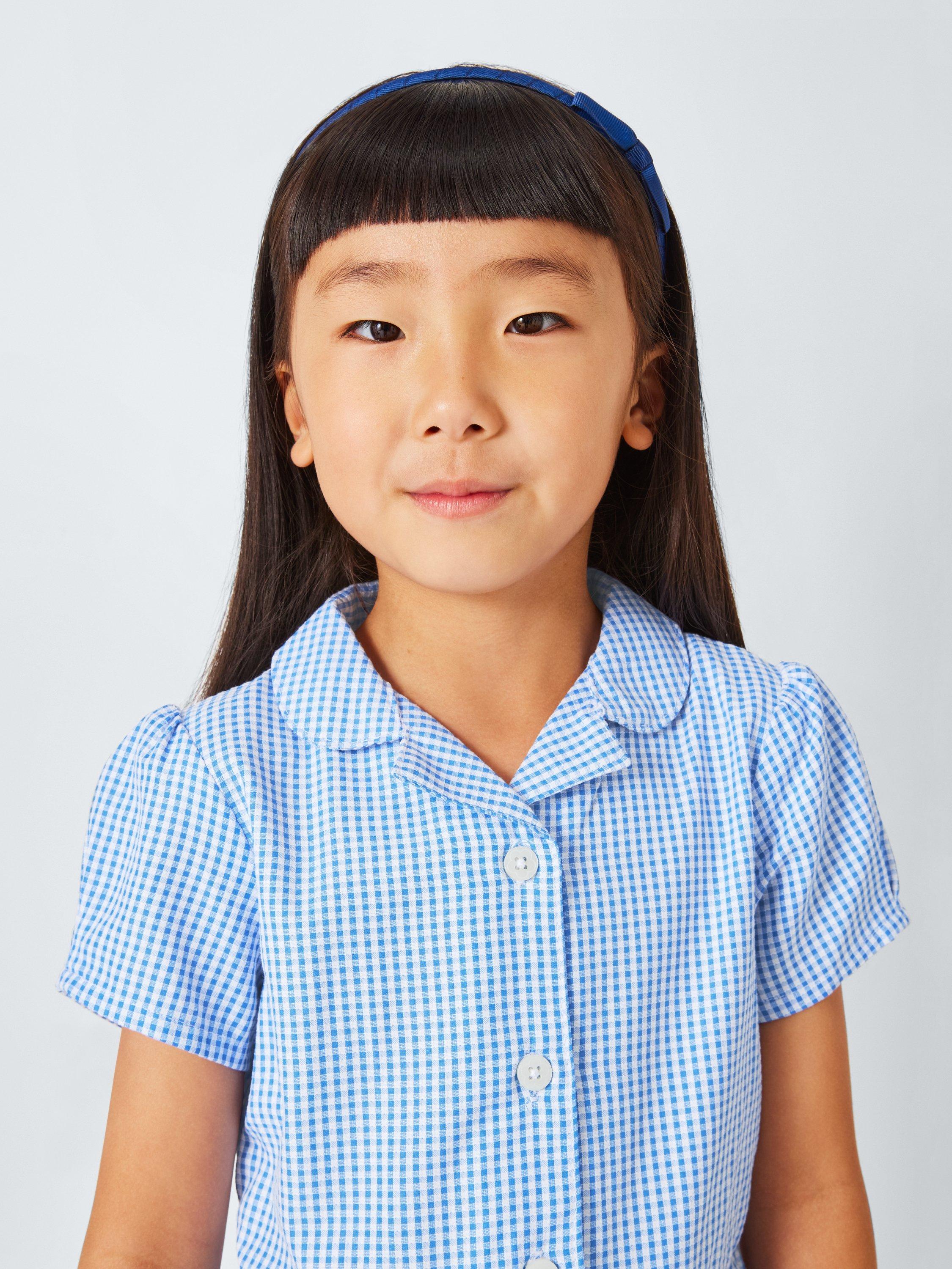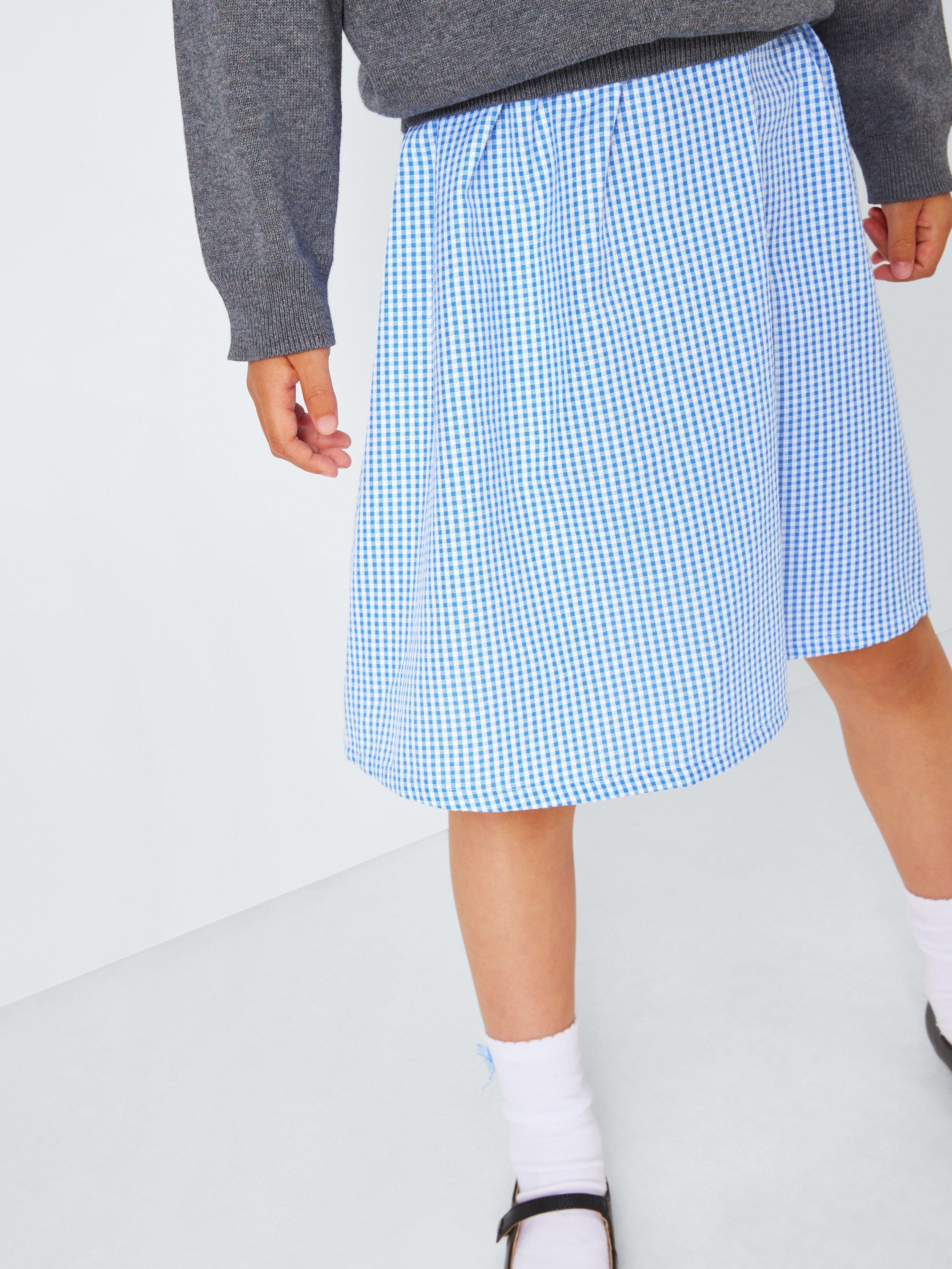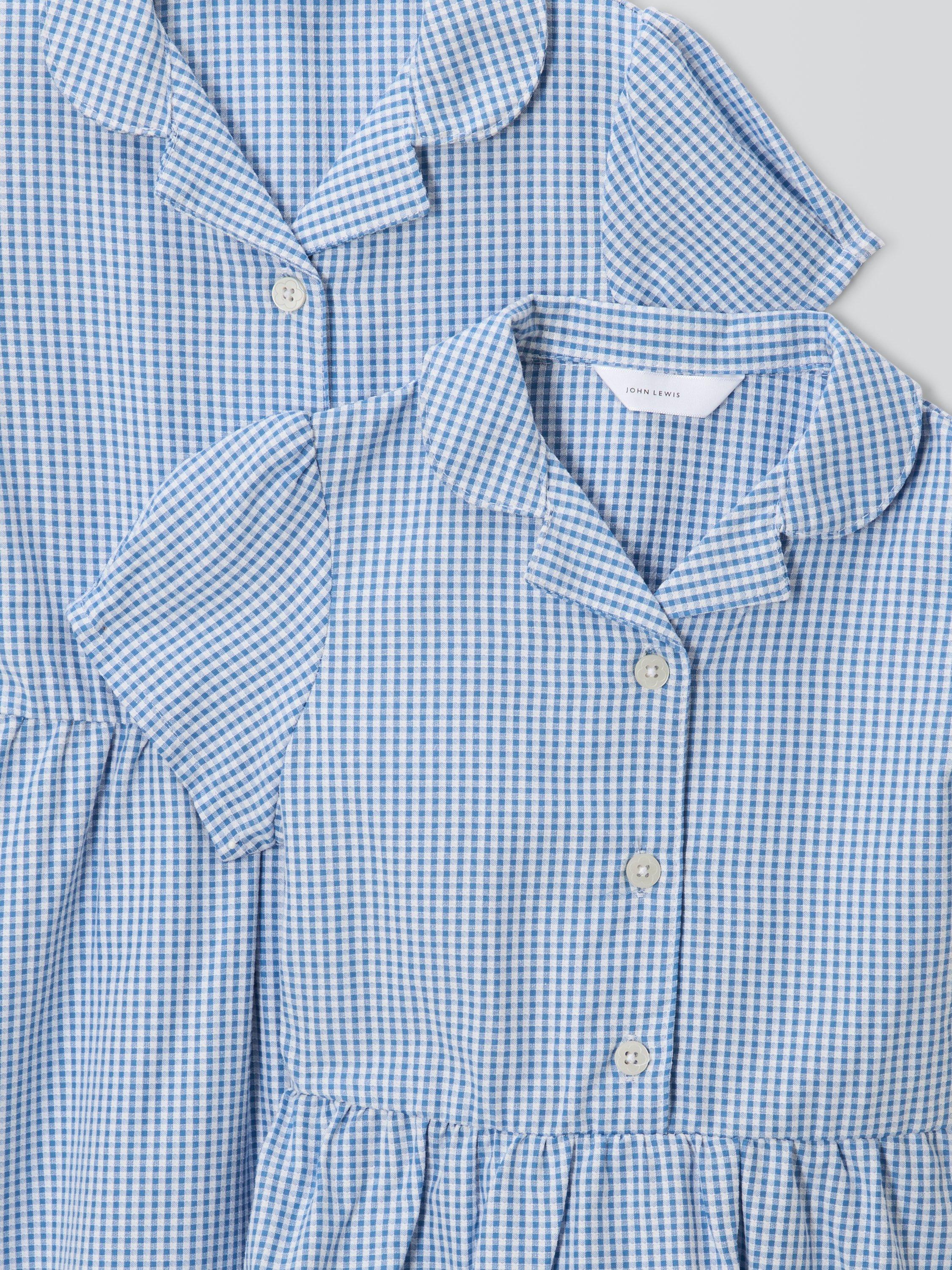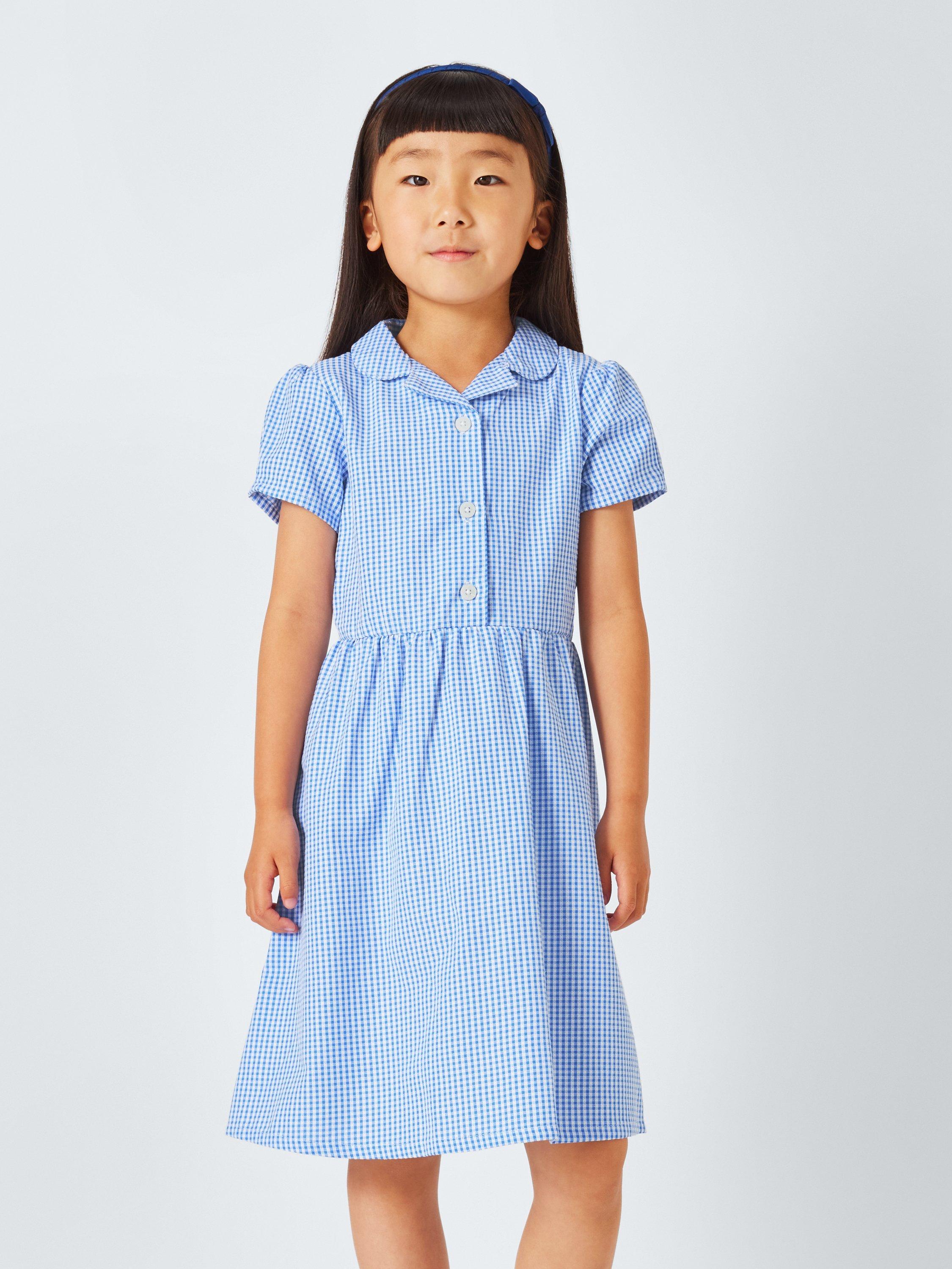 Our comfy and breathable gingham school dress features a Peter Pan collar, button fastening at the top half of the dress and a pintuck detail around the waist. Plus, the cotton blend means easy ironing.