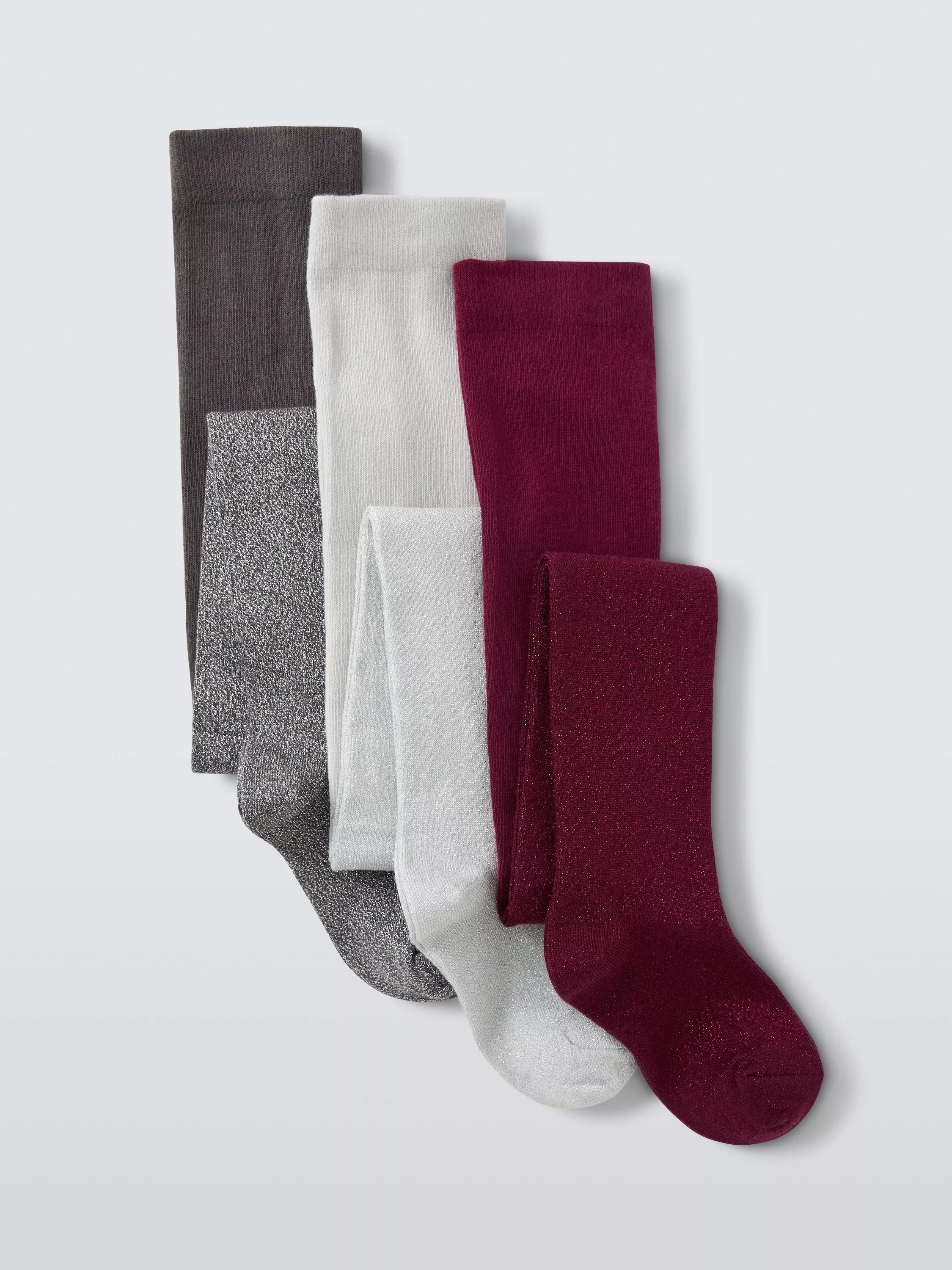 A pack of three knitted cotton blend tights with a soft glitter shimmer.