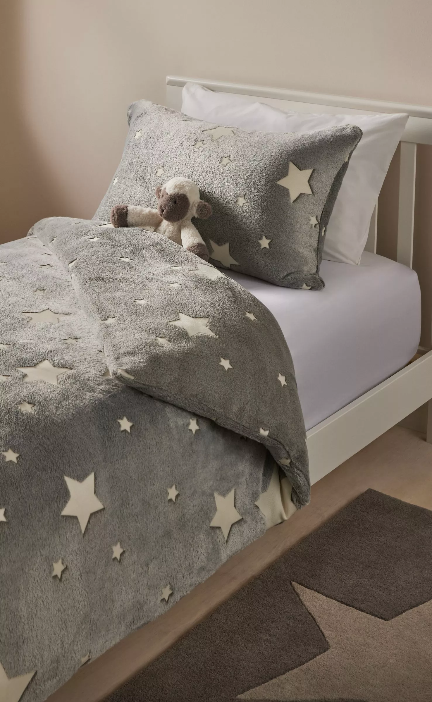 John LewisKids' Glow in the Dark Star Print Fleece Duvet Cover & Pillowcase Set, Grey/White, Double