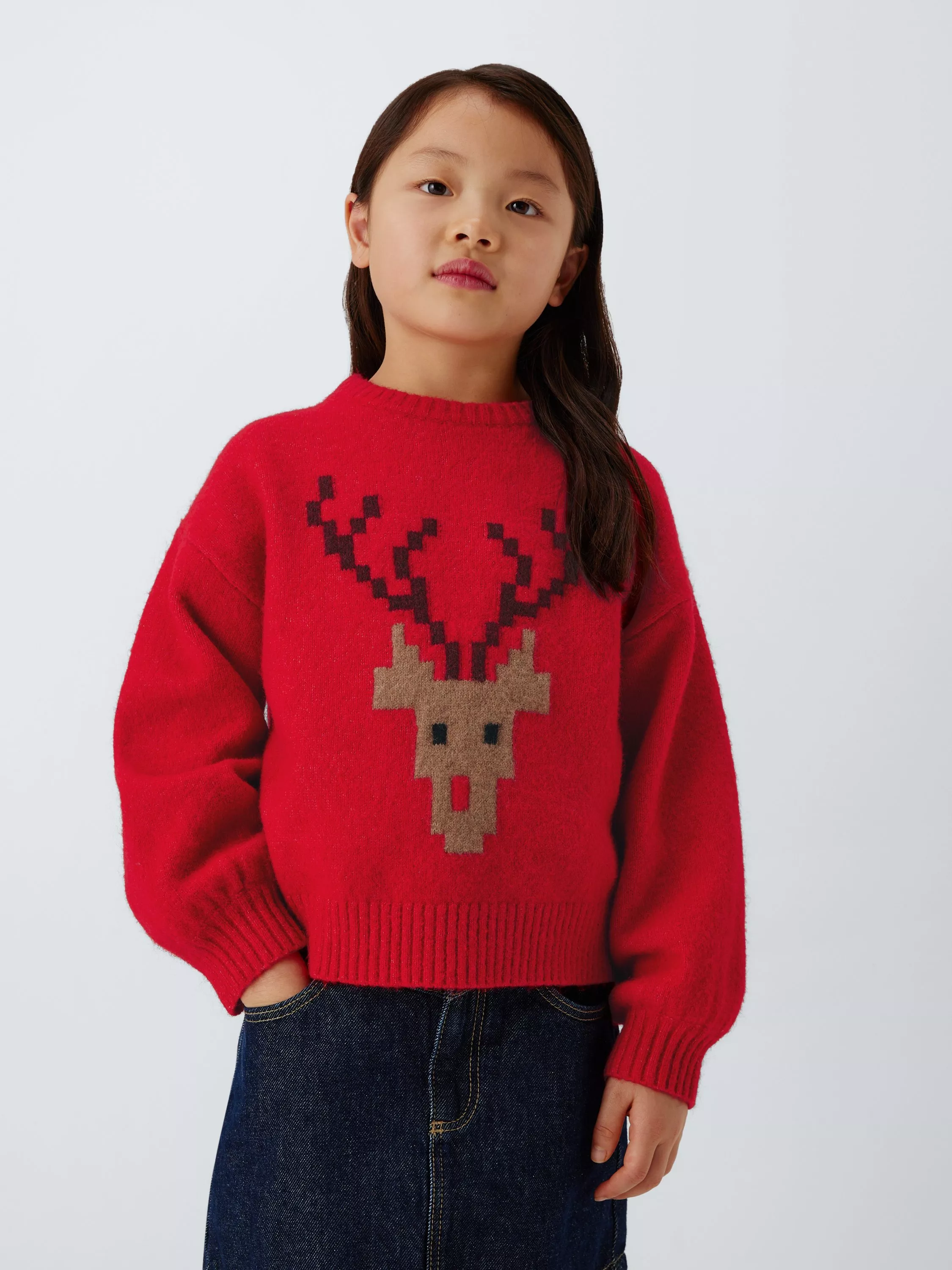 John LewisKids' Graphic Reindeer Jumper, Red, Multi