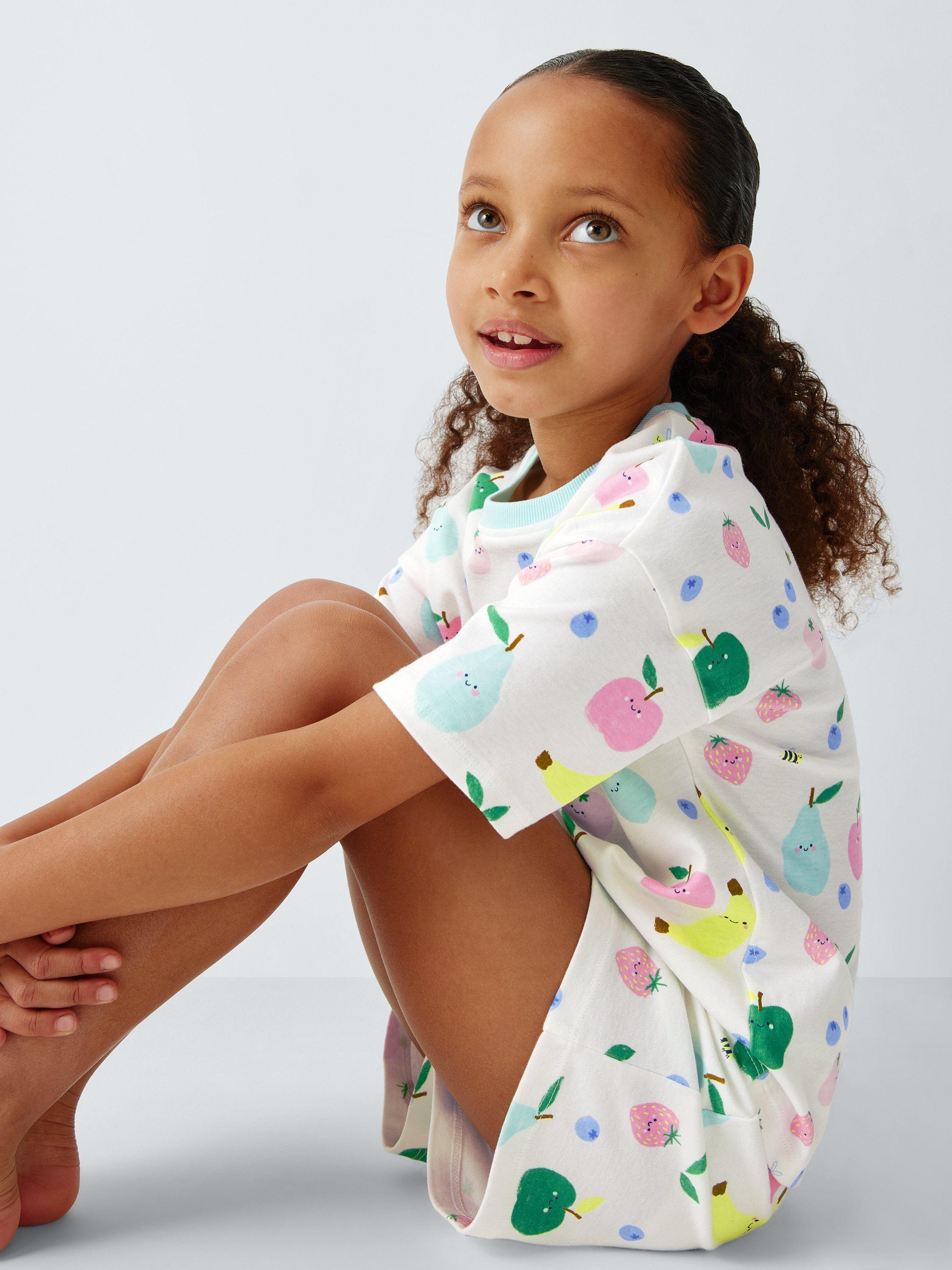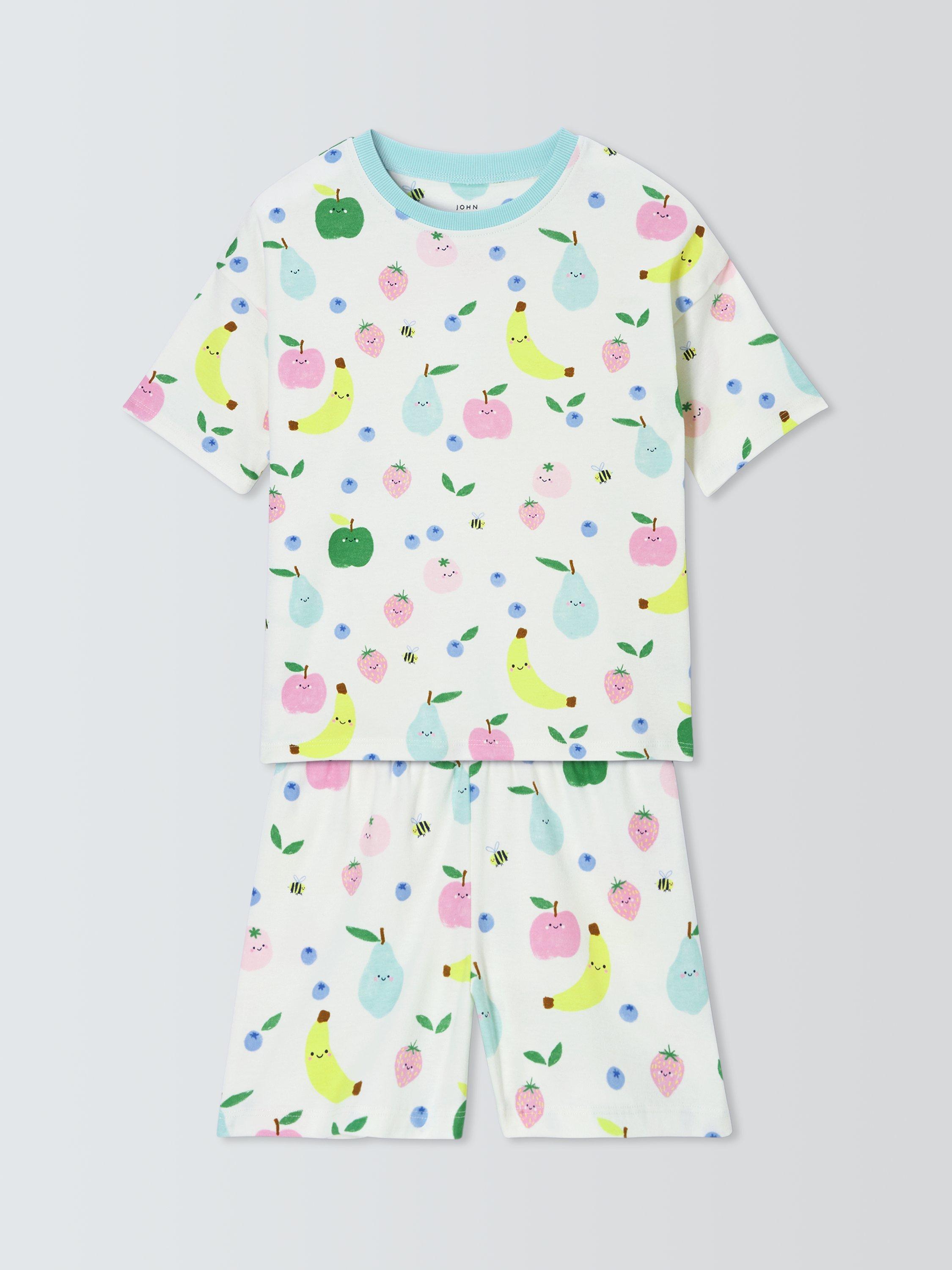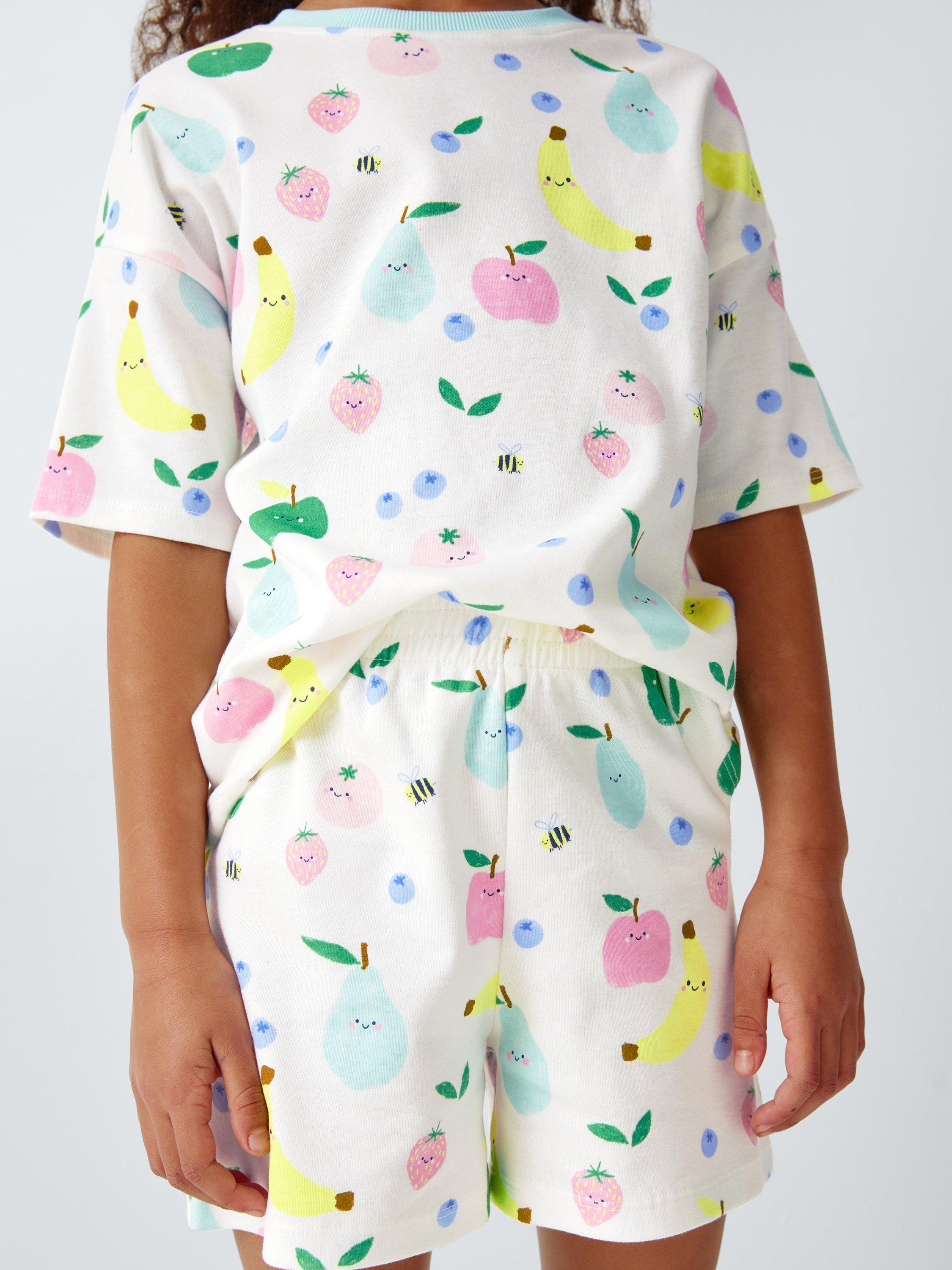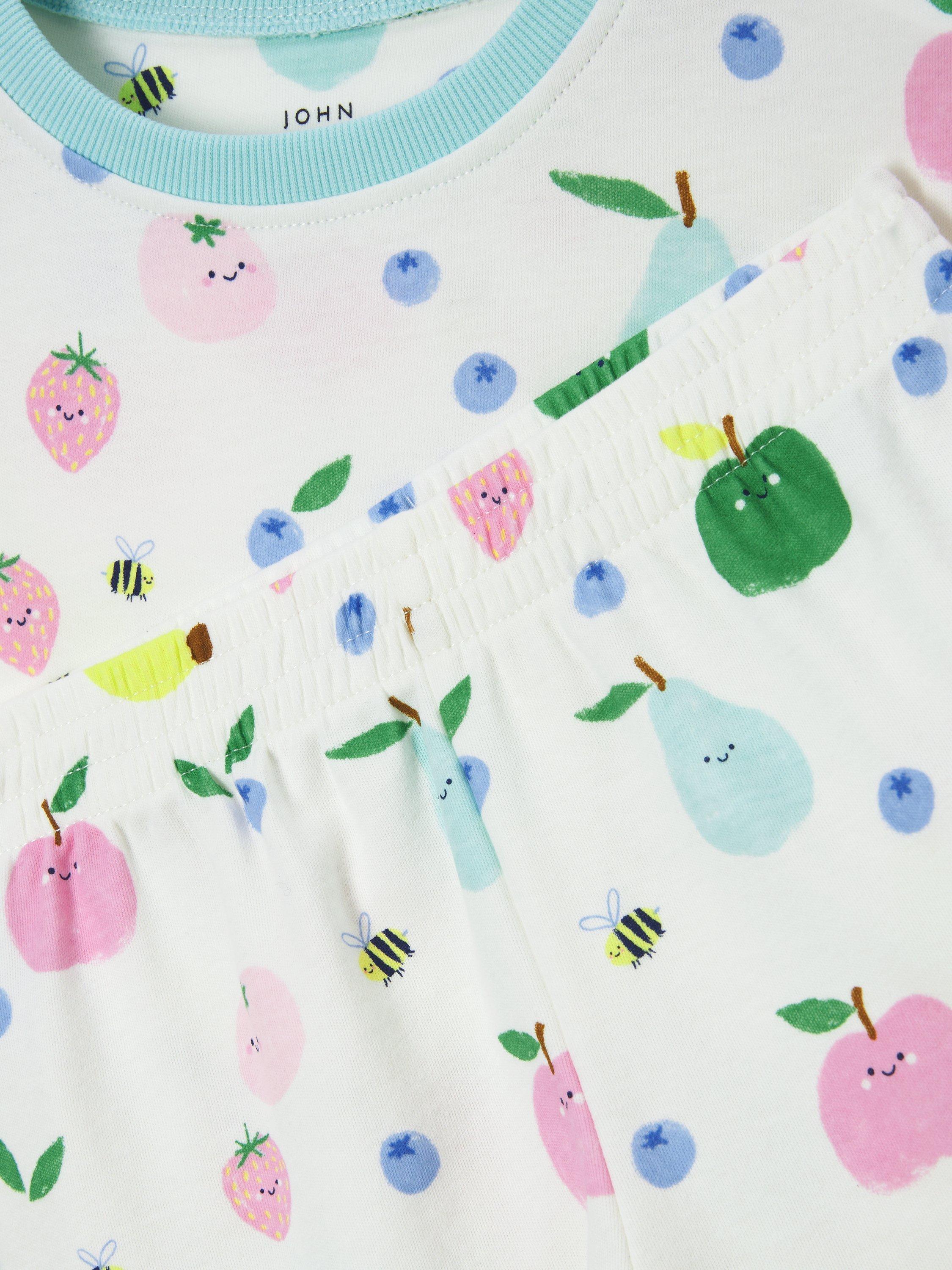 Made from 100% cotton for the softest touch, these short pyjamas will keep them comfy through the warmer months. Features an all-over print of happy fruits, with a ribbed neckline and elasticated waistband on the shorts for a snug fit.