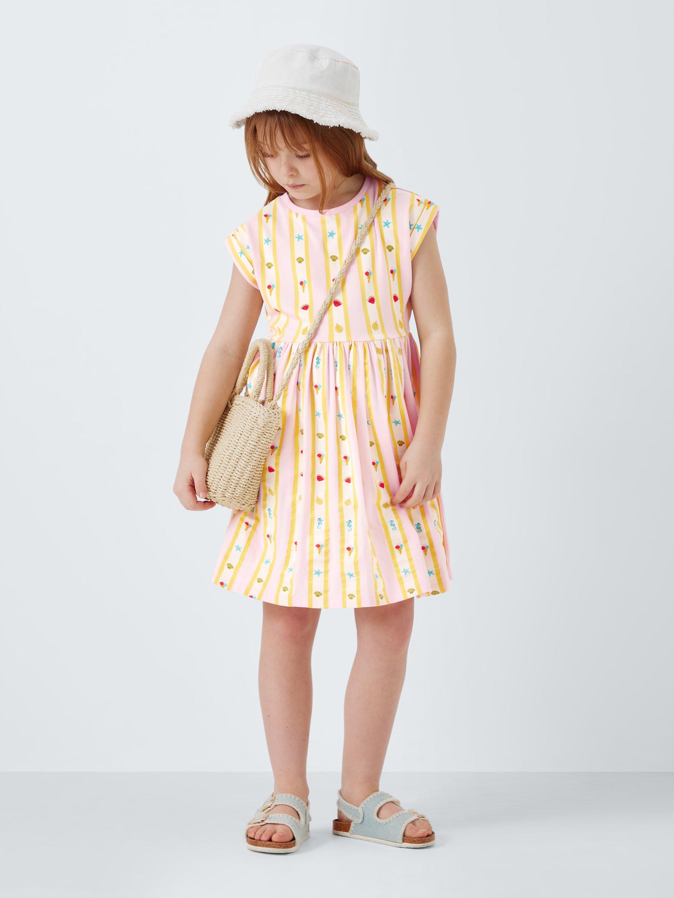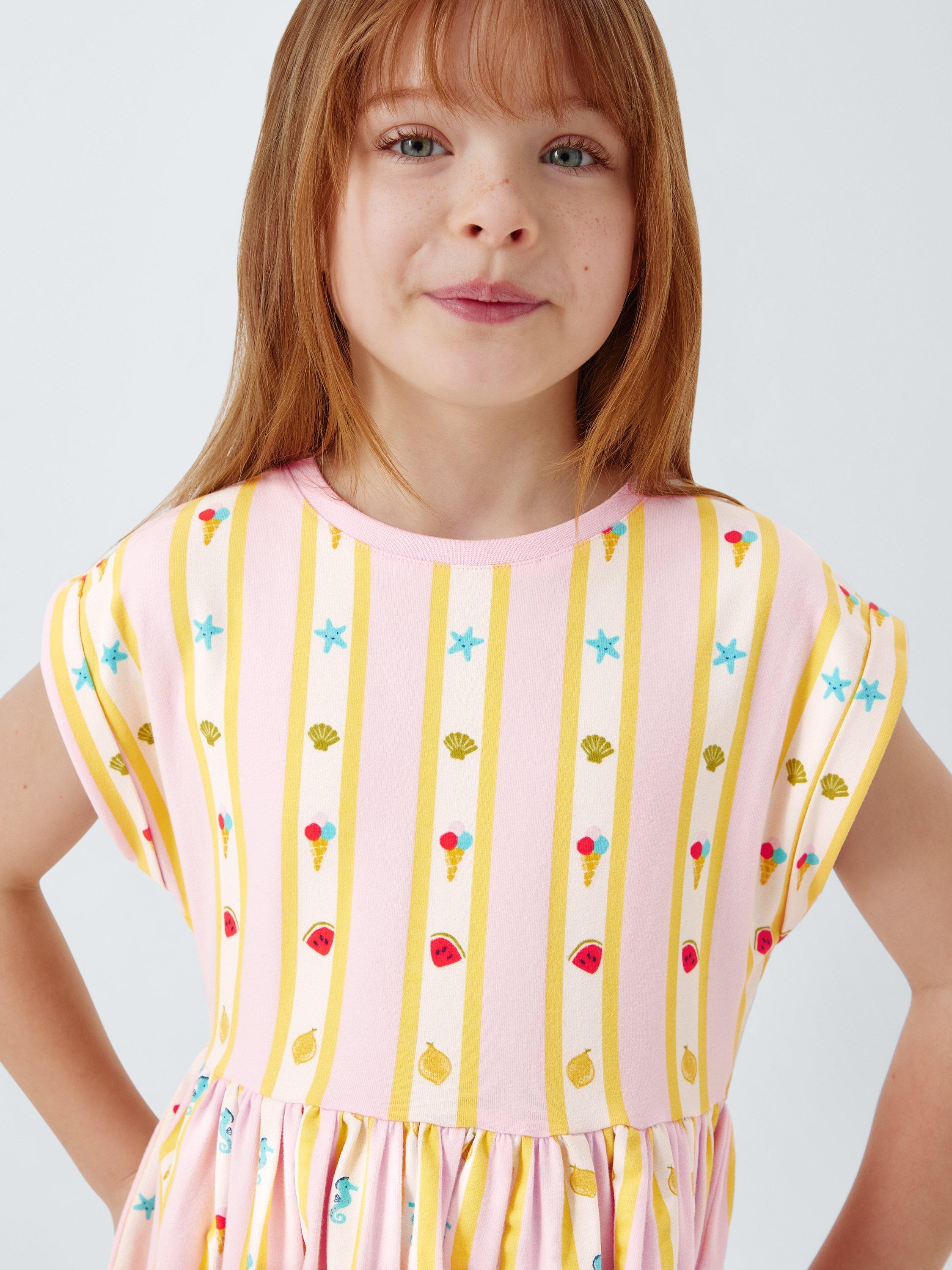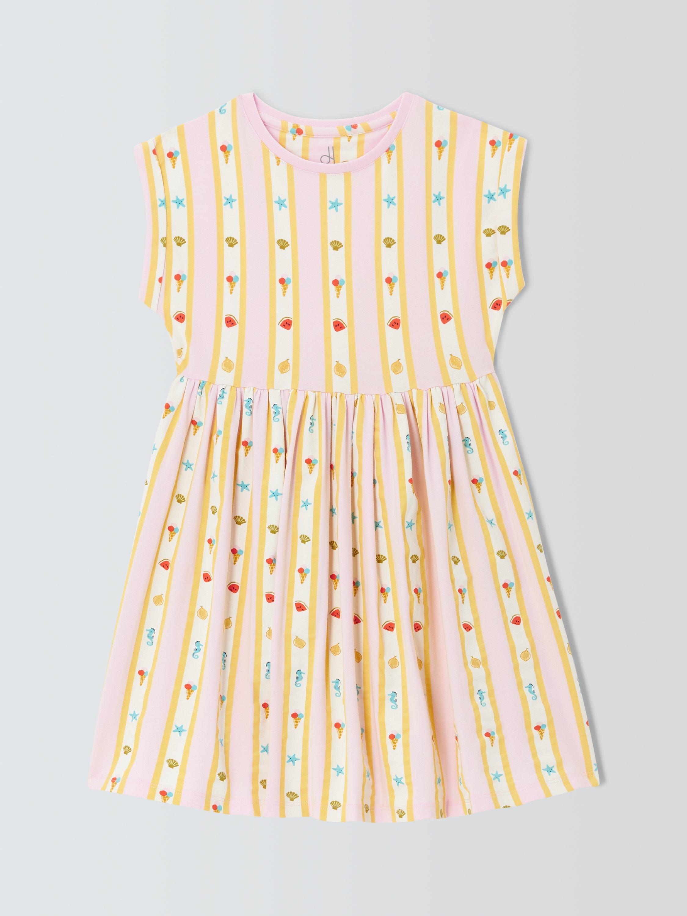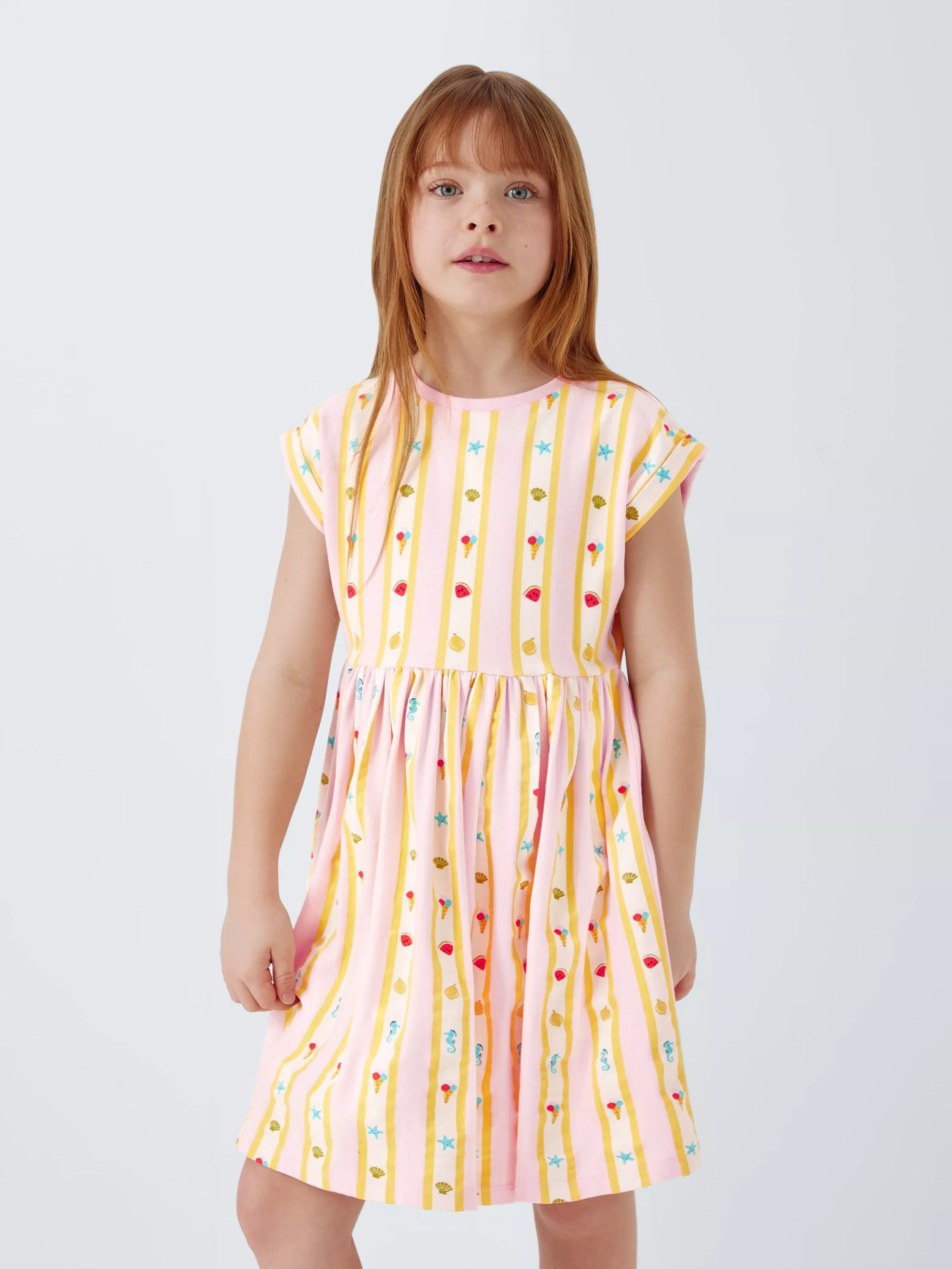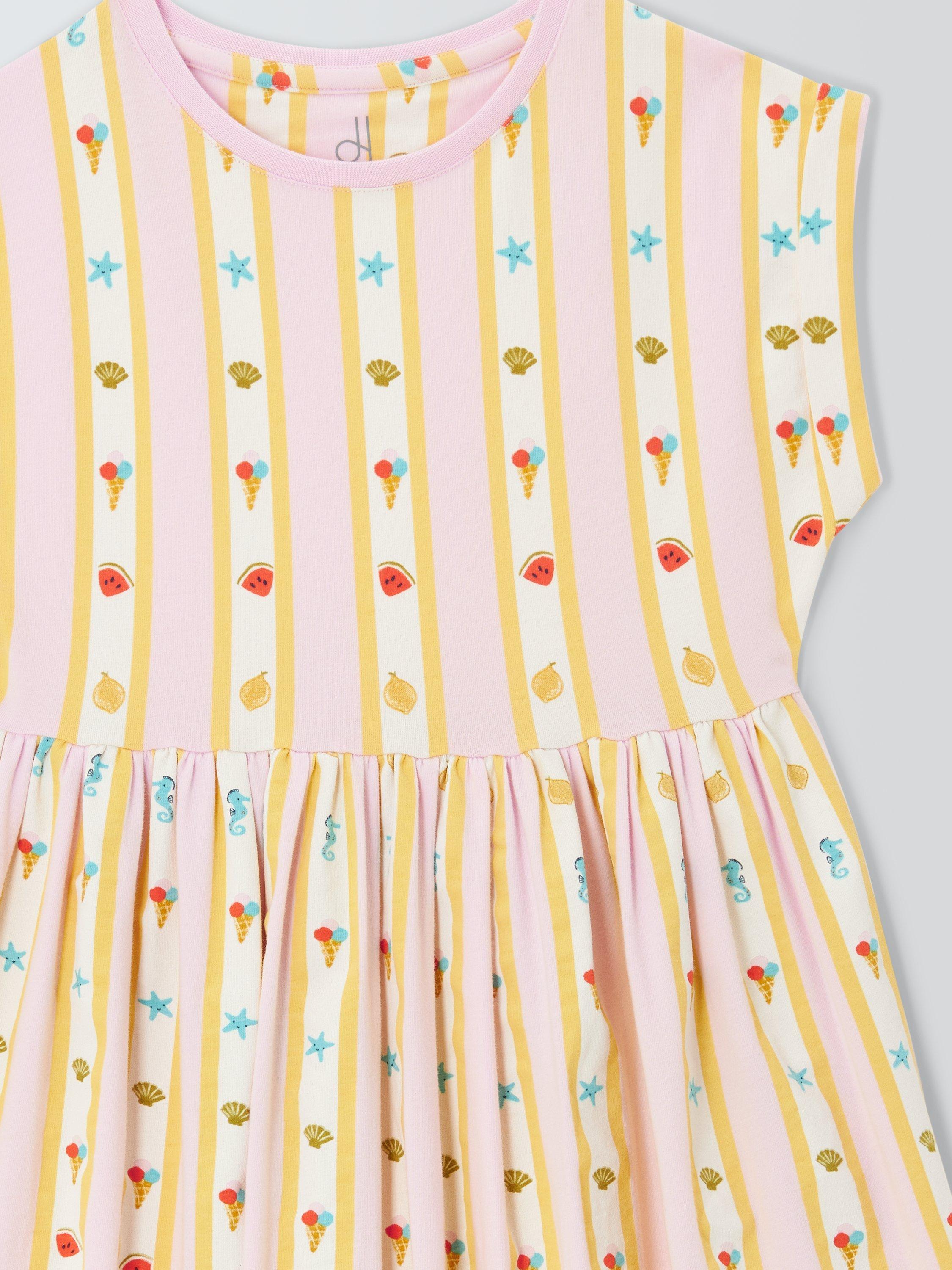 With a Summer-themed ice cream stripe design and cooling cotton fabric, this jersey dress is ready for fun in the sun.