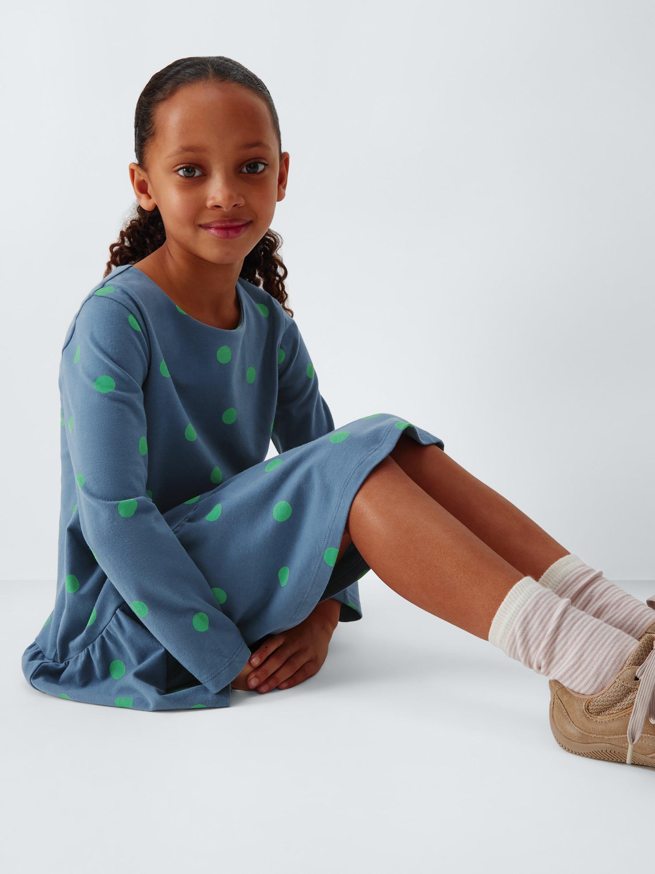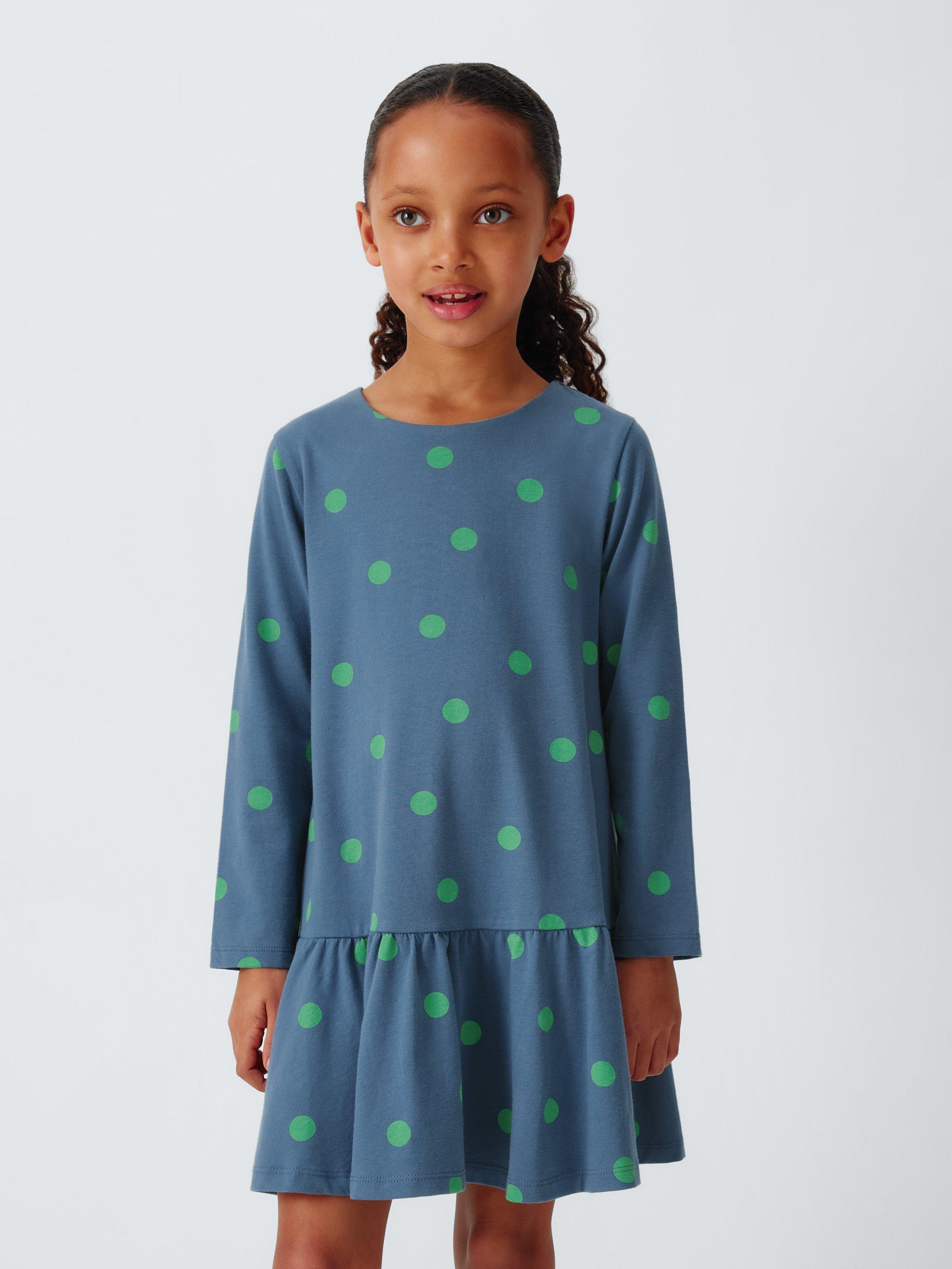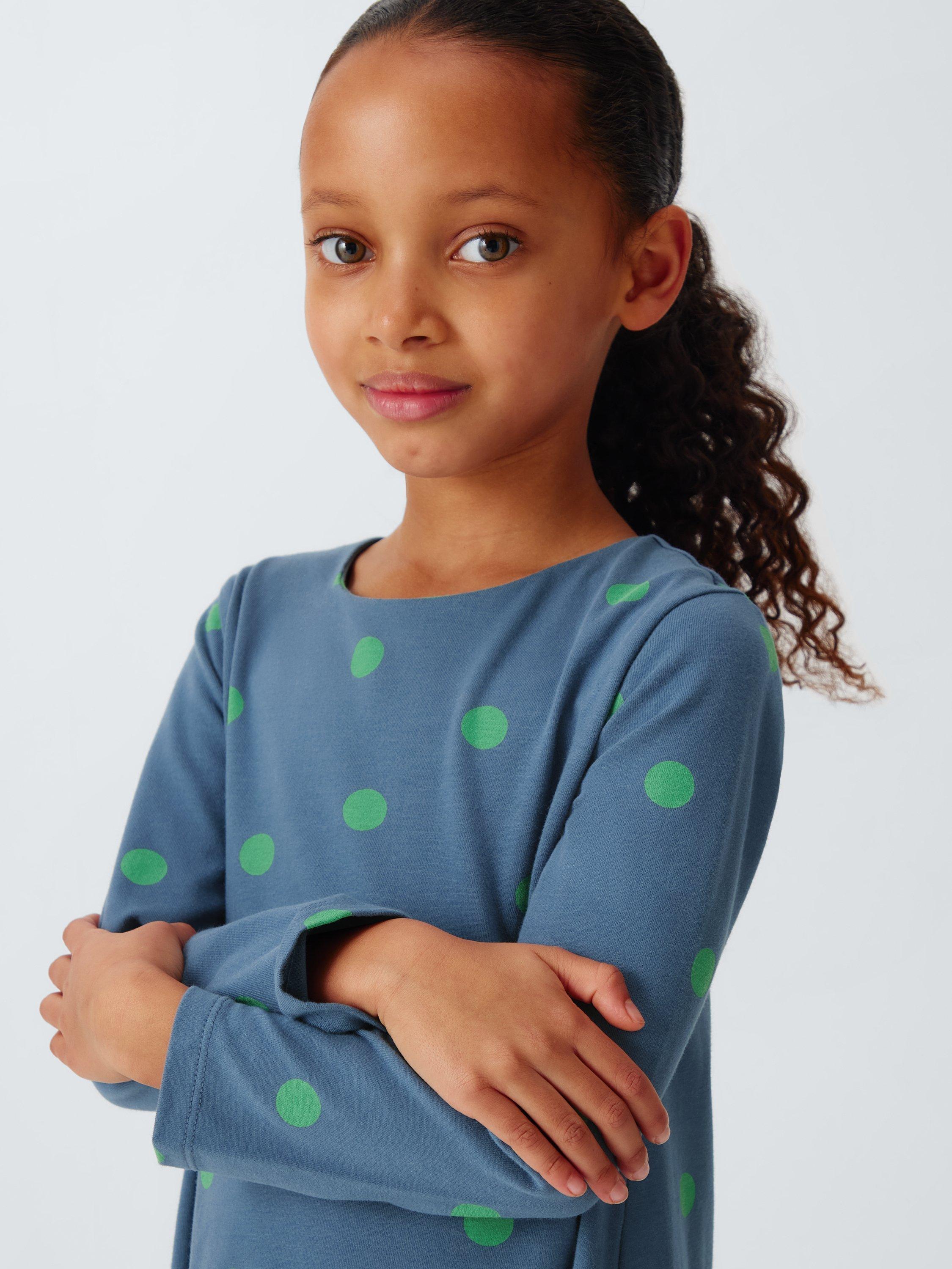 A comfy, cotton-rich jersey dress with a colourful all-over polka dot print.