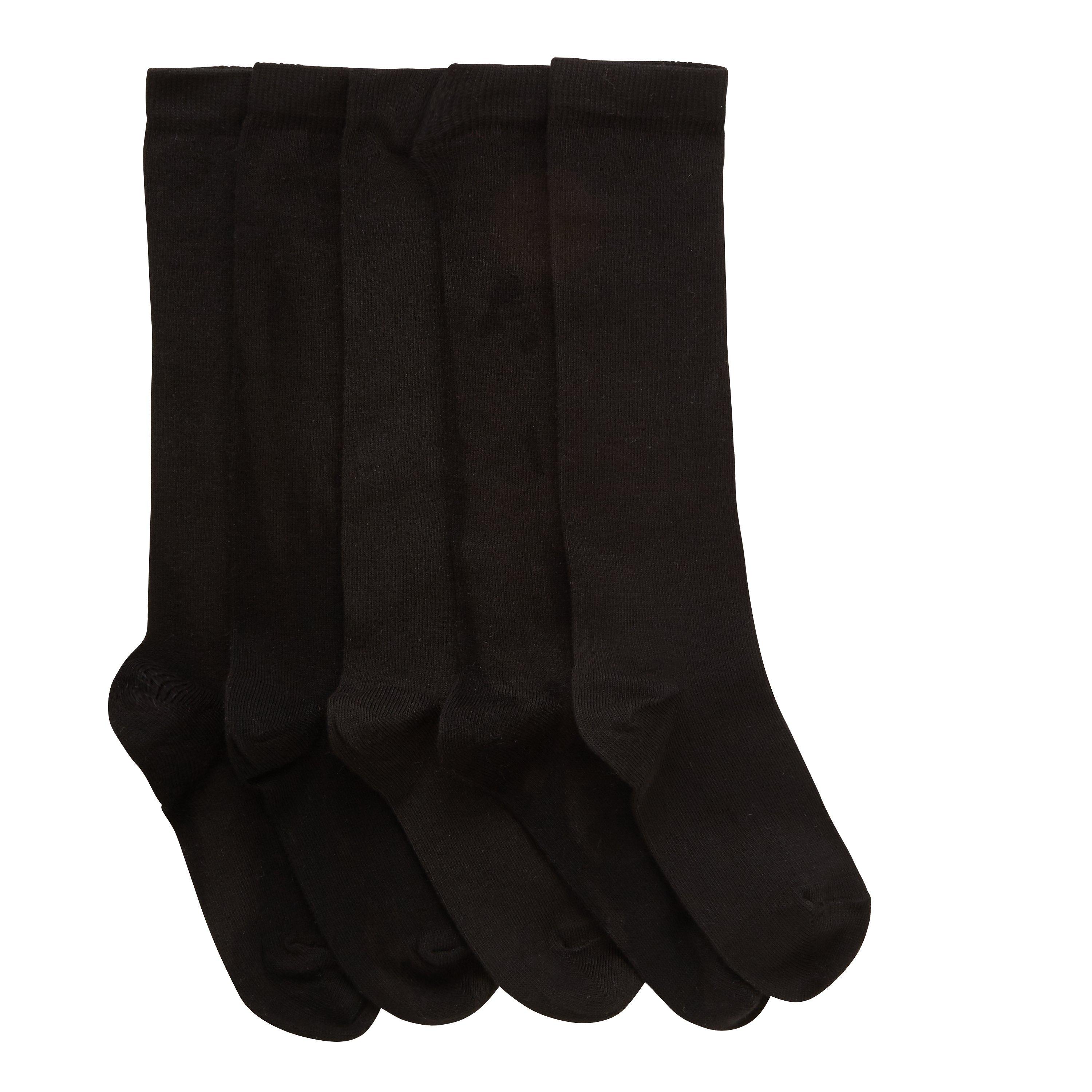 Crafted from a soft stretch cotton, these elasticated socks are knee-high and come in a handy pack of five.