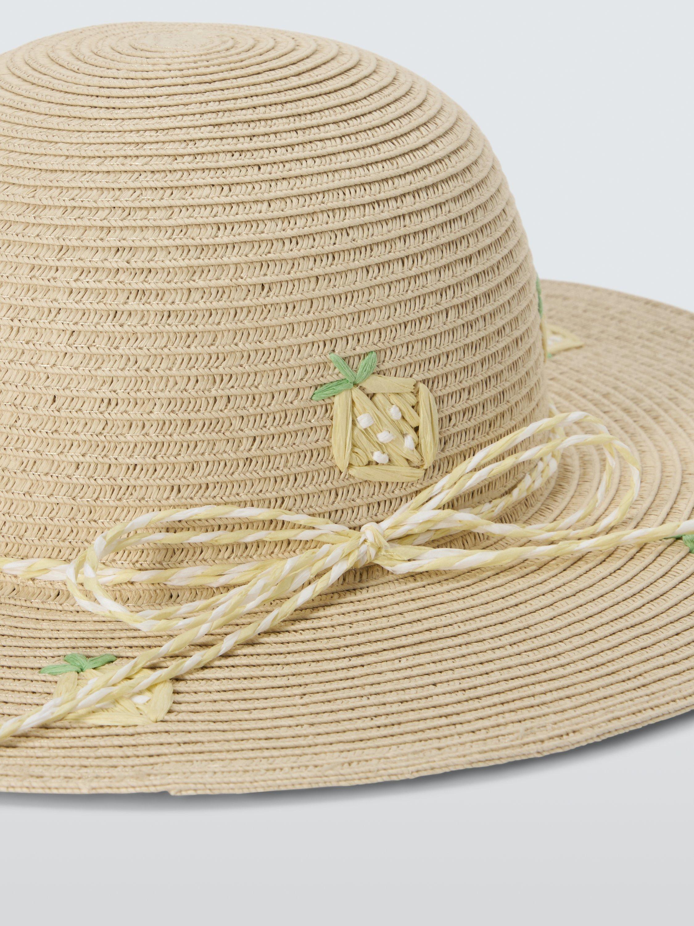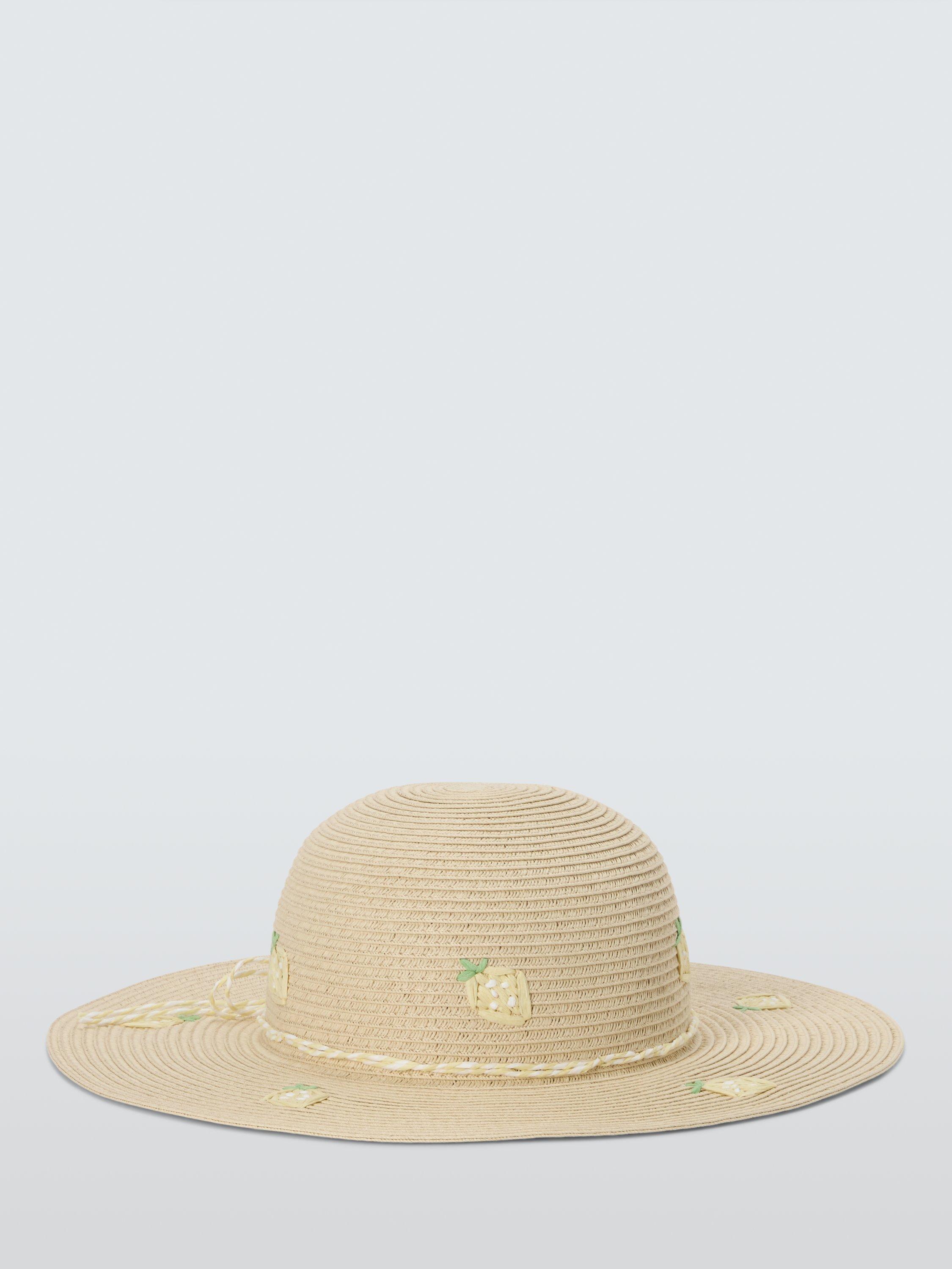 Lemon-embroidered straw hat, adorable and cosy, perfect for a delightful sunlit stroll.