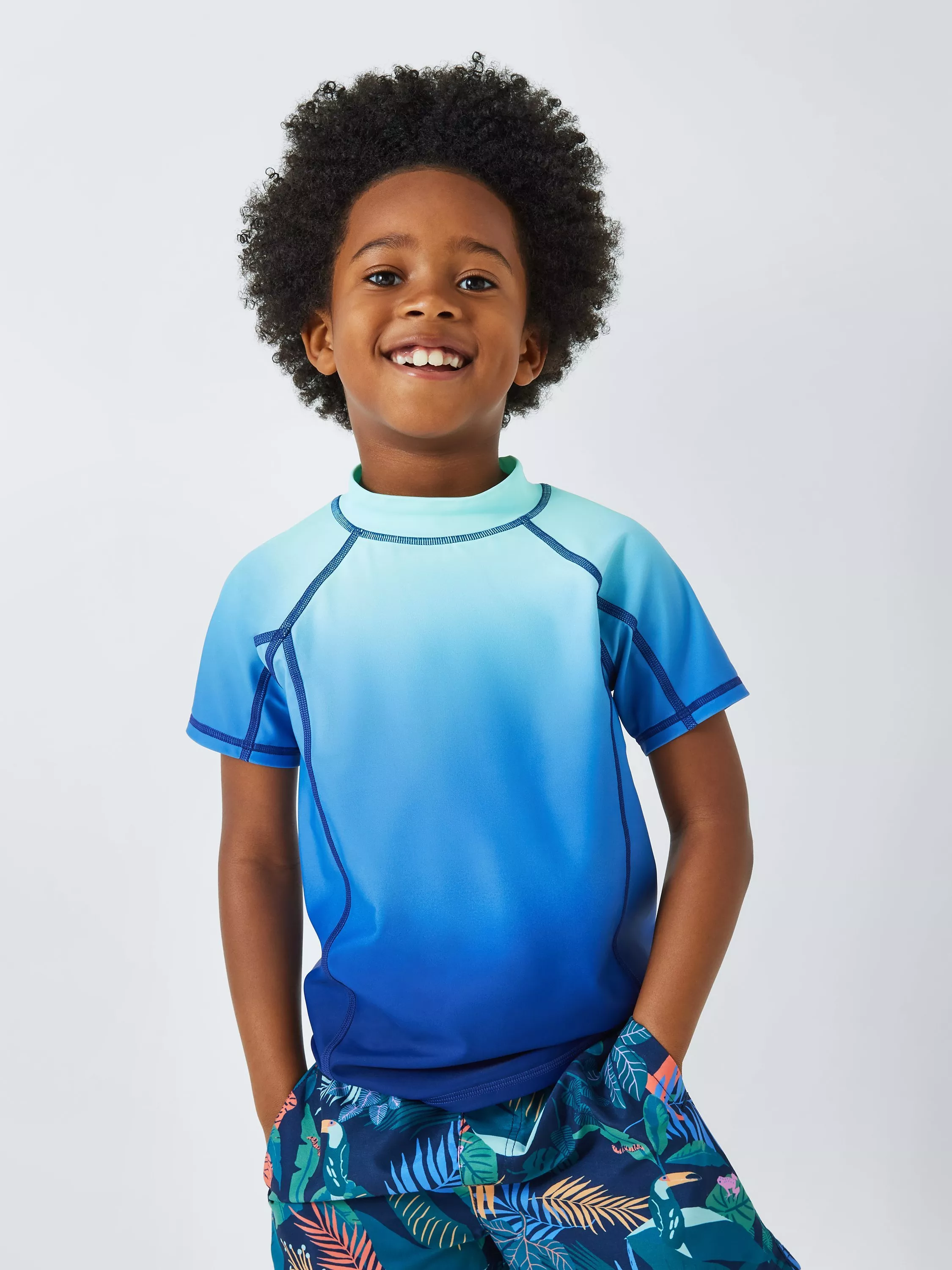 Designed with a cool ombre effect, this rash vest is made from a soft and stretchy fabric that will protect from the sun's harmful rays. The rash vest features a high neckline that will protect the sensitive neck area and is finished with short raglan sleeves.