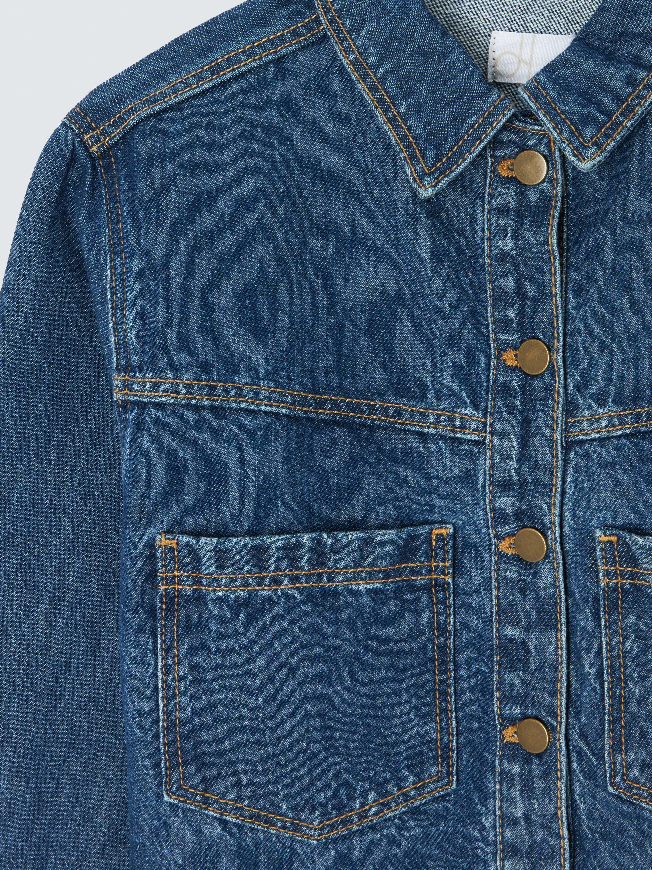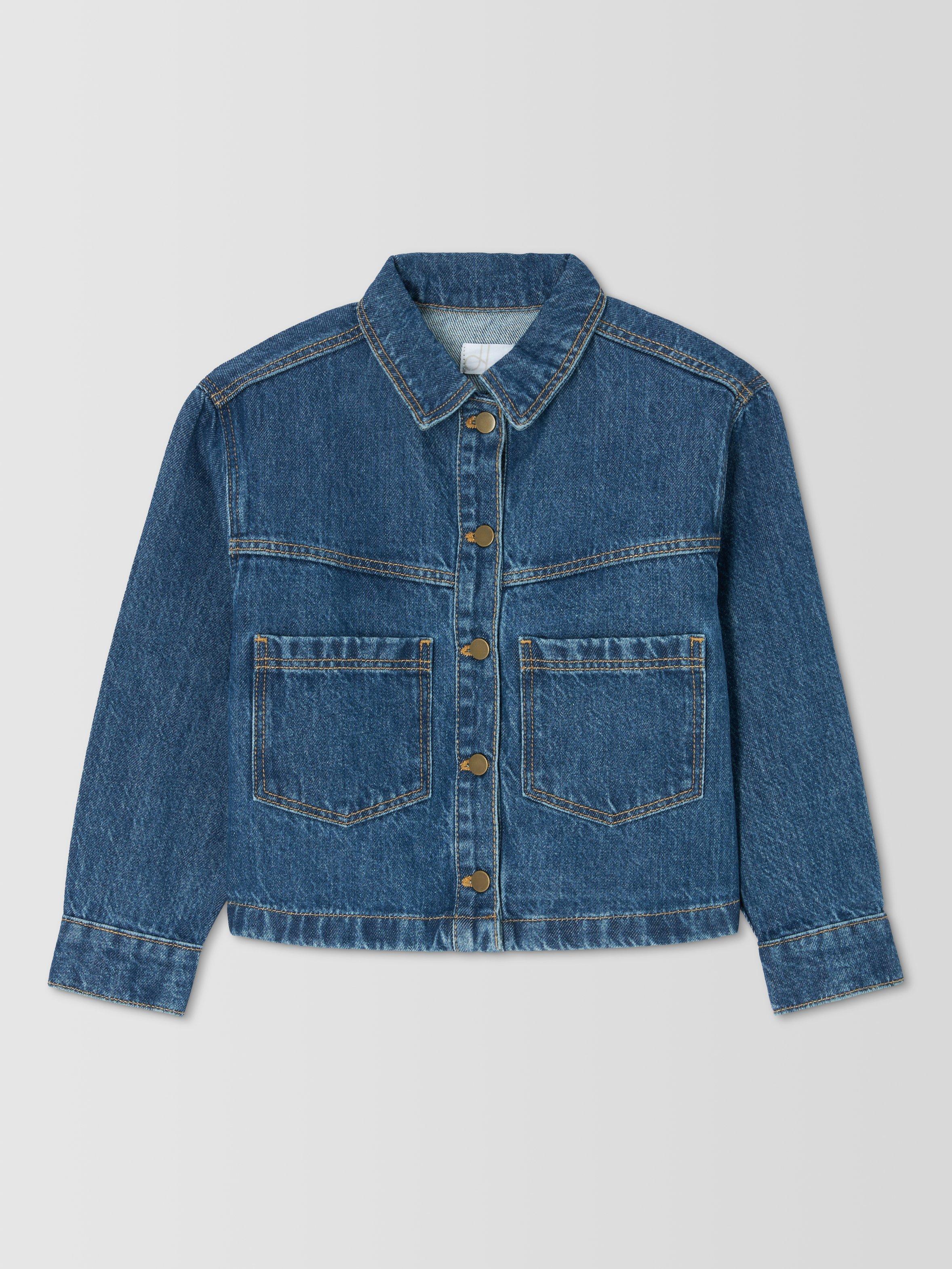In pure cotton denim with patch pocket detailing, this jacket is a layering staple for the spring/summer.