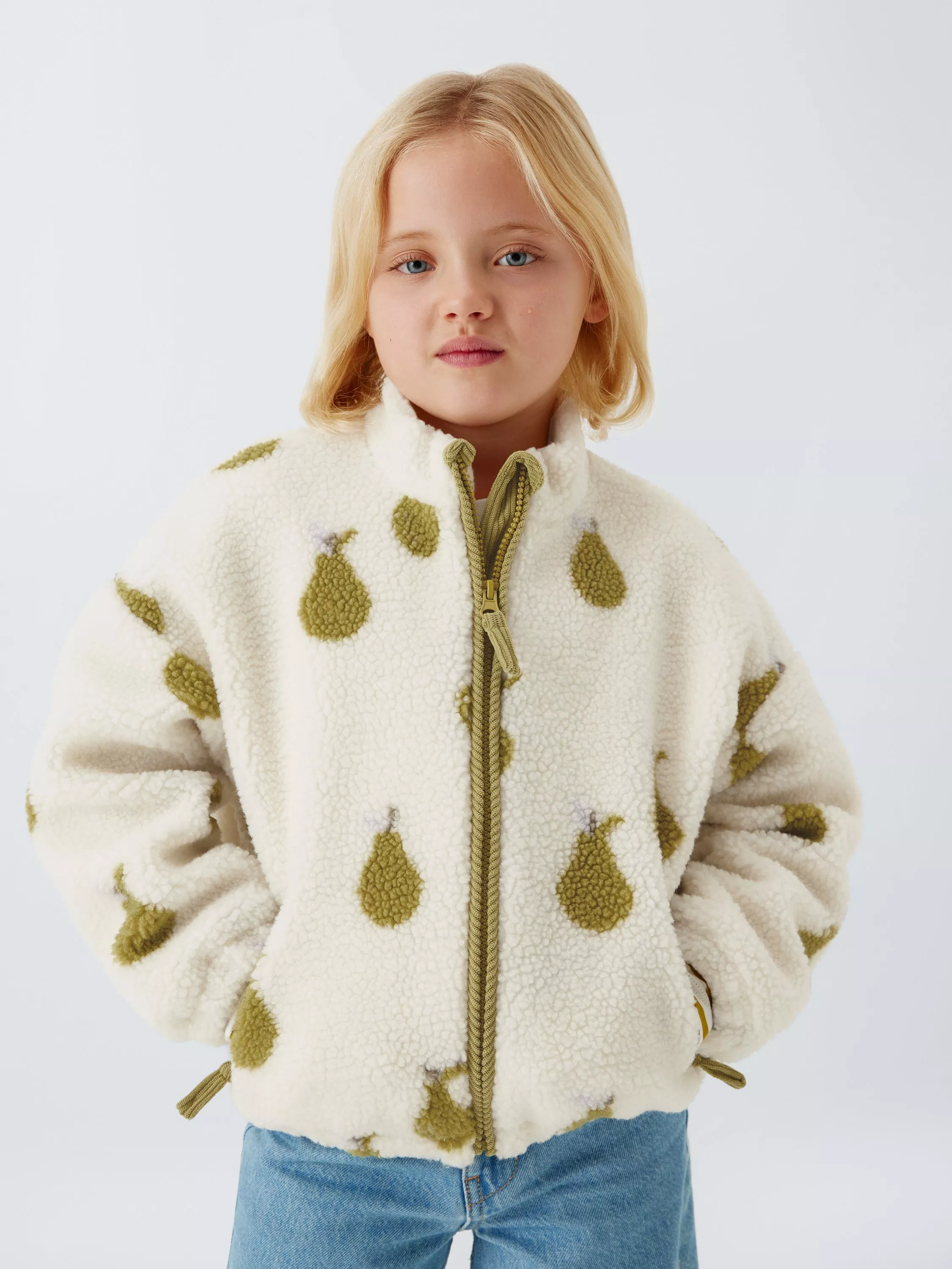 With an all-over pear print, this jacket is made in super cosy fleece. Corduroy piping adds a vintage feel, and the fleece is lined in soft cotton jersey.