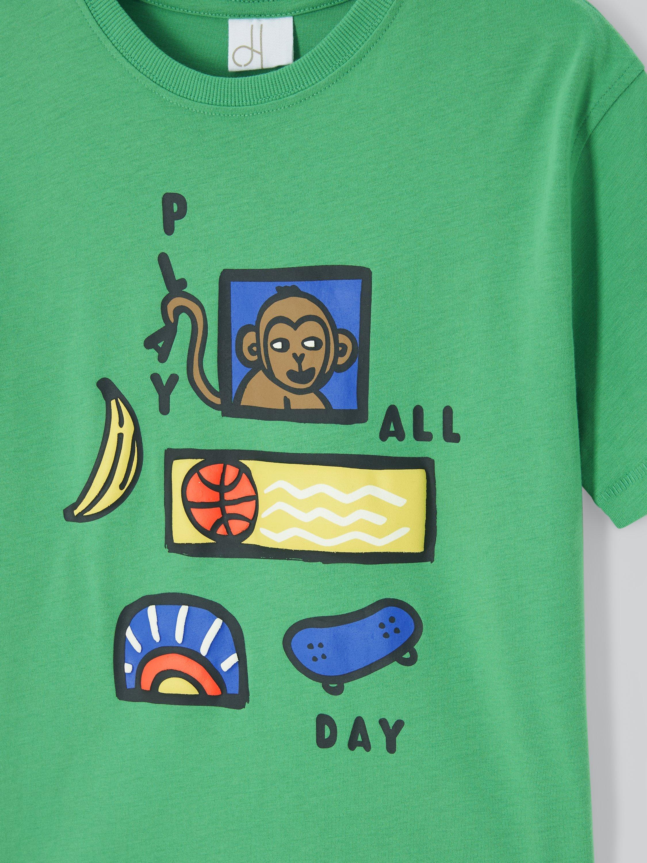 A pure cotton t-shirt with a bold and colourful graphic design.