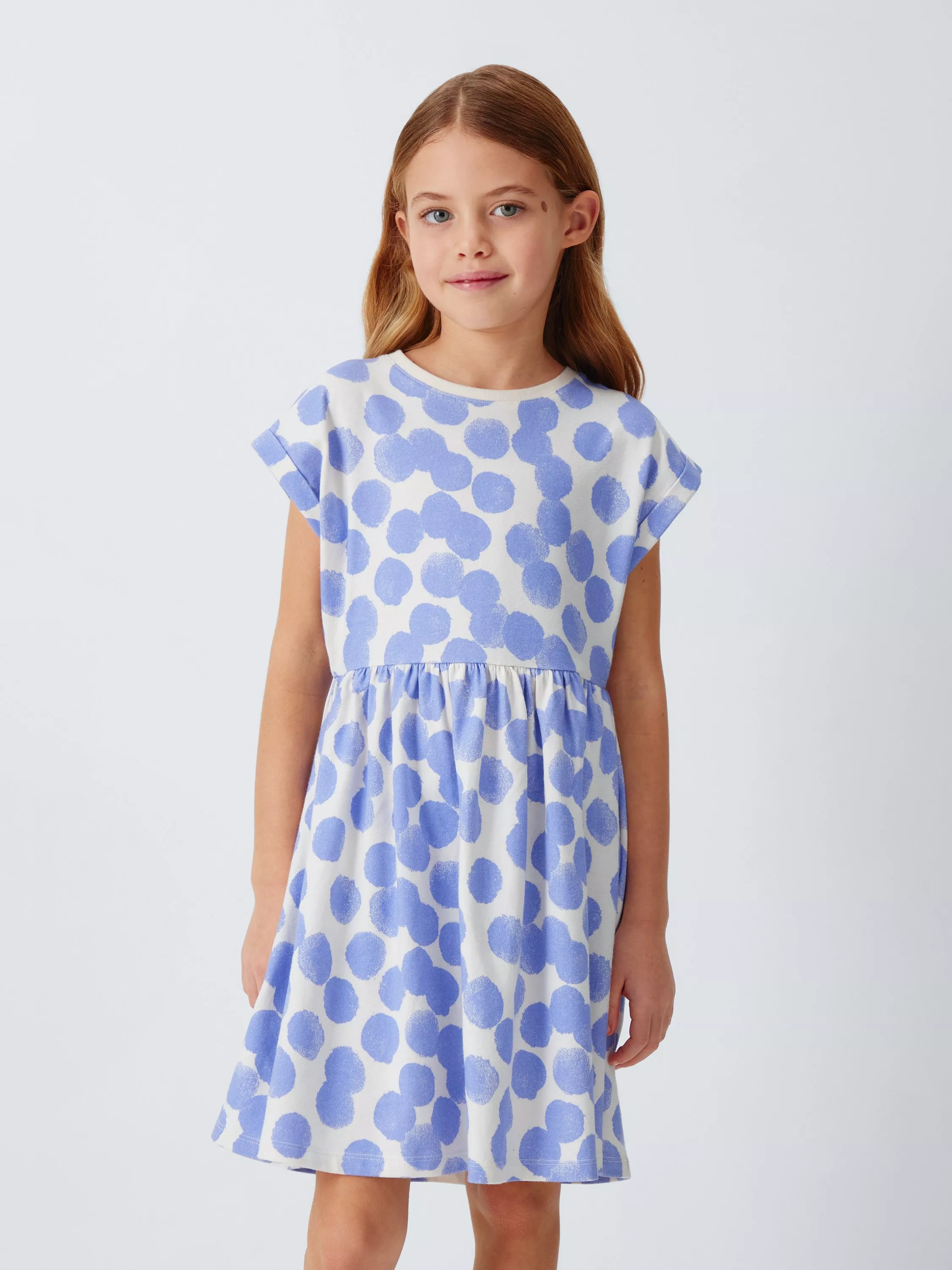 A cotton-jersey dress with a hint of stretch, with an abstract polka dot print throughout.