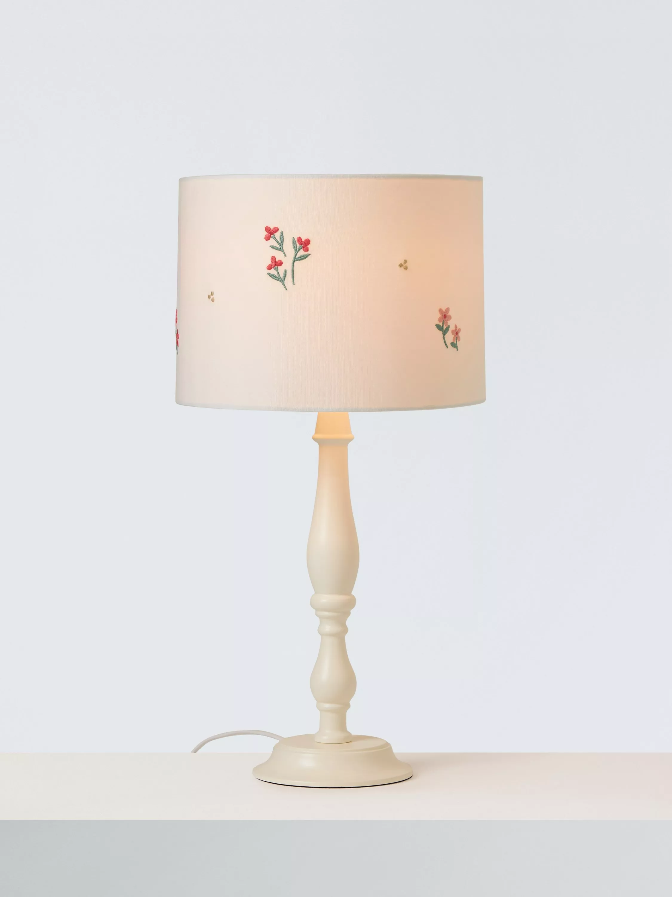 Beautifully embroidered with petite flowers across the shade, this lampshade offers a soft glow of light that is the perfect finishing touch to any child's room.